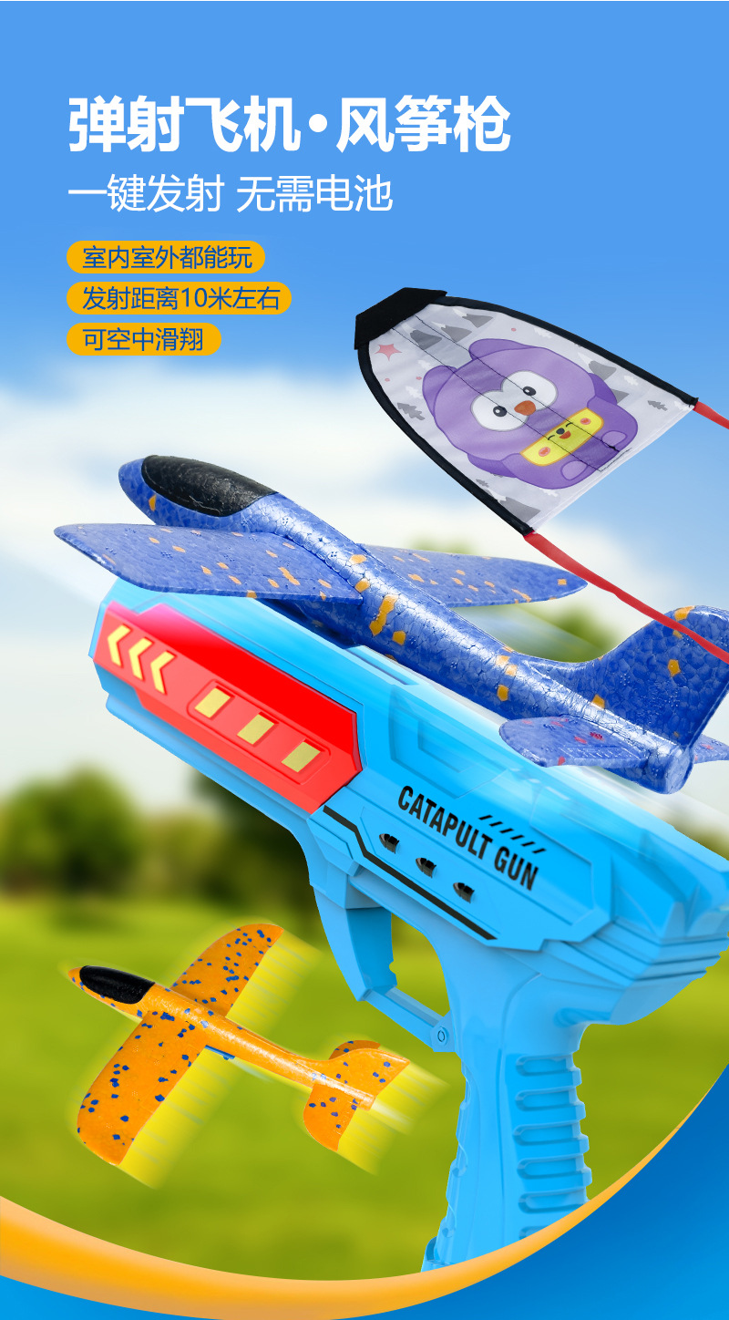 【一键发射!无需电池】儿童弹射风筝玩具弹射滑翔飞机弹力发射玩具户外地摊,室内室外都能玩。ry