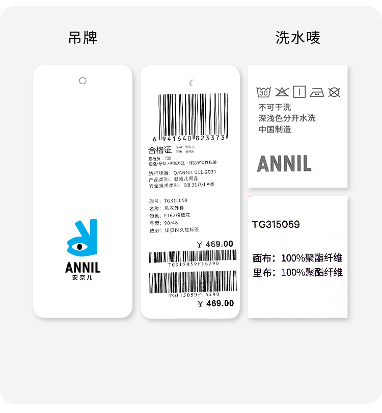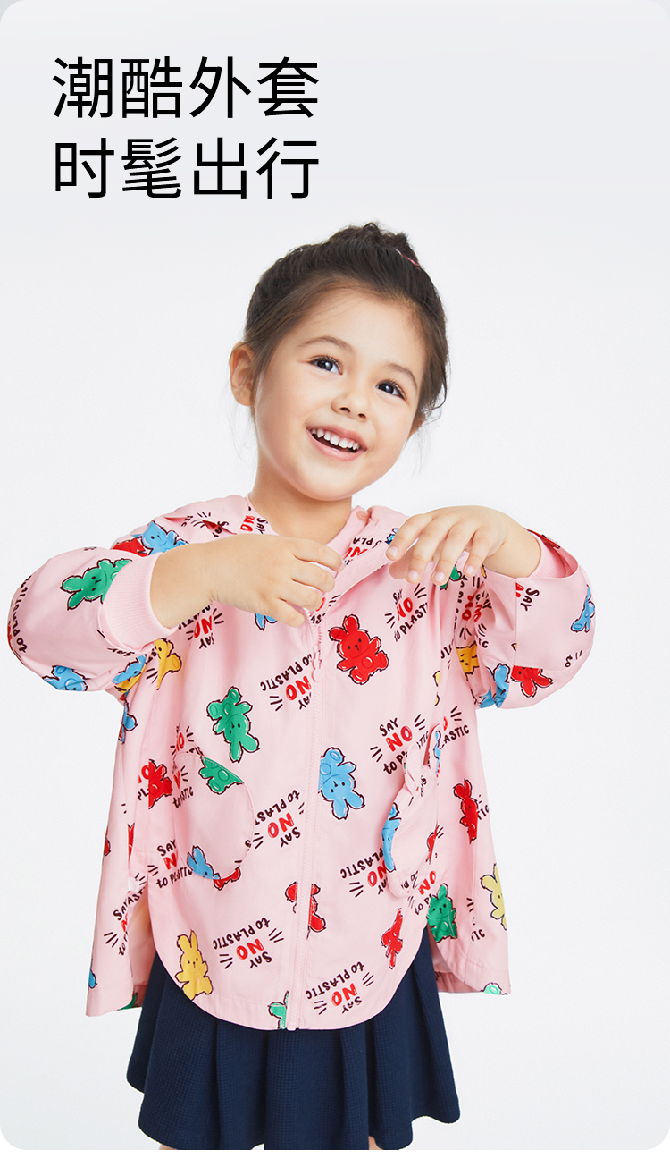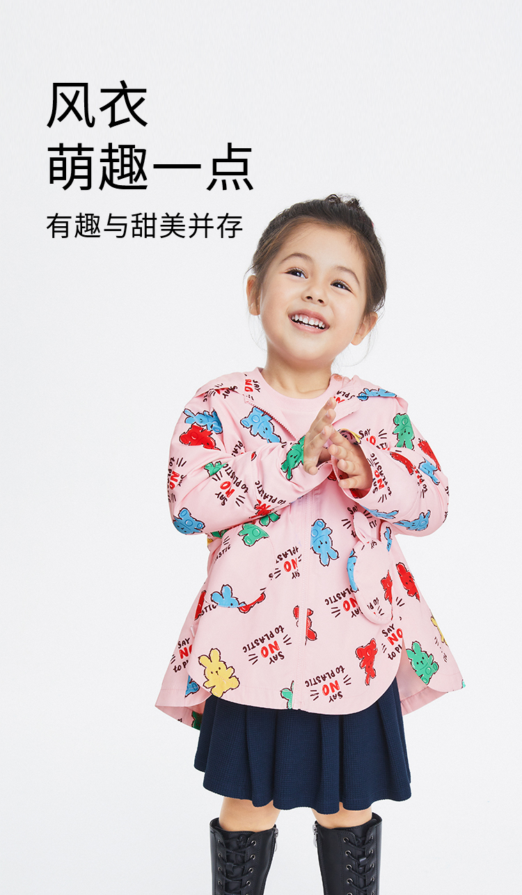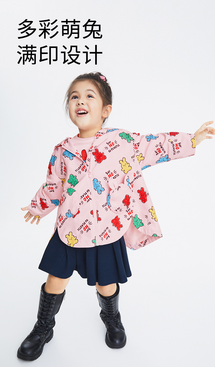 儿童外套女童防风秋新款宝宝可爱洋气连帽童装衣服安奈儿童装TG315059