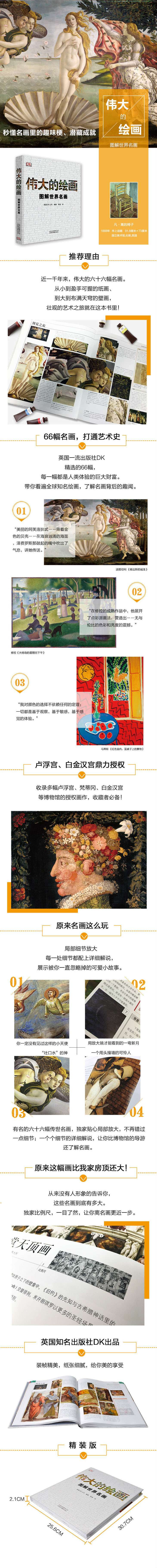 《伟大的绘画:图解世界名画》中每一幅传世经典作品都经过深入的分析,具体包括:每一幅作品的尺寸规格、创作背景、作者介绍、技术分析、局部放大细节分析等。专门摘出细节以揭示在那些符号与特征,揭示其背后隐藏的意义。讲解技巧的板块与图解可以帮助阐明构图以及所运用的绘画技巧,艺术家小传和历史社会背景,则道出了作品在艺术史甚至大历史中的源流,本书行文流畅,图文并茂,深入浅出,适合不同年龄段艺术爱好者赏鉴。