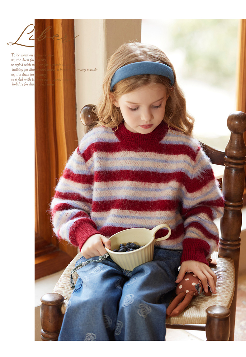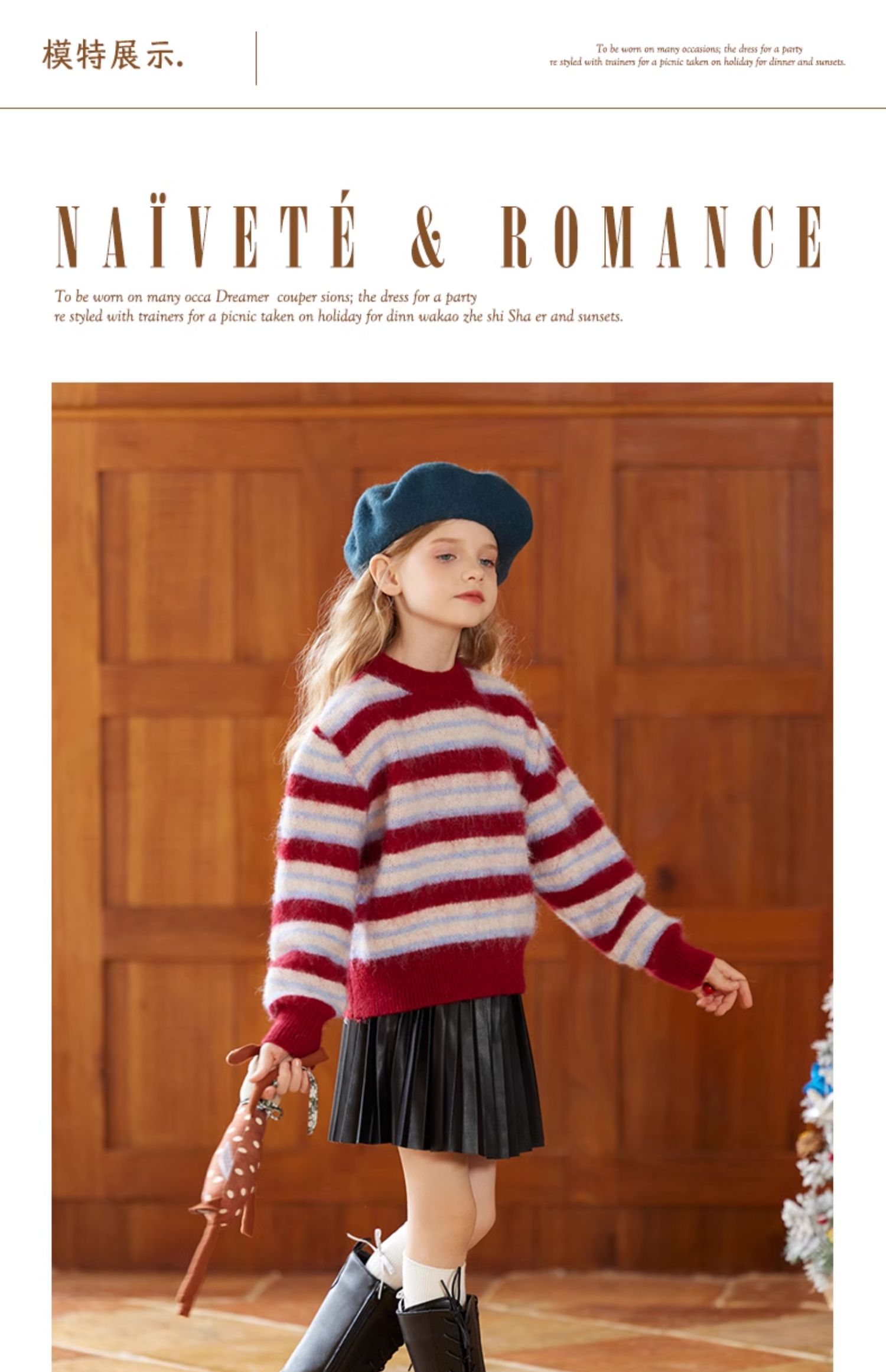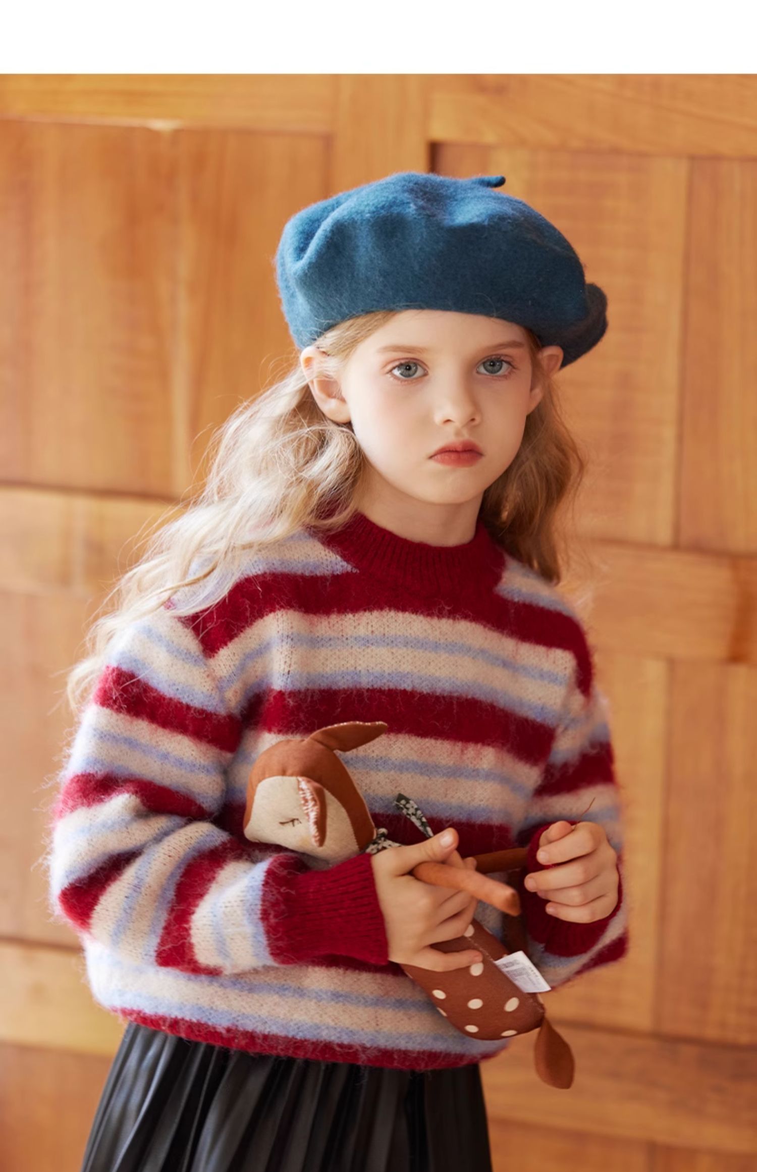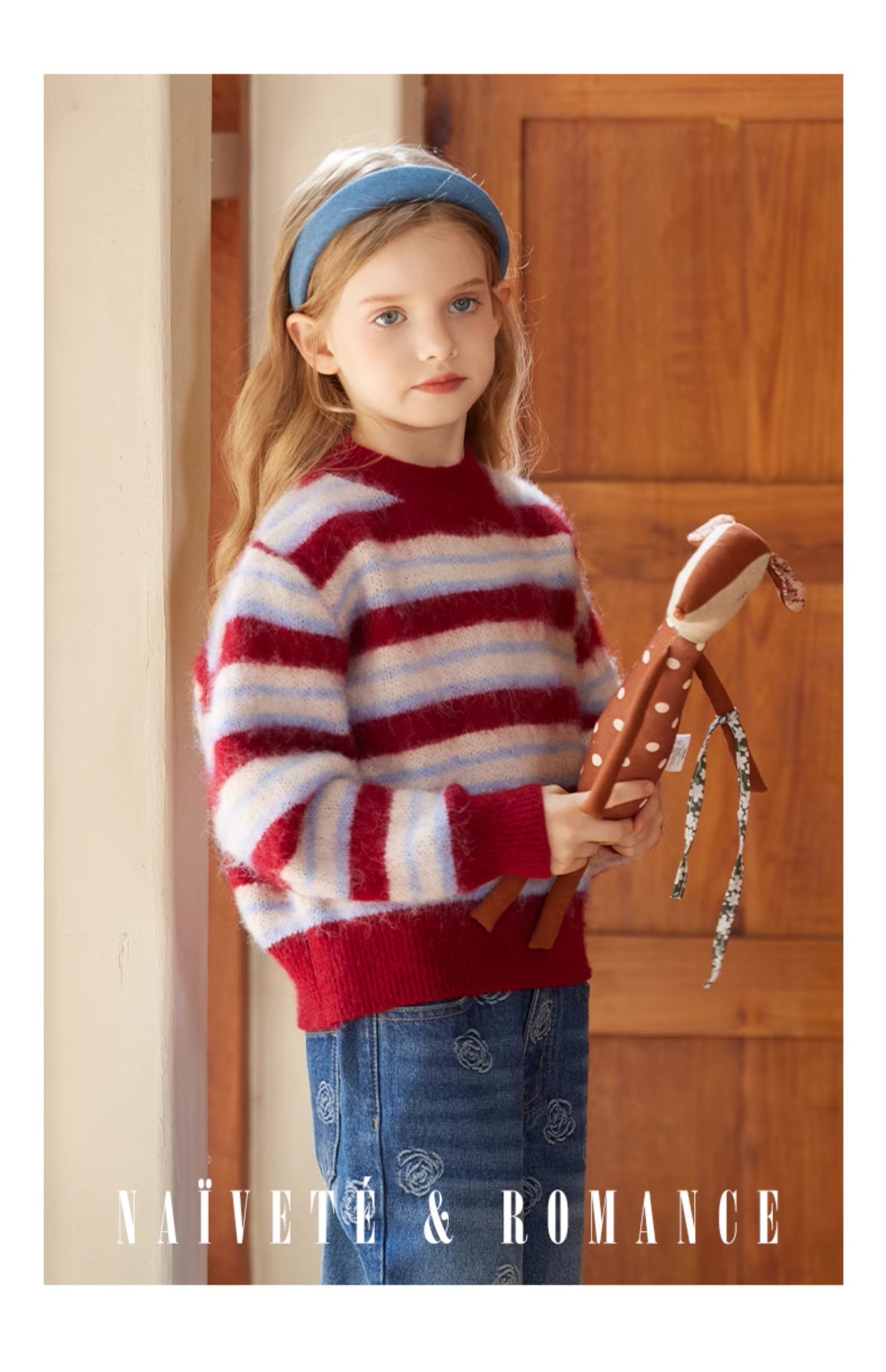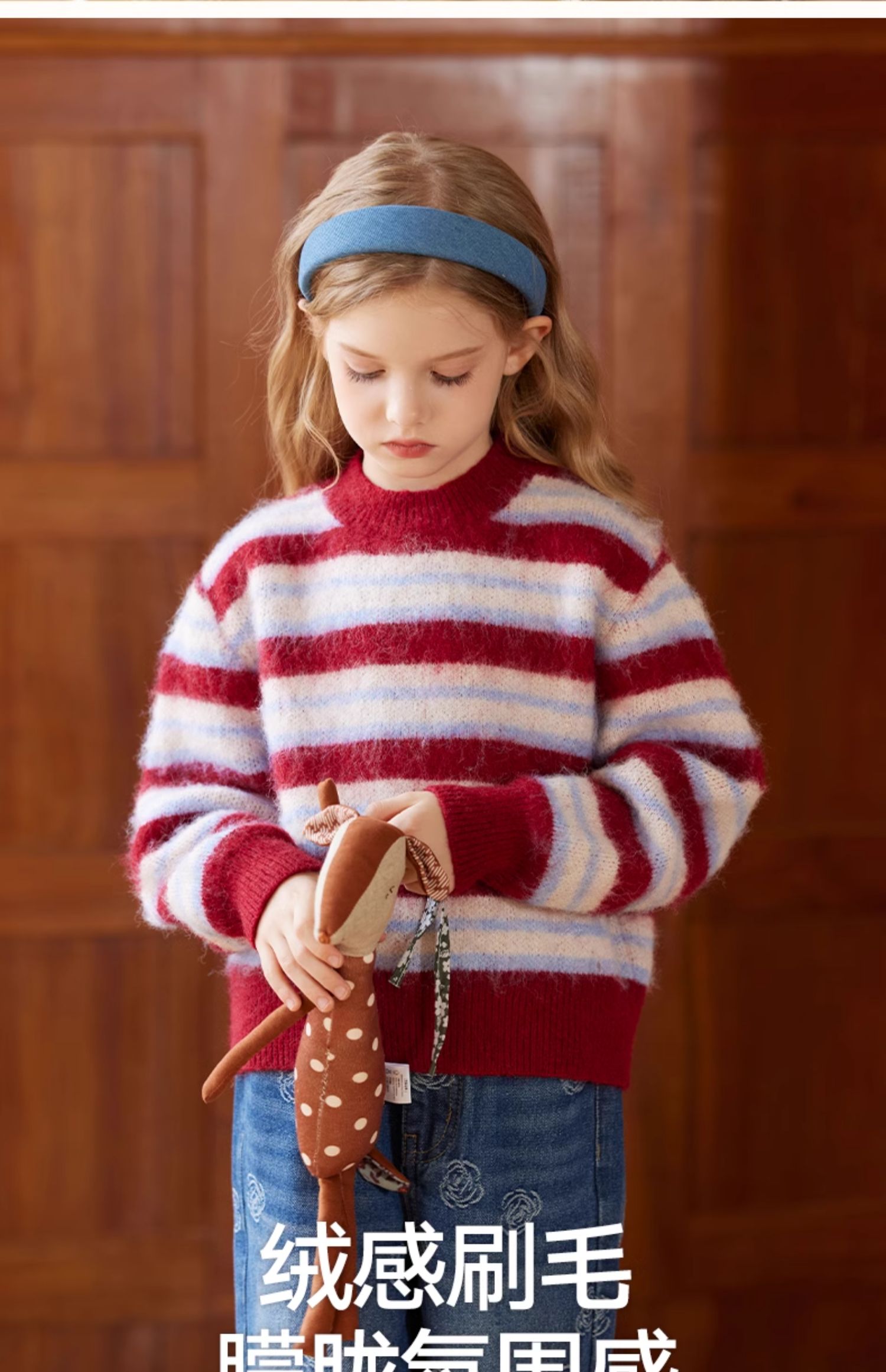LittleNaive女童毛衣冬季新款宽松条纹慵懒上衣儿童撞色针织衫