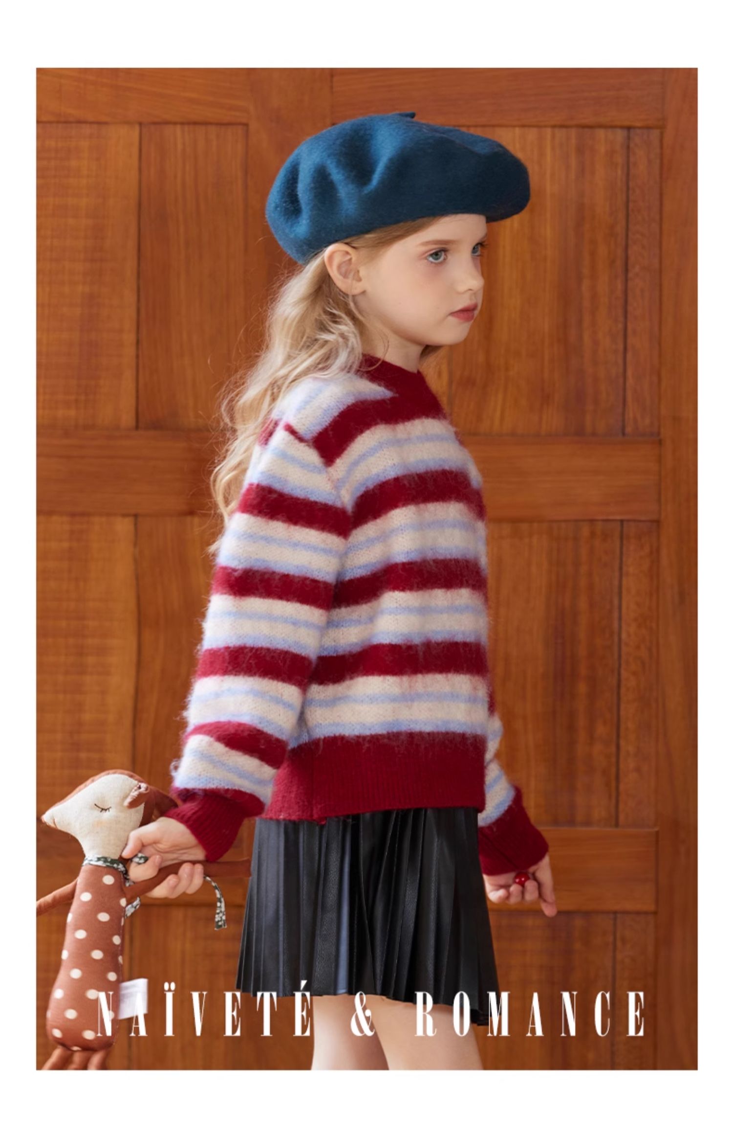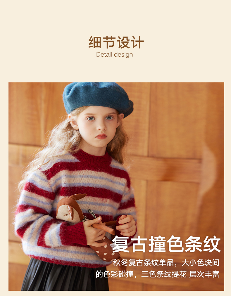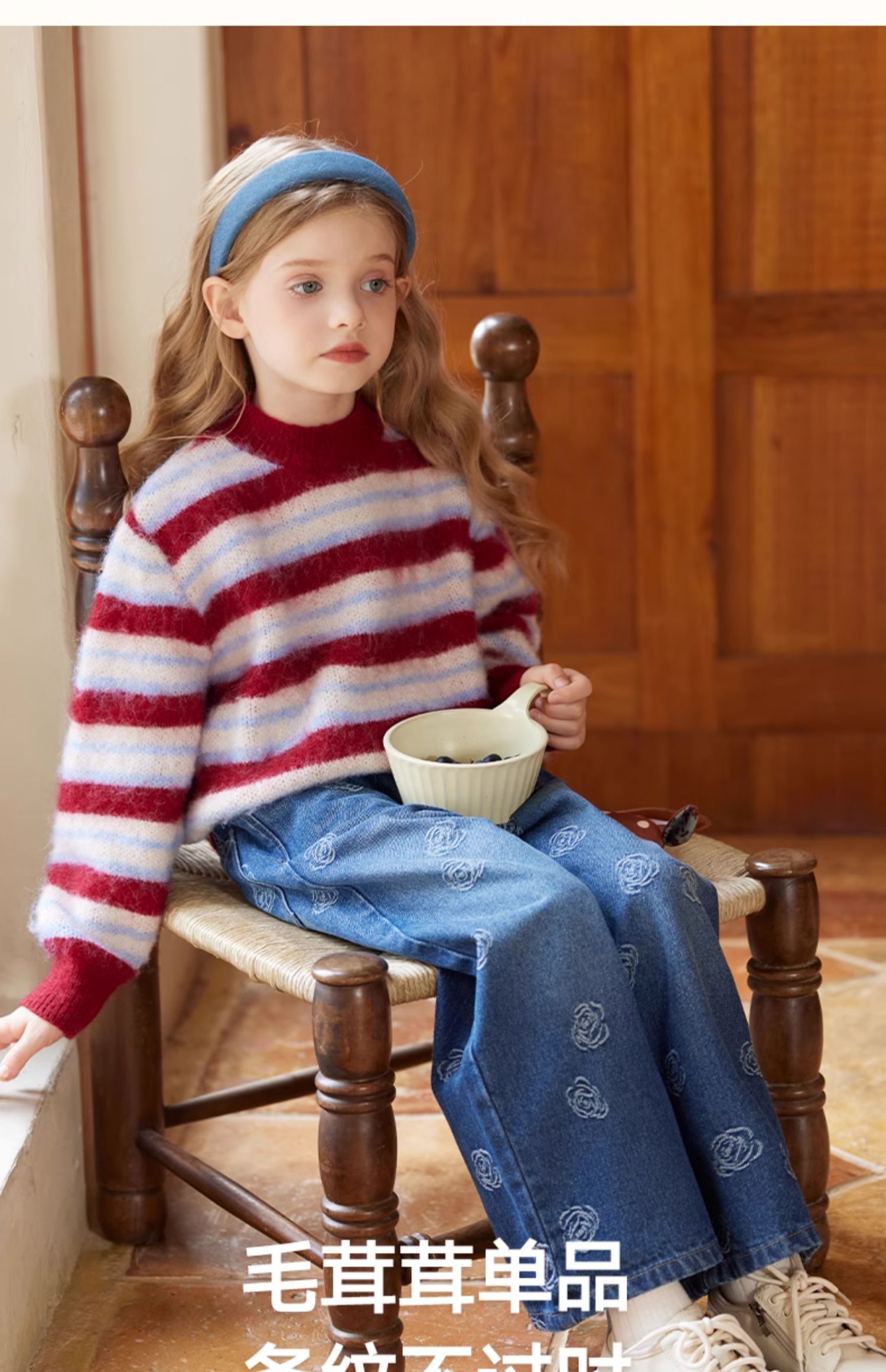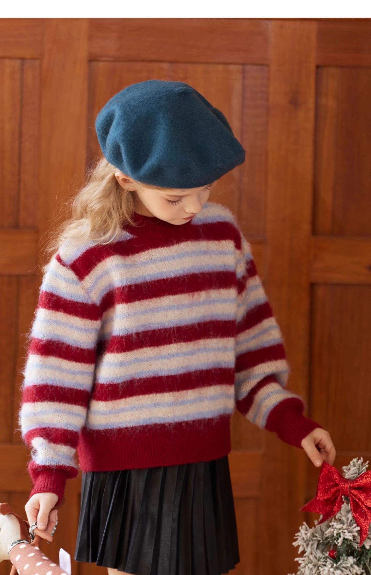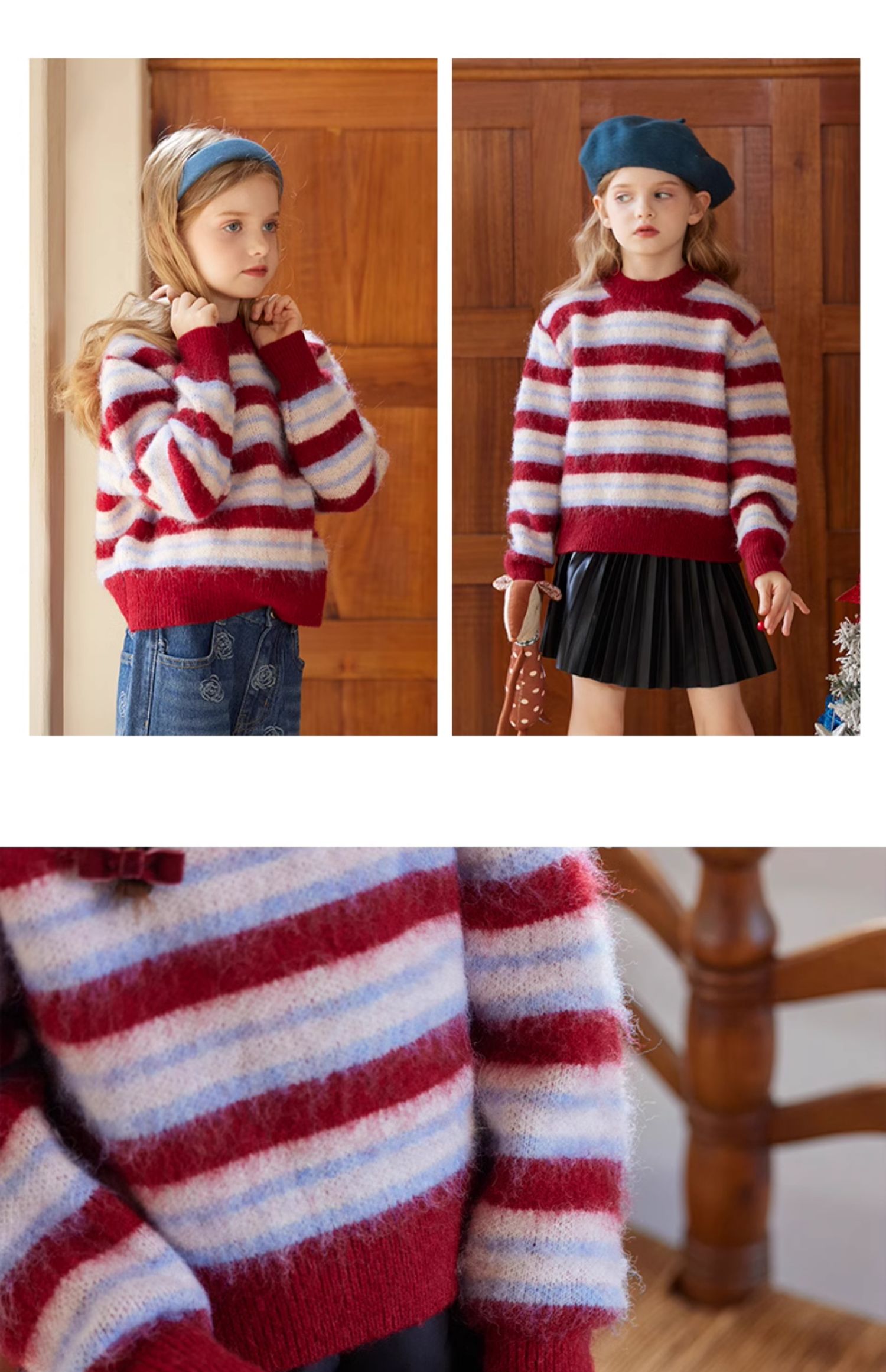 LittleNaive女童毛衣冬季新款宽松条纹慵懒上衣儿童撞色针织衫