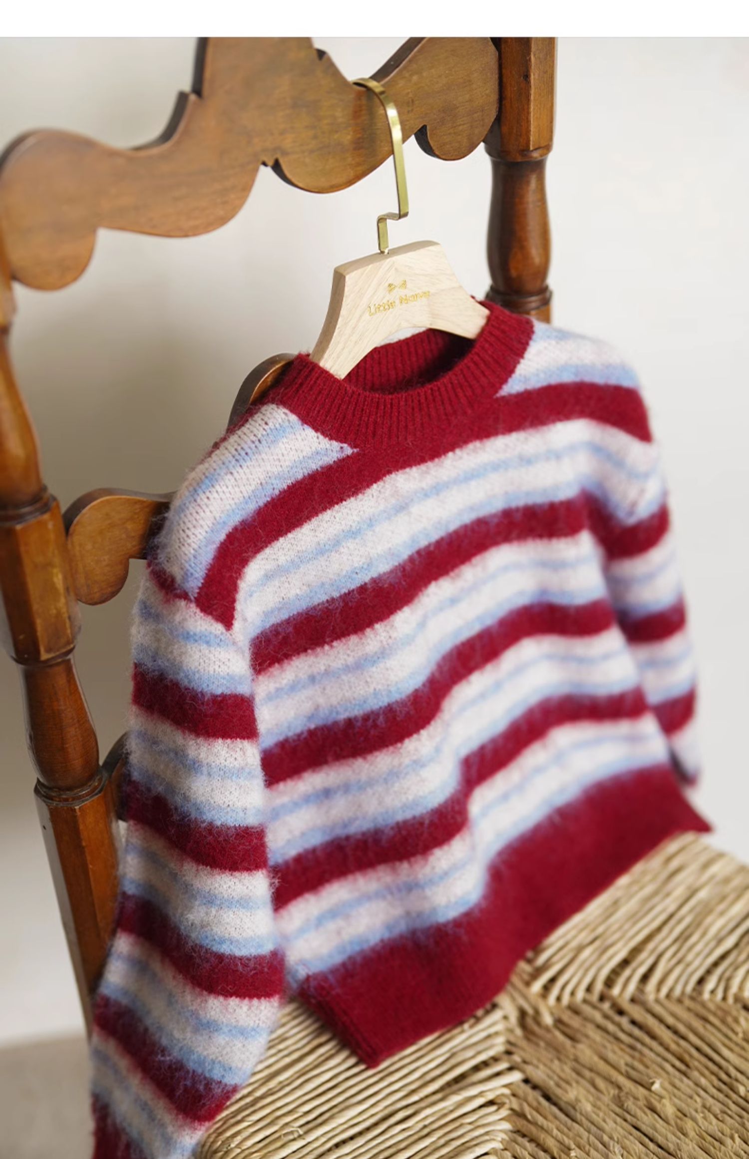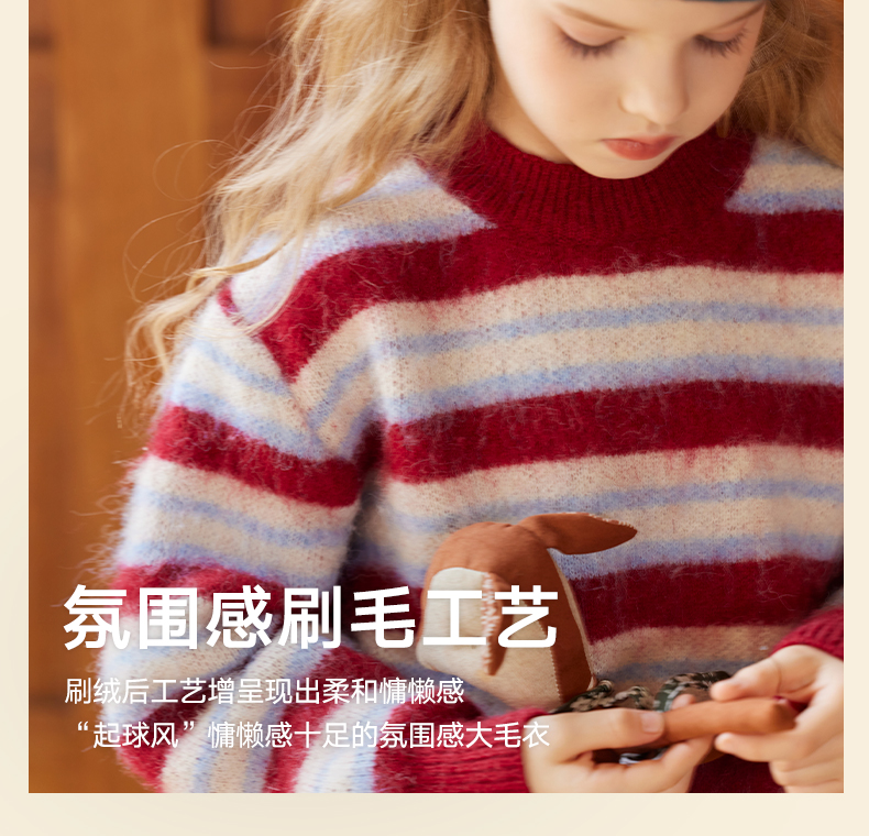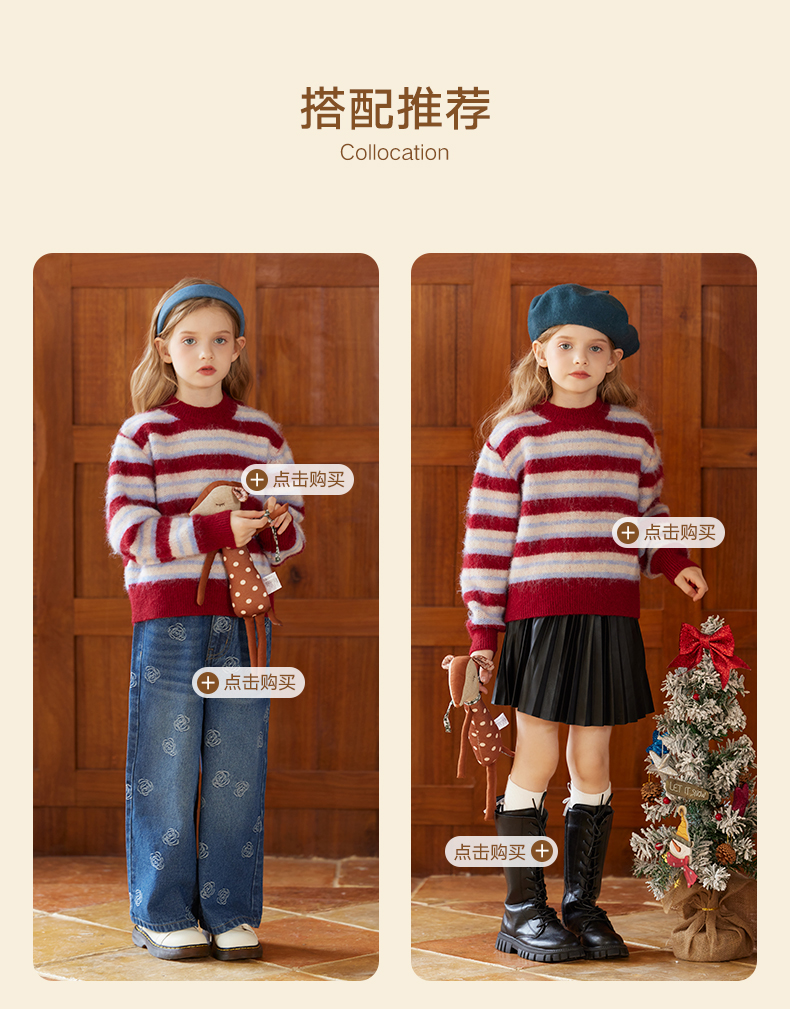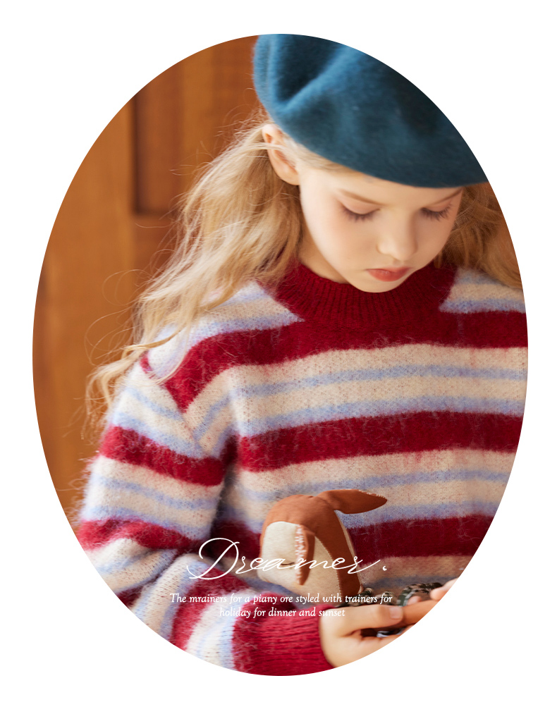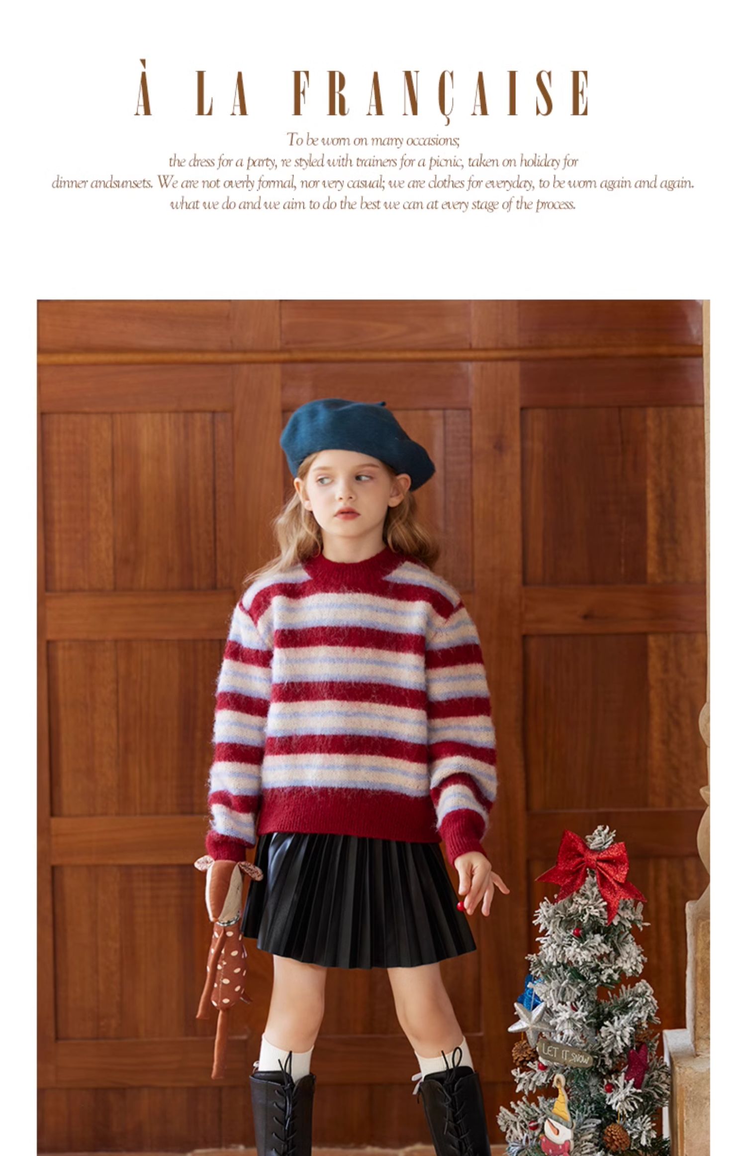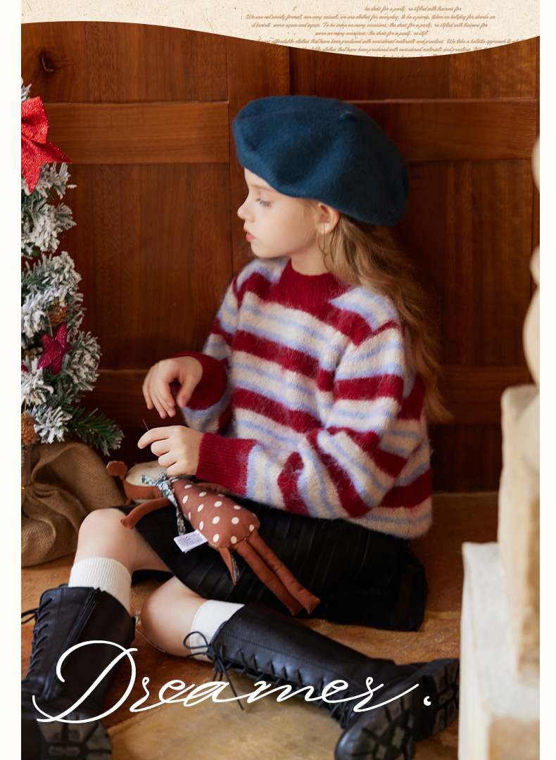 LittleNaive女童毛衣冬季新款宽松条纹慵懒上衣儿童撞色针织衫