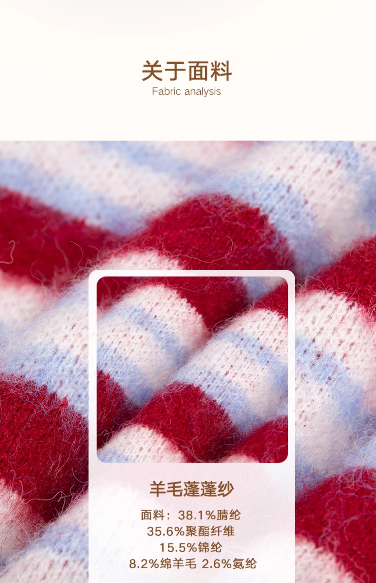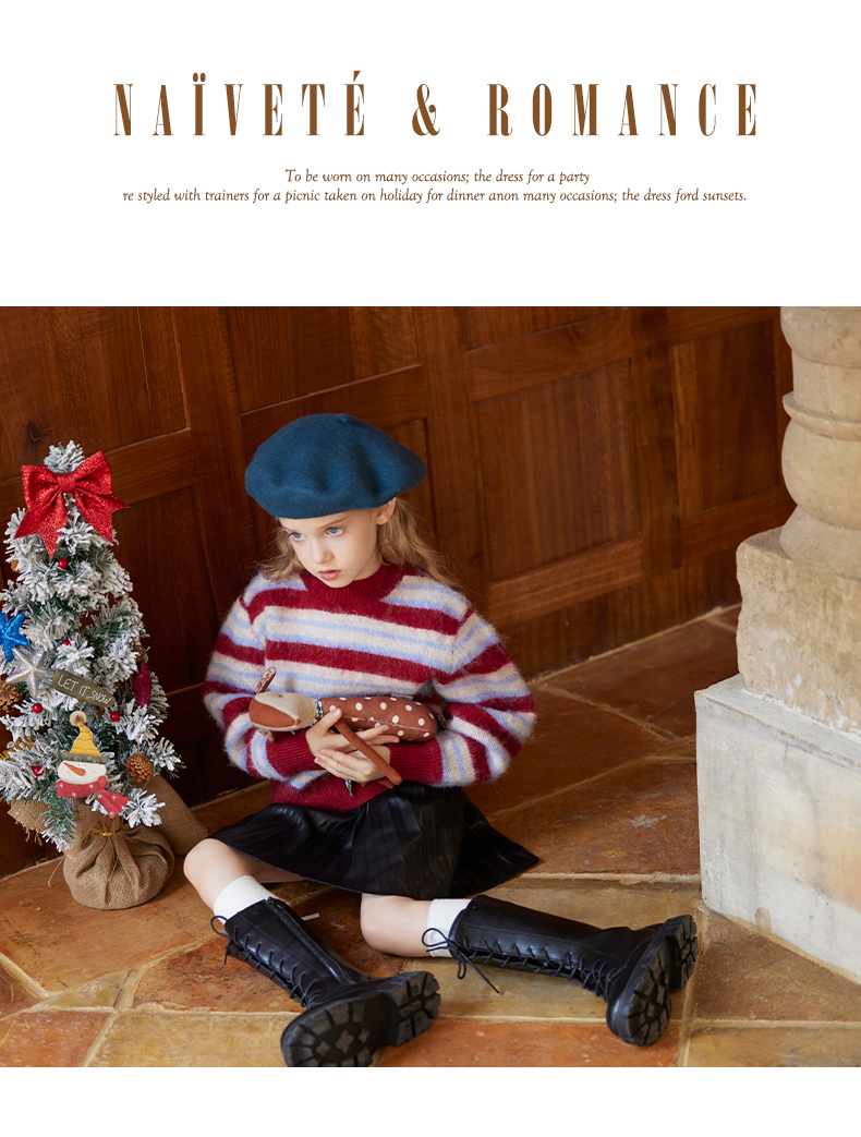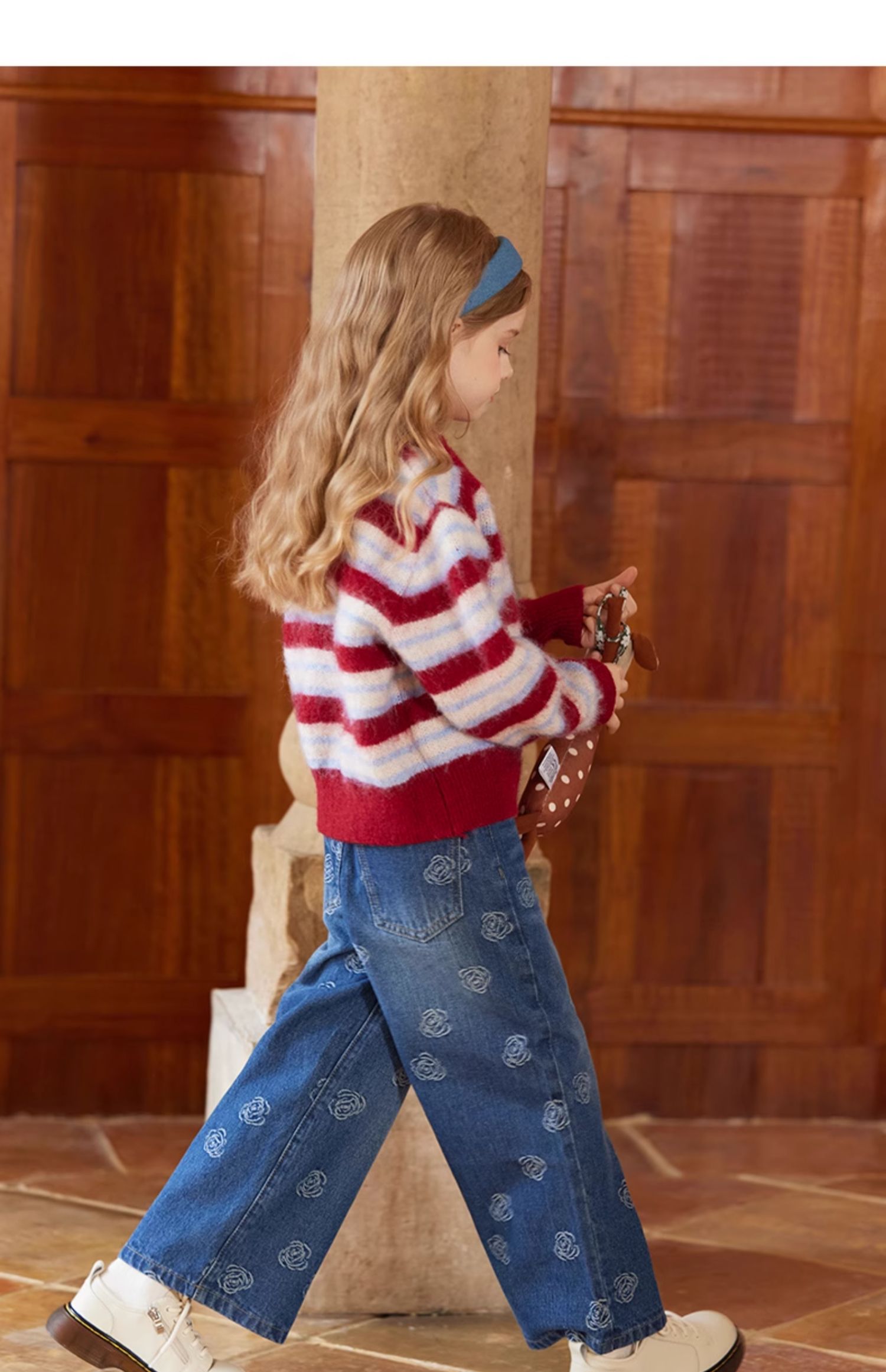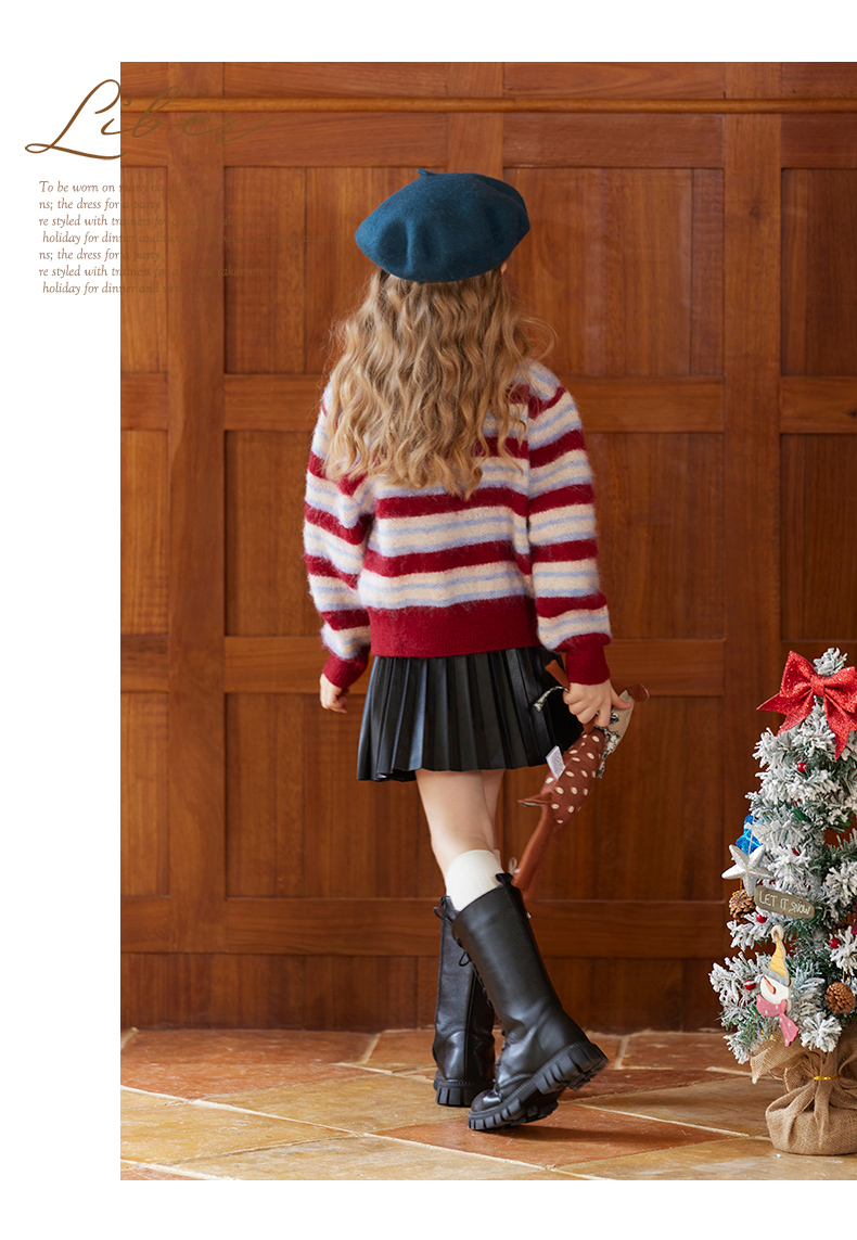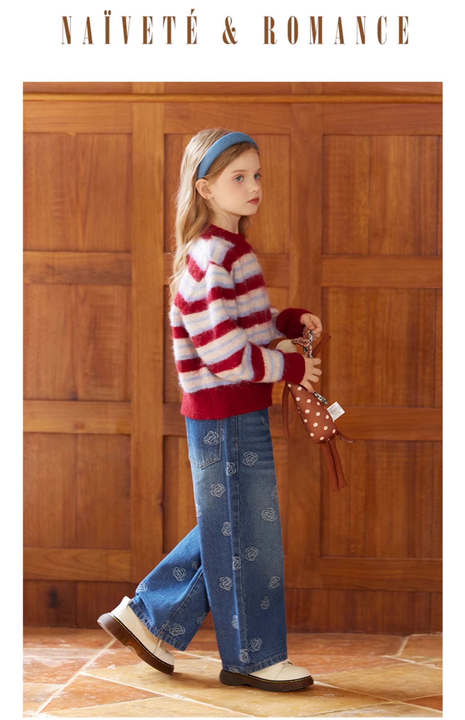 LittleNaive女童毛衣冬季新款宽松条纹慵懒上衣儿童撞色针织衫