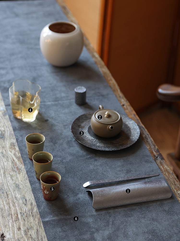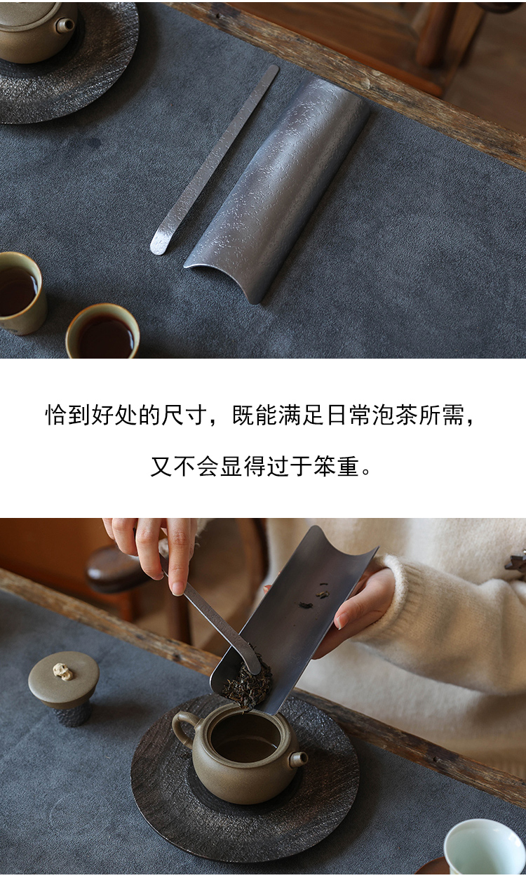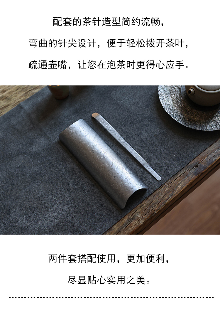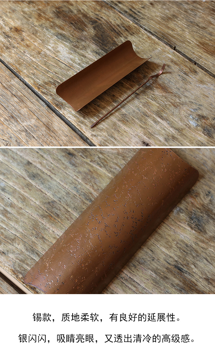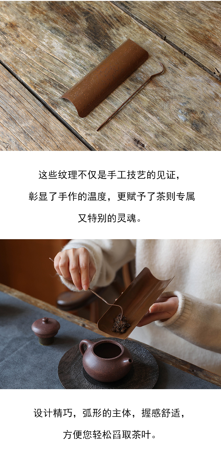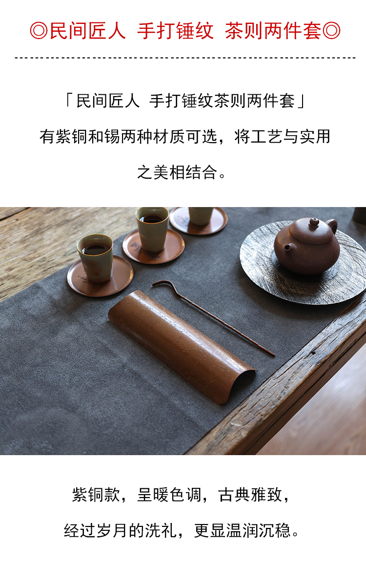 茶香记 民间匠人手打锤纹茶则两件套紫铜锡茶道配件金属典雅实用