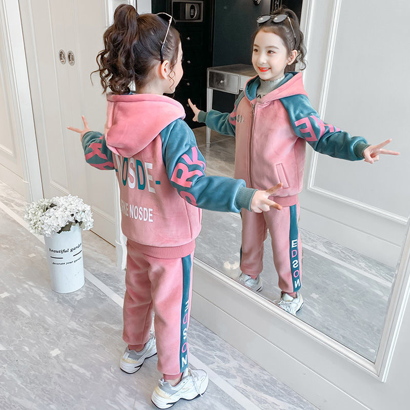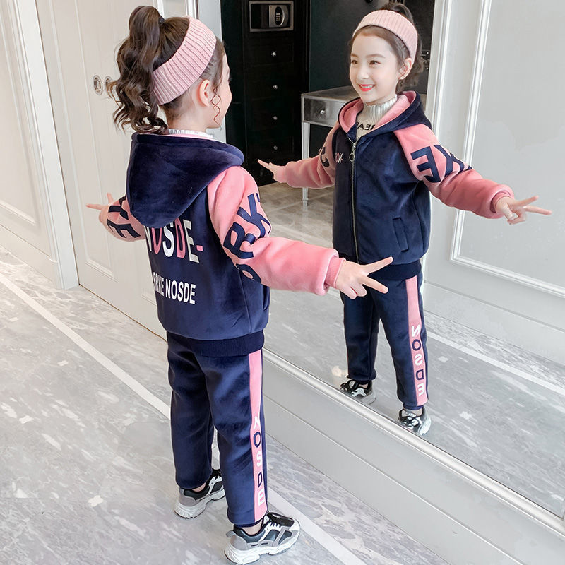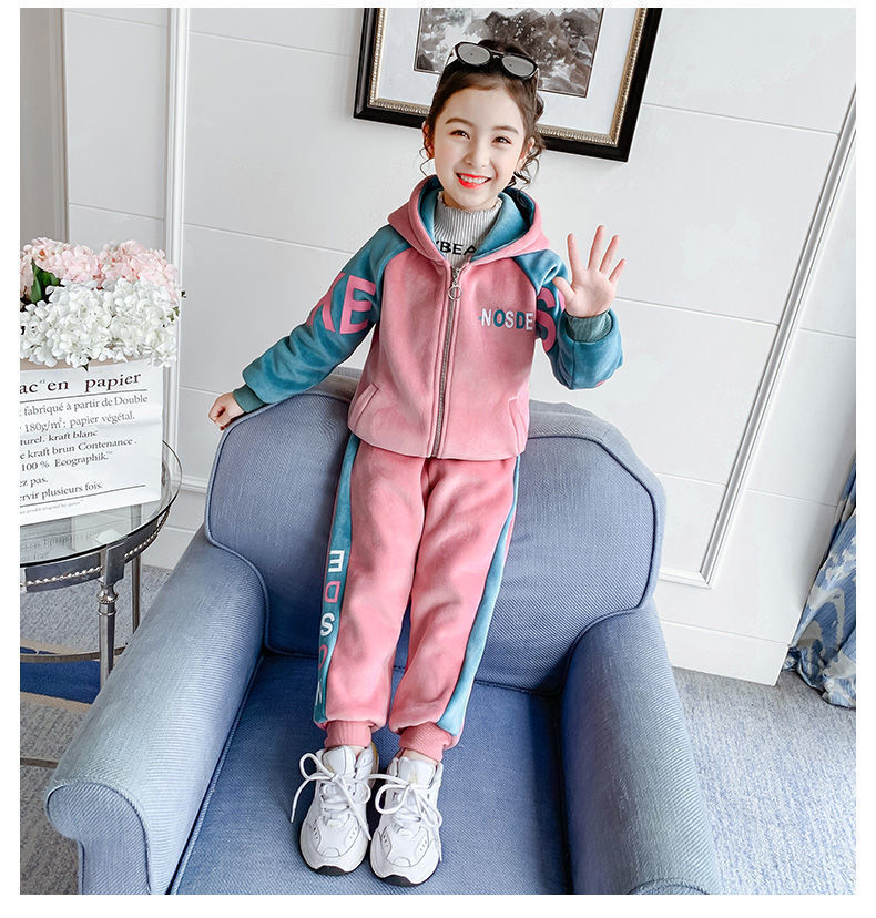 YNBY-两件套金丝绒套装儿童洋气加绒加厚大童两件套