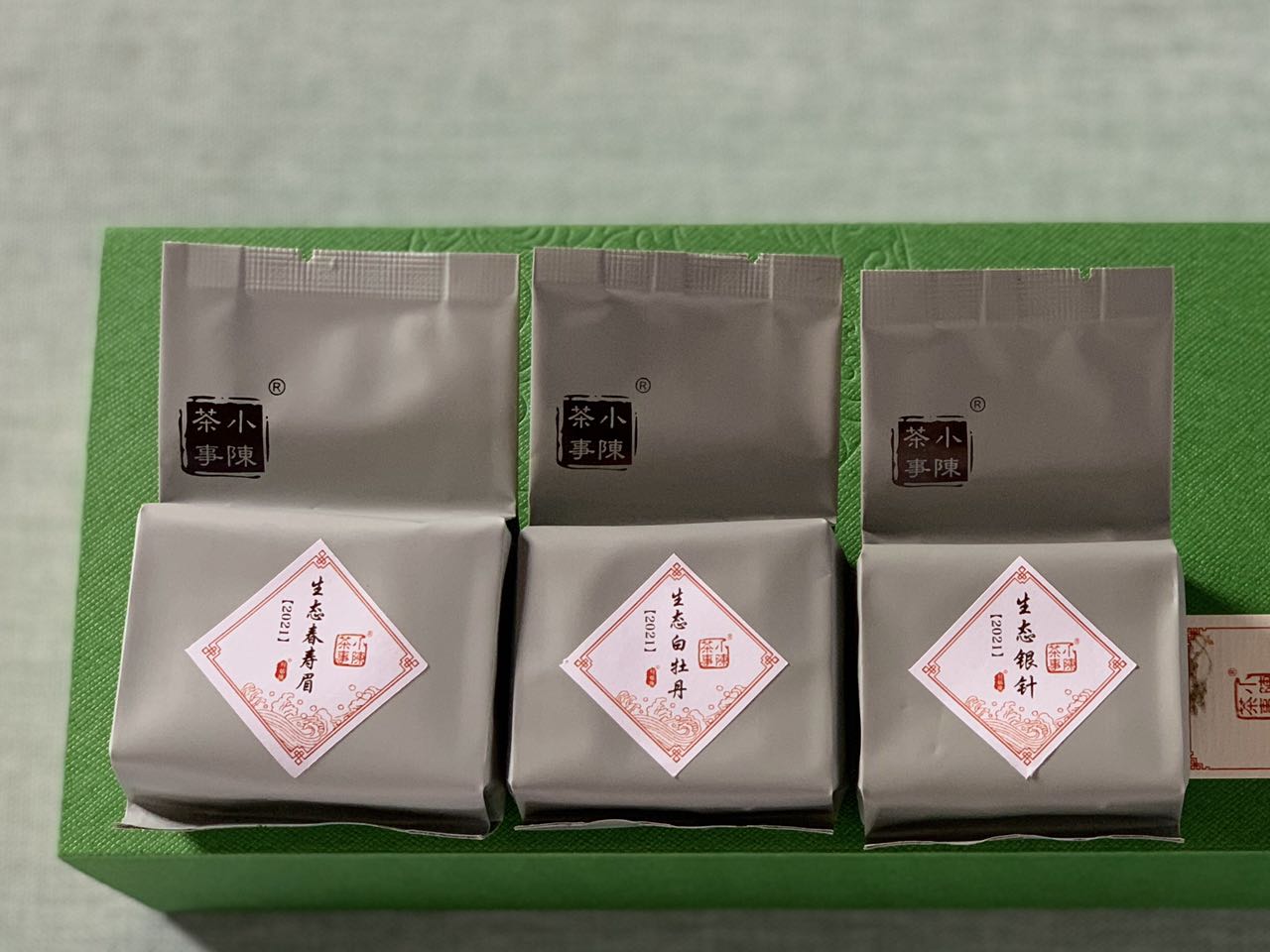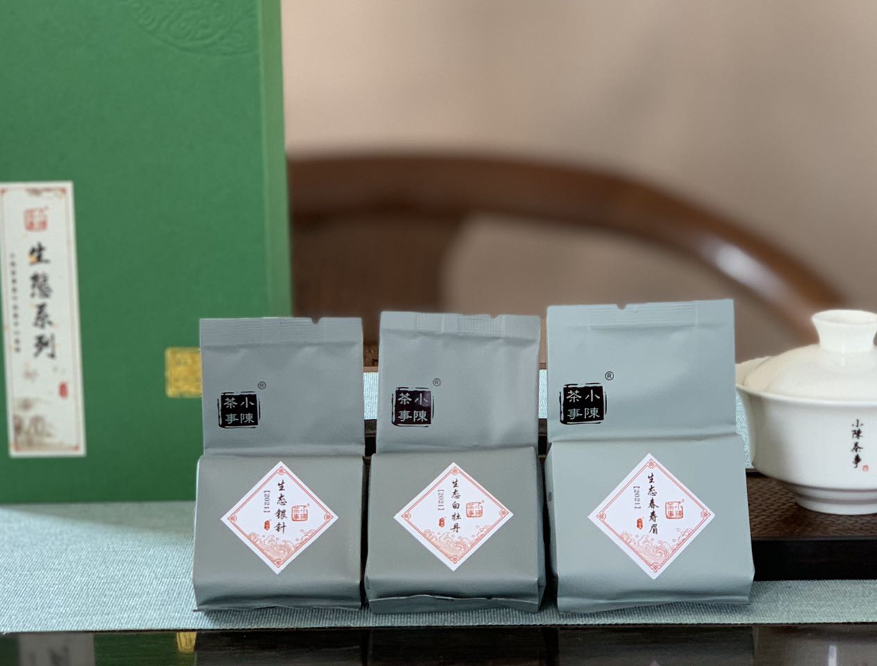 熟悉小陈茶事的茶友们都知道,我们的生态白茶其实就是有机白茶,在2021年的春茶季,小陈茶事的生态银针、生态白牡丹、生态春寿眉相继迎来了茶友们的好评,为了让更多茶友们感受小陈茶事生态有机白茶的魅力,村姑陈特别推出了《生态白茶三剑客》,汇总2021生态有机白毫银针、2021生态有机白牡丹、2021生态有机春寿眉,每一种各4泡,共12泡(60克)。