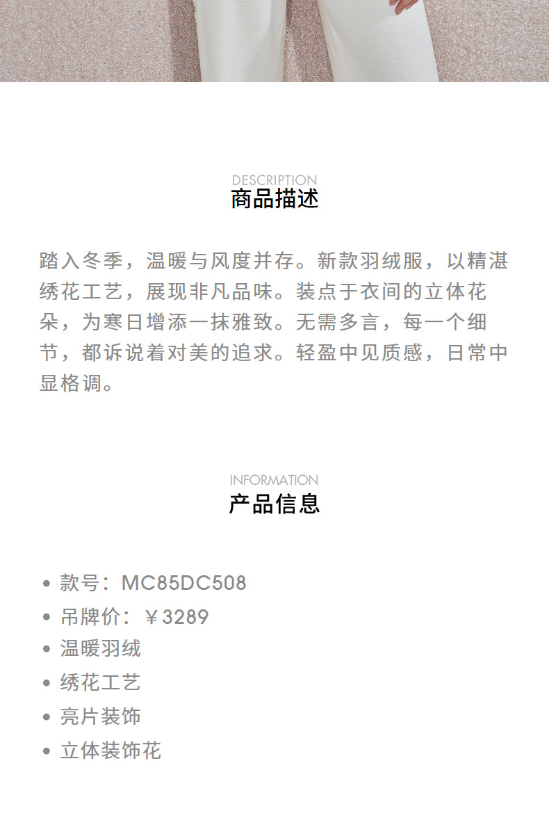 MAXRIENY【商场同款】精致日常羽绒服冬款立体花设计保暖外套(货号:MC85DC508)