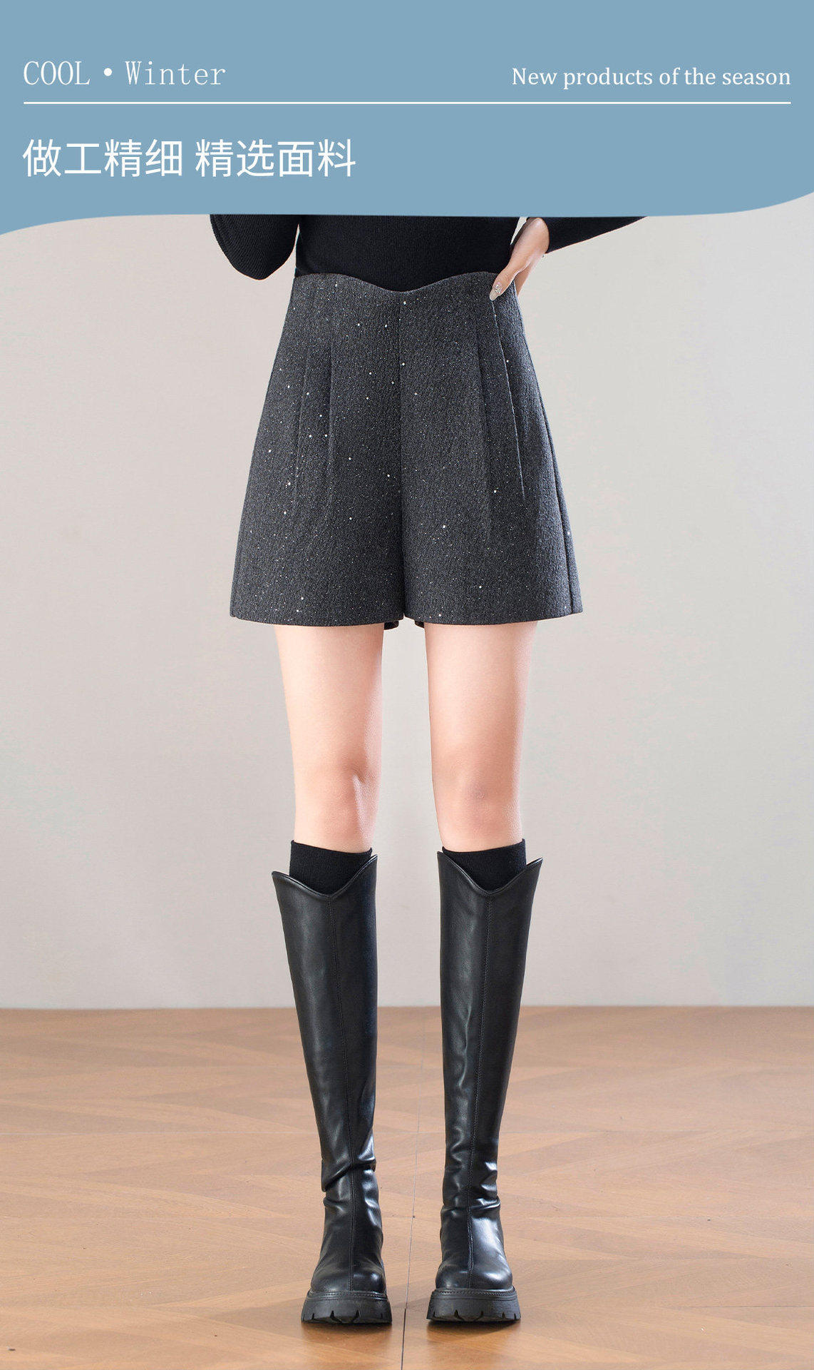 「自」全新升级【铂金会员137/天猫179/差价42】(44033)洛诗琳高腰亮片羊毛呢短裤2026新款气质显瘦A字百搭阔腿裤