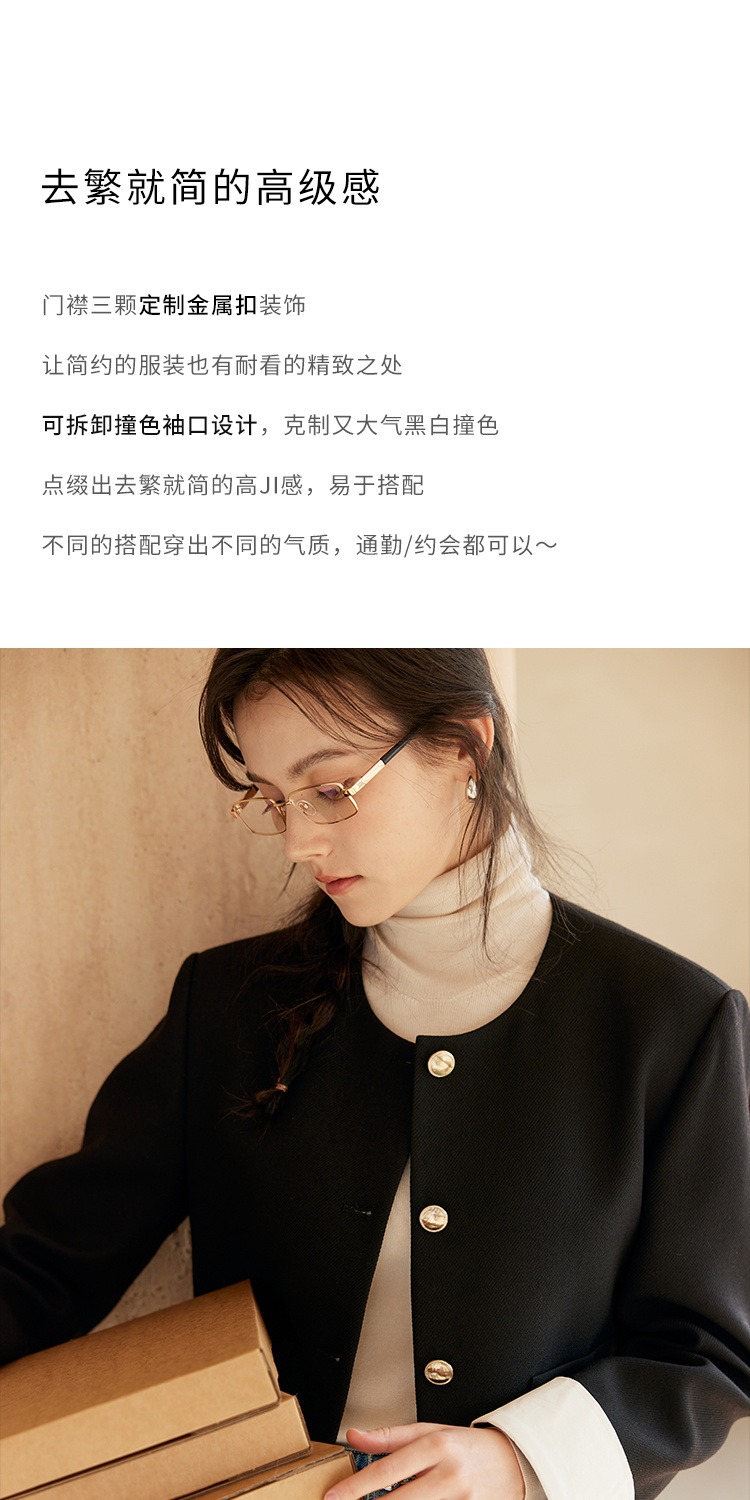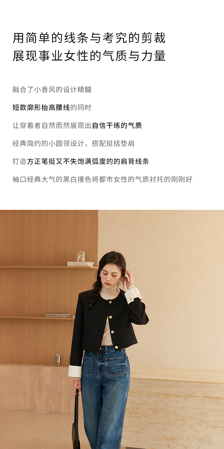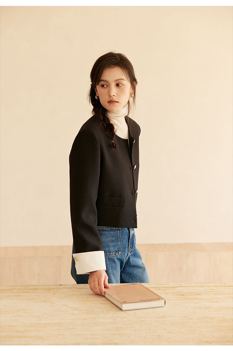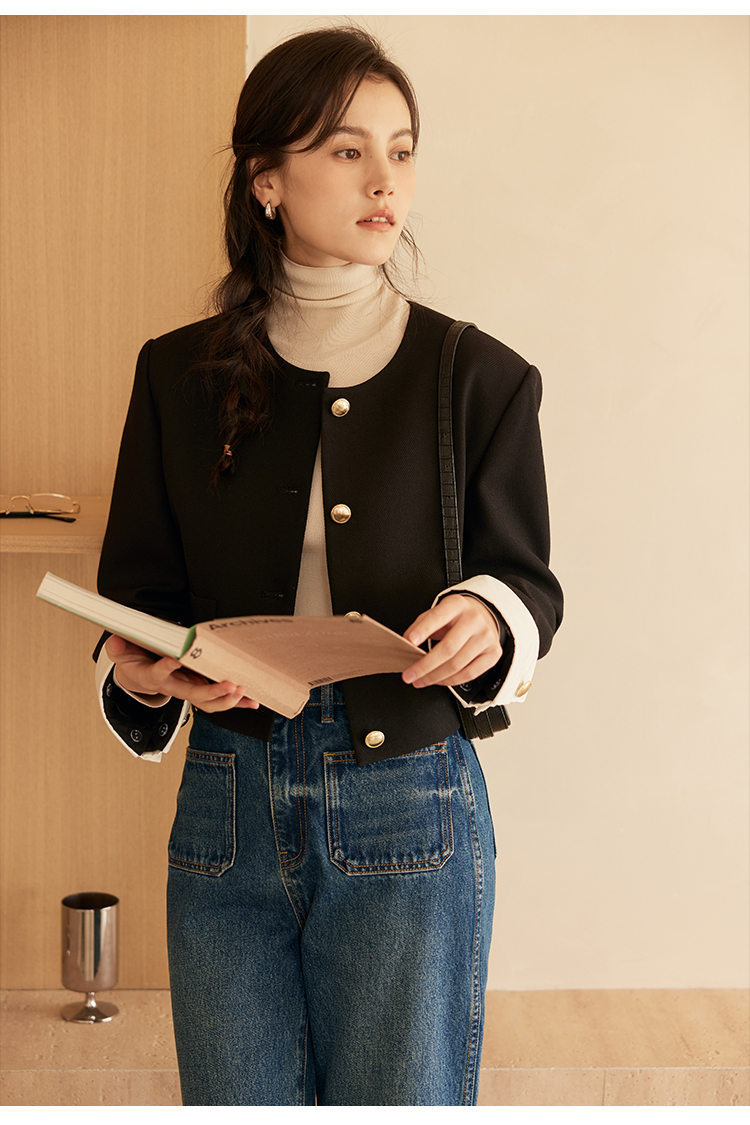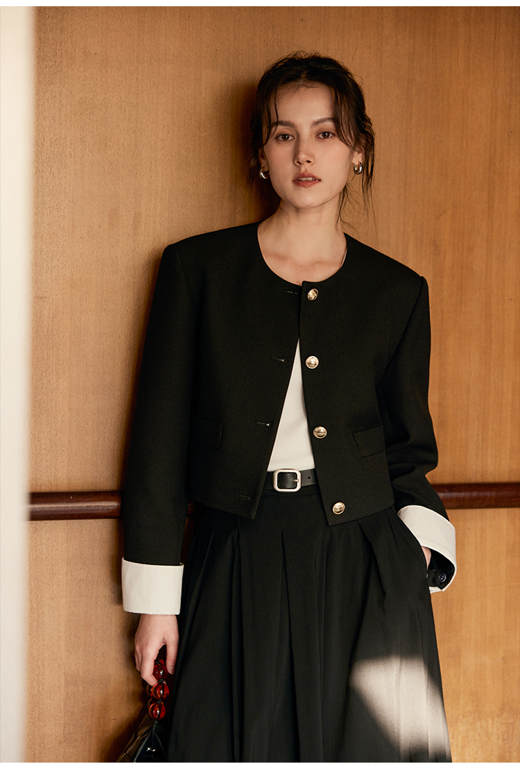 HeyDress圆领撞色袖头短外套