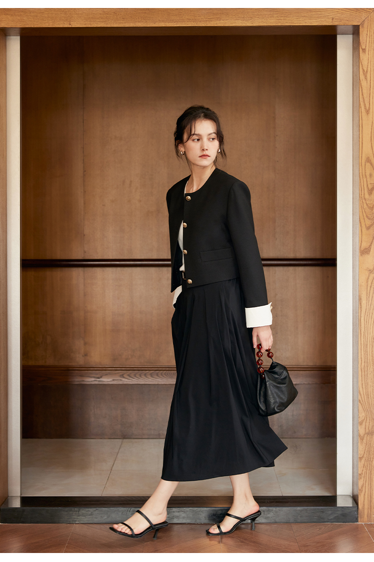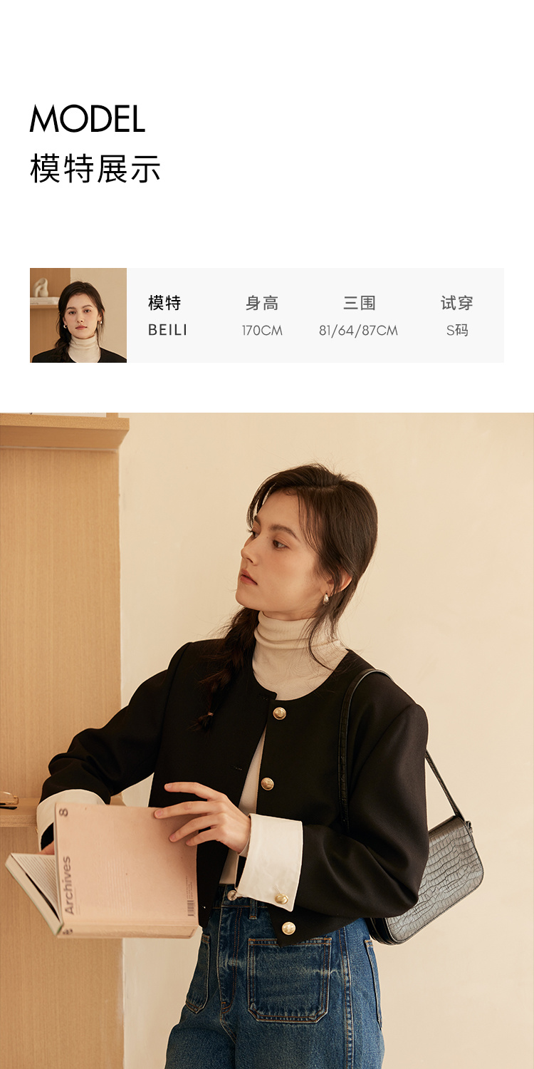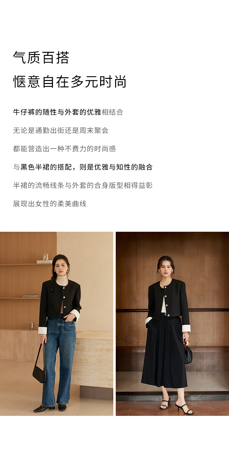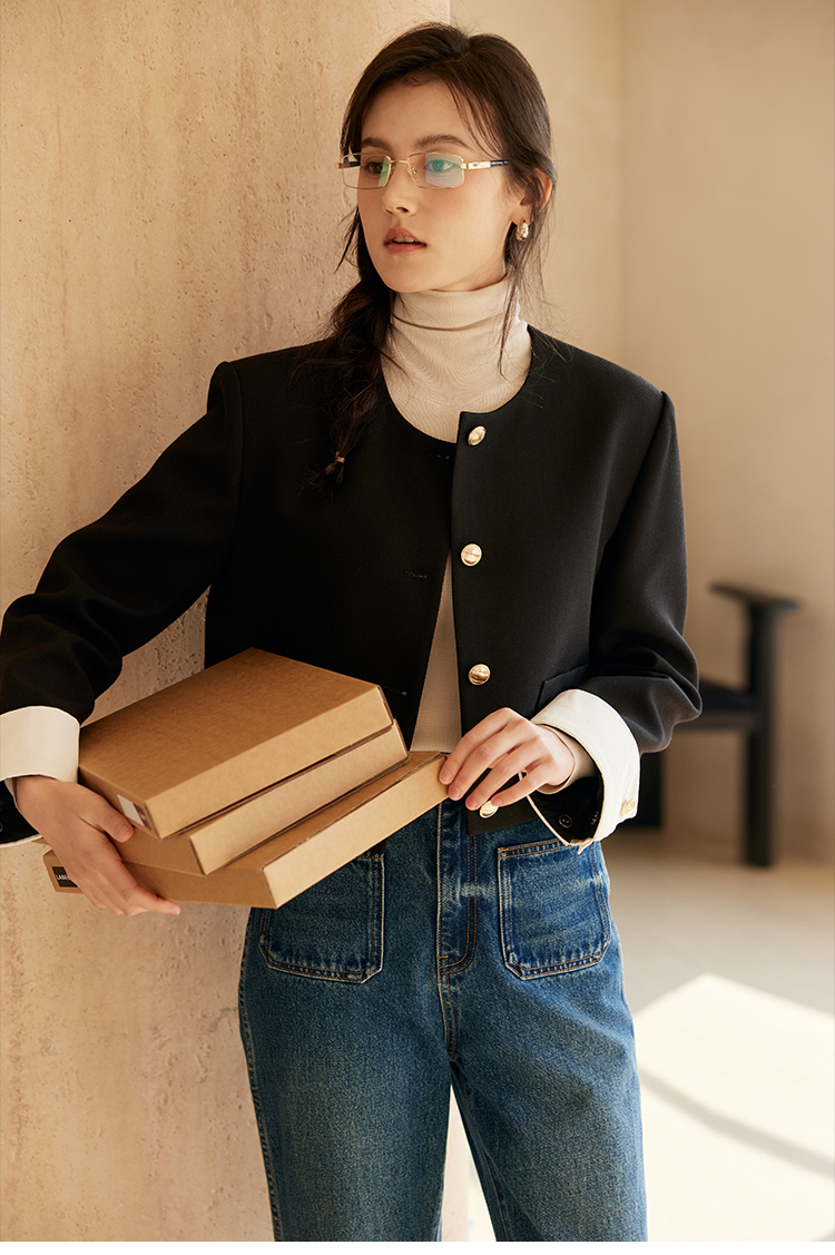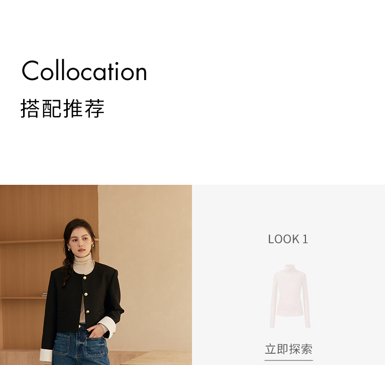 HeyDress圆领撞色袖头短外套