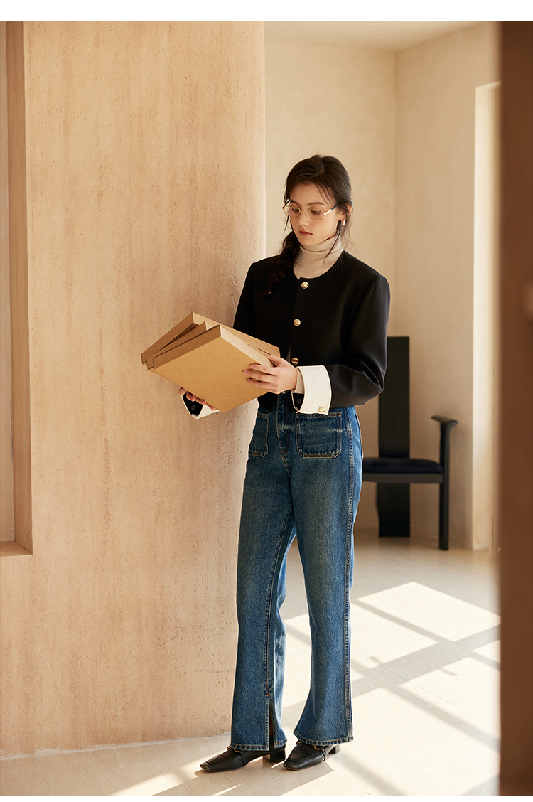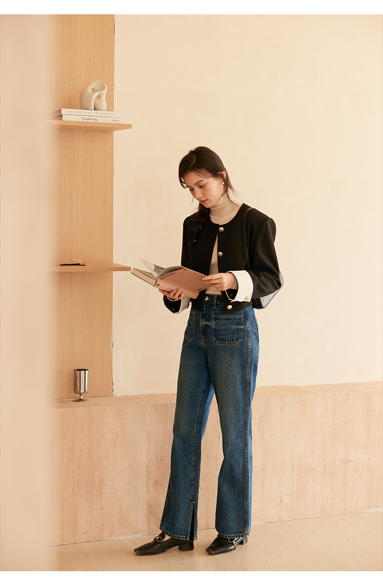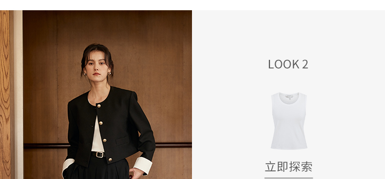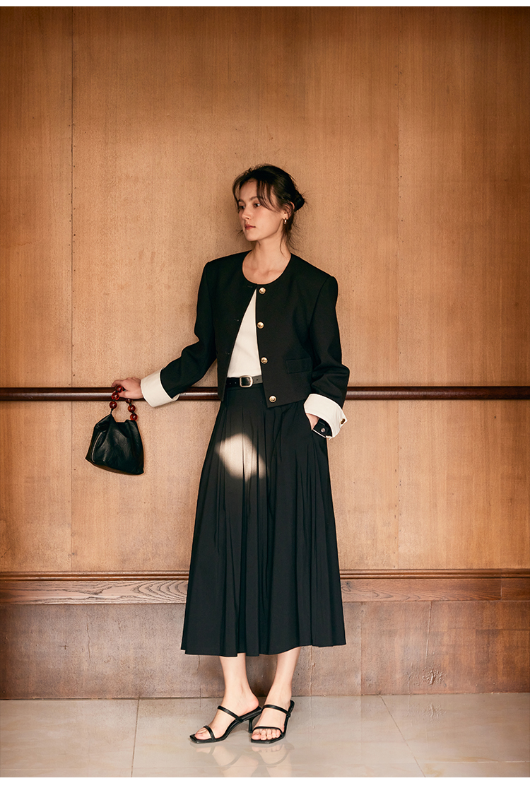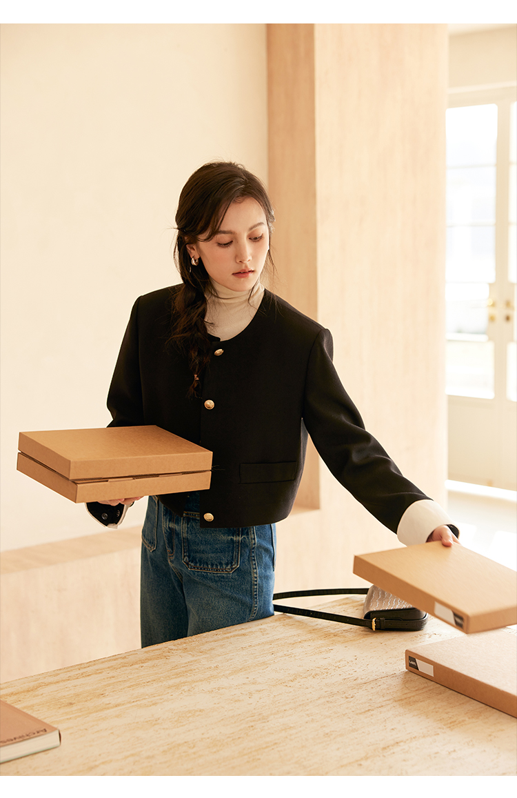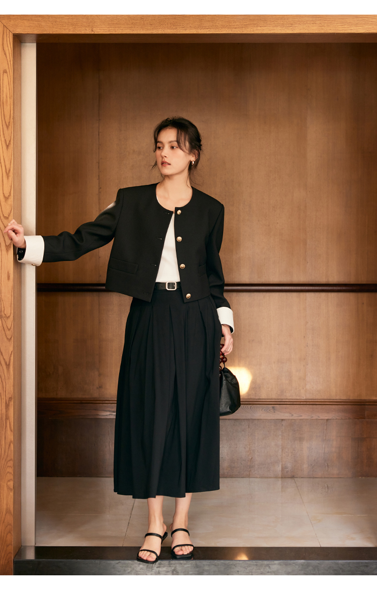 HeyDress圆领撞色袖头短外套