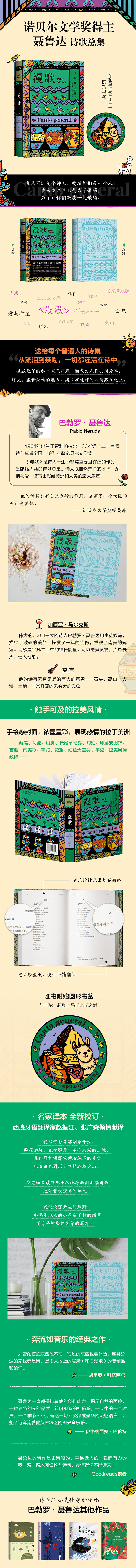 ★伟大的、ZUI伟大的诗人巴勃罗·聂鲁达用生花妙笔,描绘了破碎的美梦,抒发了千年的忧伤,重现了南美的辉煌。诗歌是平凡生活中的神秘能量,可以烹煮食物,点燃爱火,任人幻想。——加西亚·马尔克斯