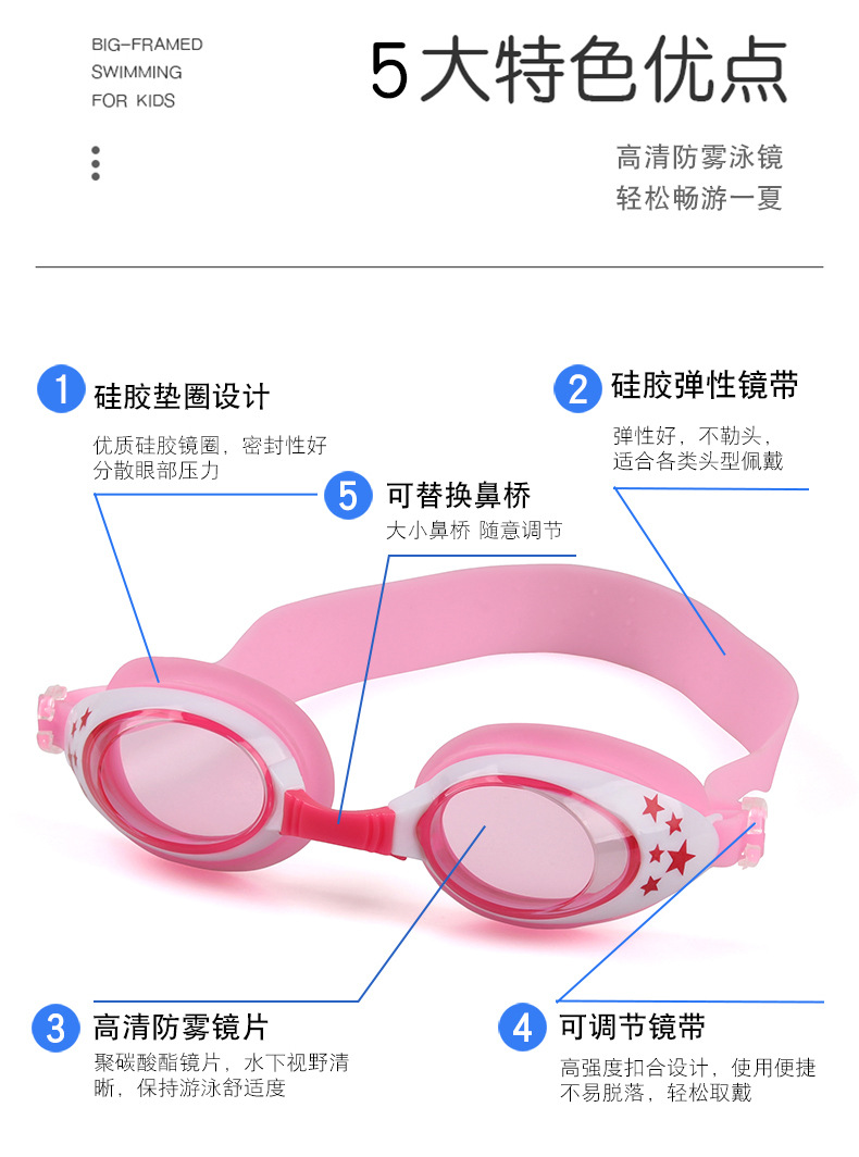 【高清镜片 防水防雾柔,软舒适!】热卖儿童泳镜高清防雾女童男童,卡通游泳眼镜大童防水游泳,镜片通透率高、水下视野更清晰-lm!