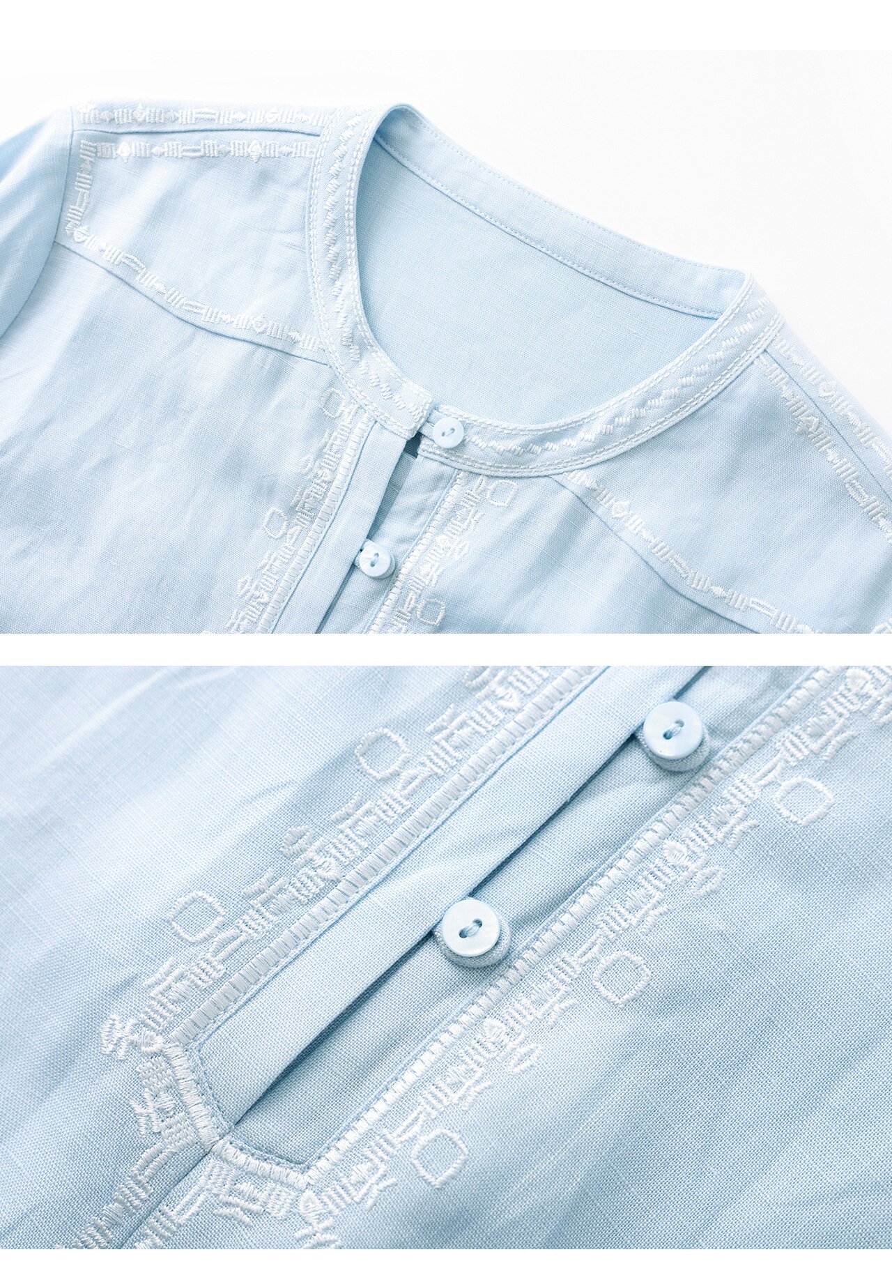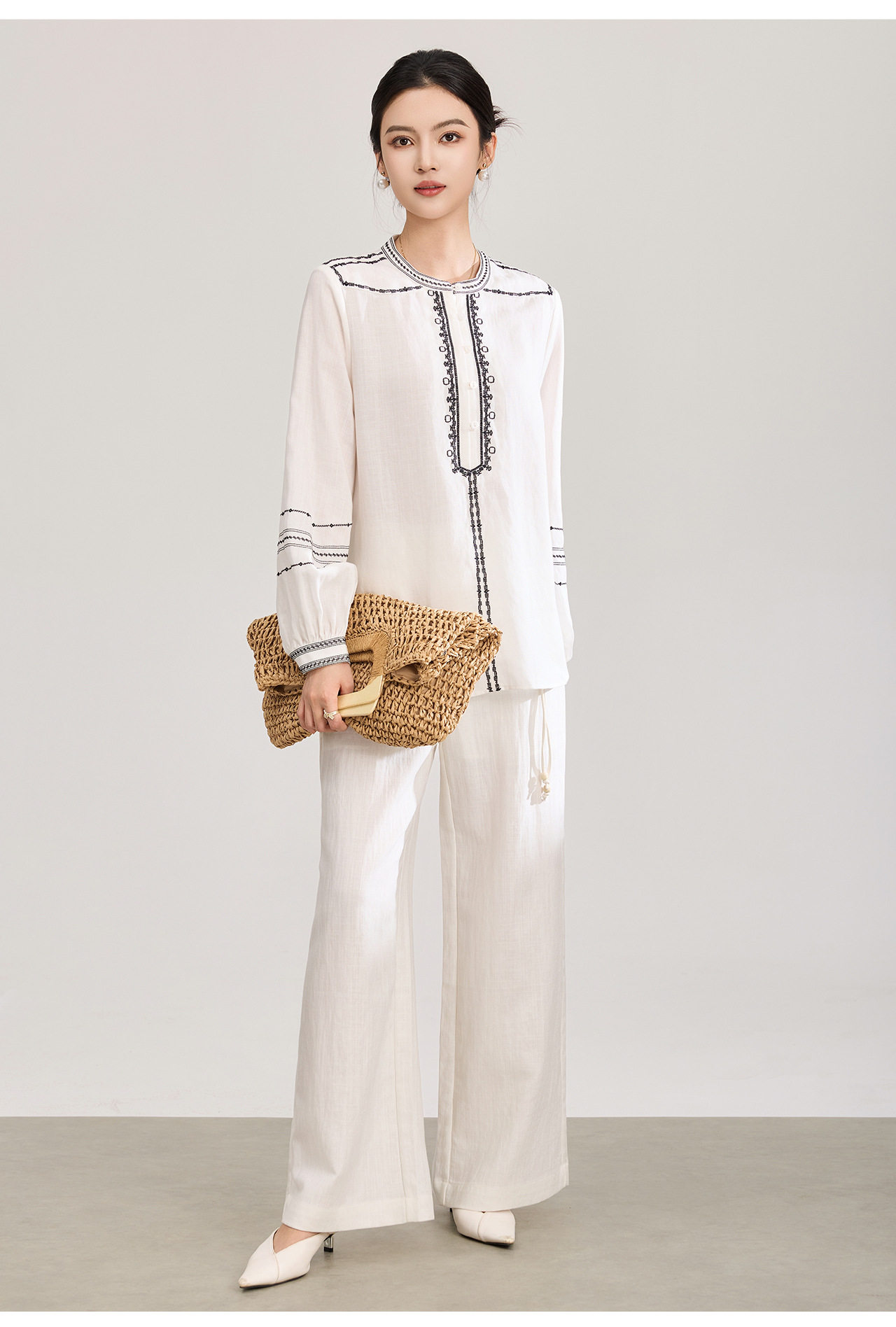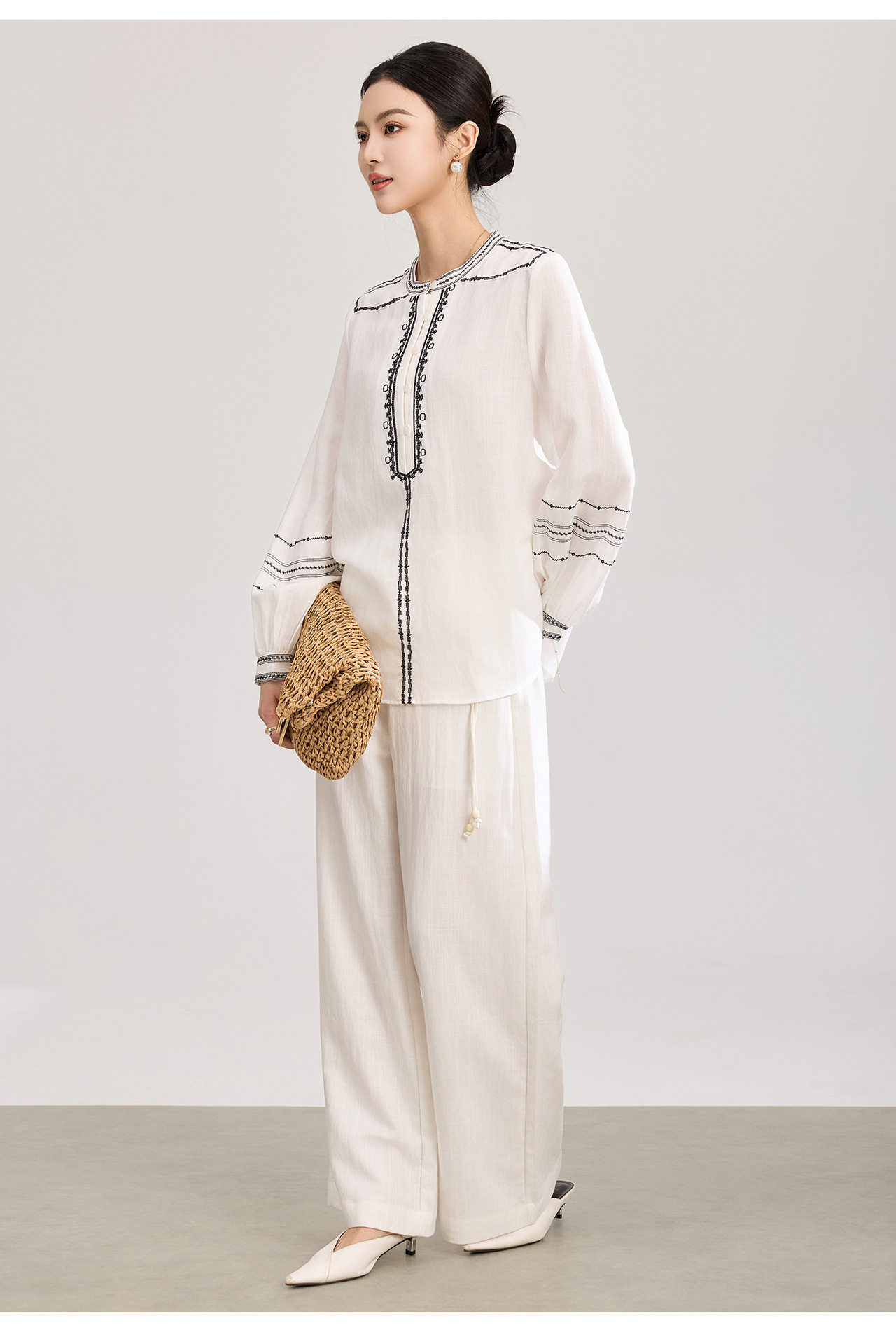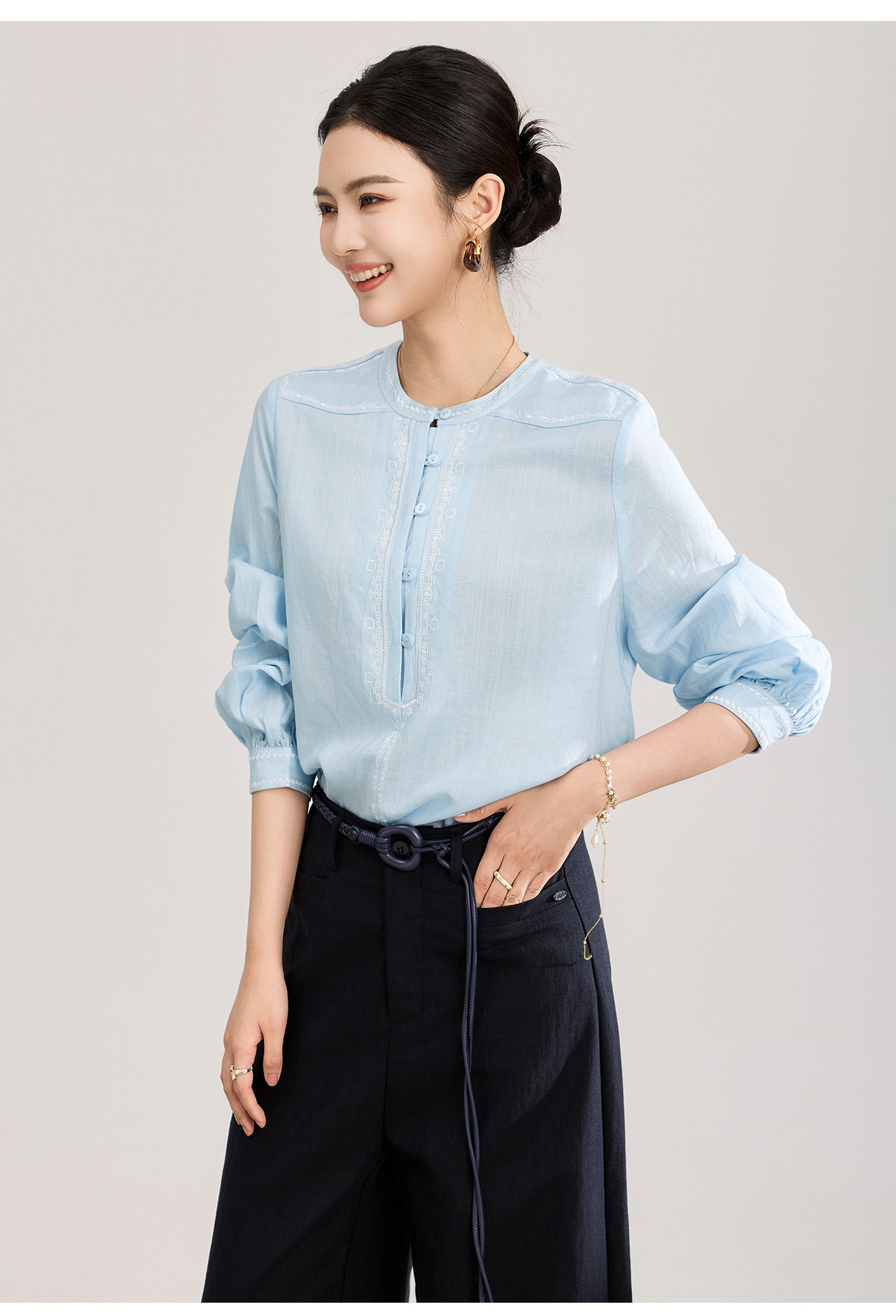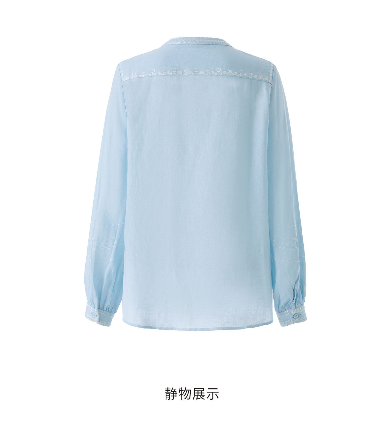 「高货wl」全新升级【铂金会员330/天猫439/差价109】(00957)洛诗琳法式氛围感撞色上衣2026新款天丝亚麻圆领衬衫女
