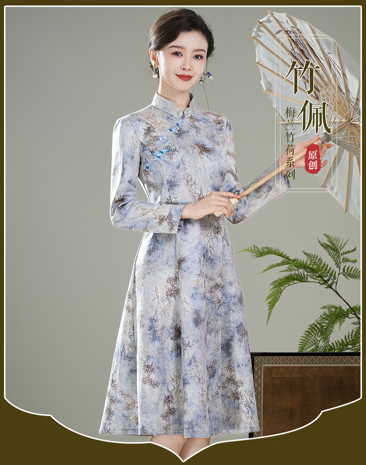 【竹佩】改良复古长袖日常,新中式国风旗袍连衣裙XGT-T25127