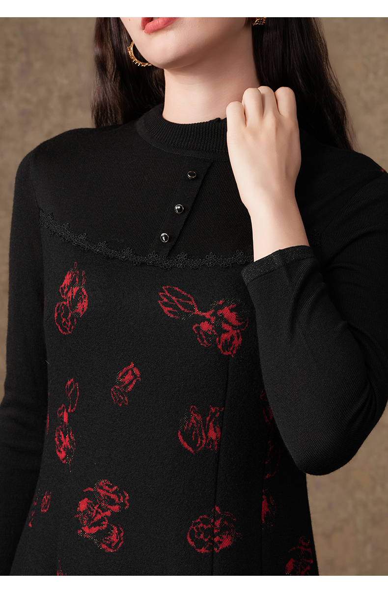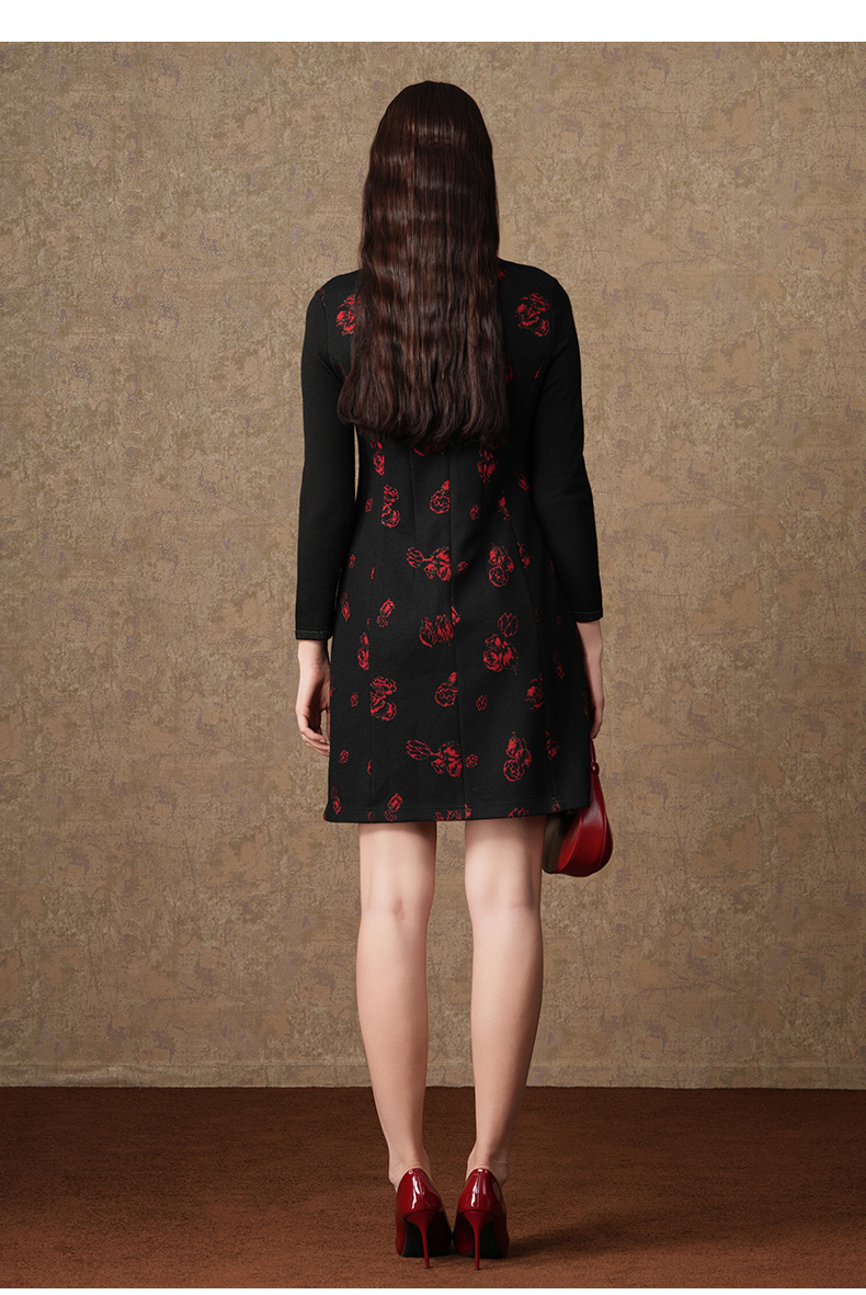 乔万尼新款秋冬印花连衣裙气质时尚修身收腰显瘦中长裙ES4E318