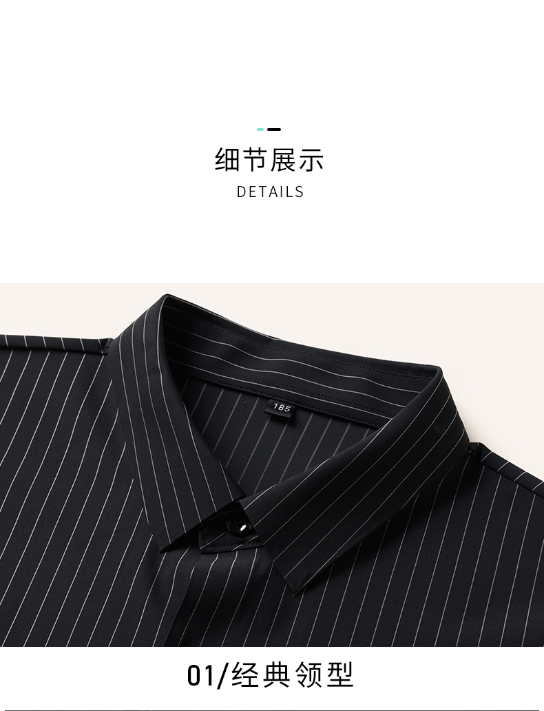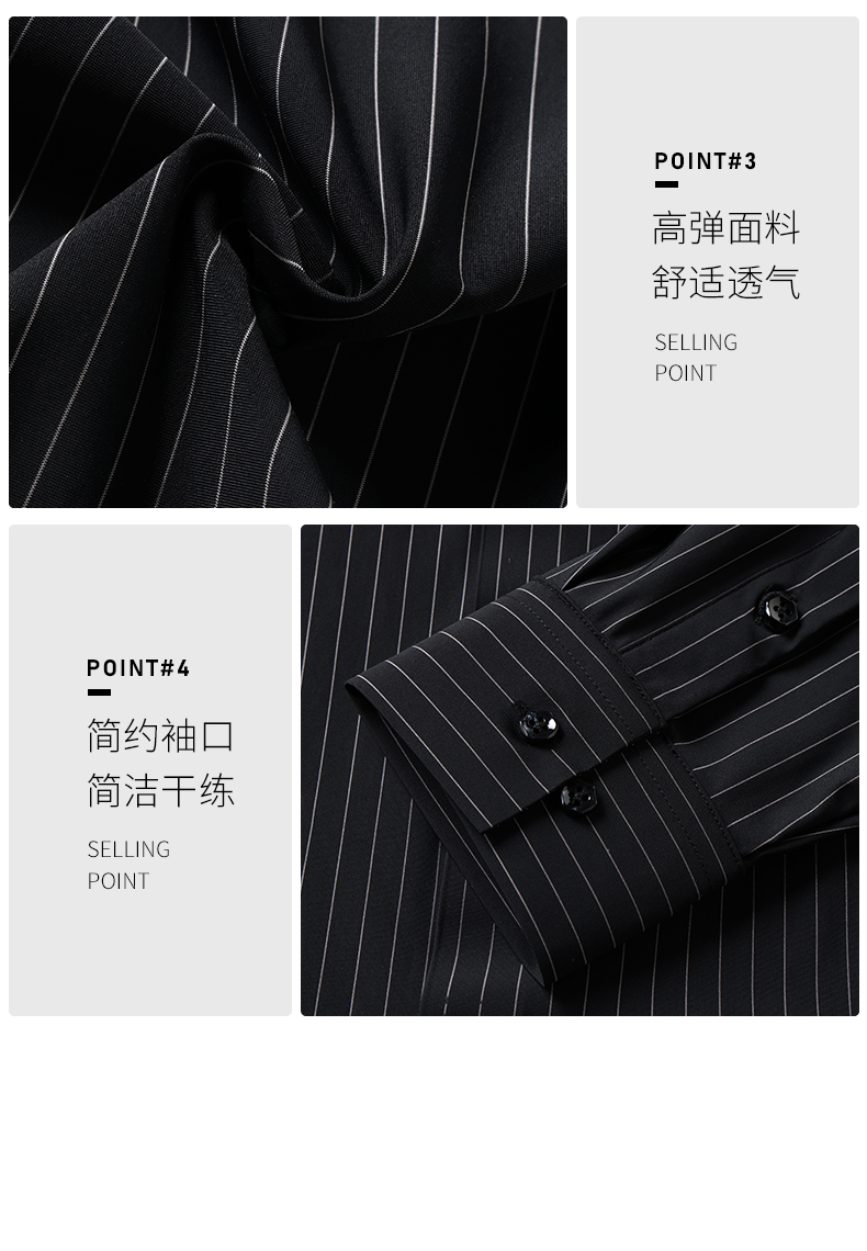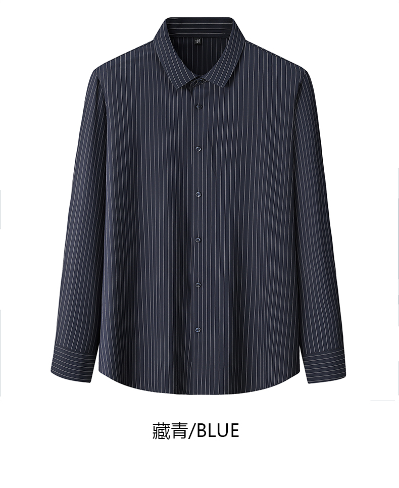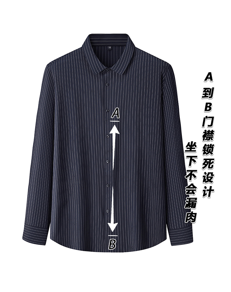 【超大码】【新款DM】大依优型高弹竖条纹封口长袖衬衫男宽松加肥加大码男士休闲商务衬衣上衣胖子