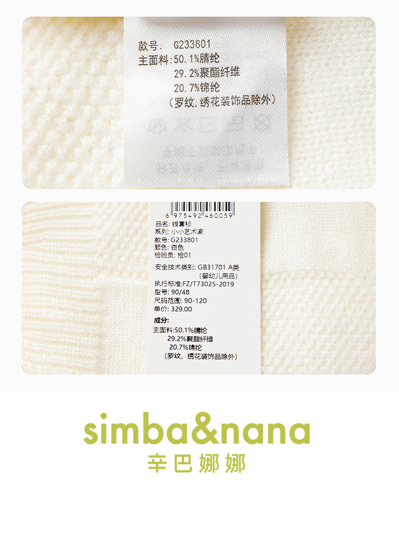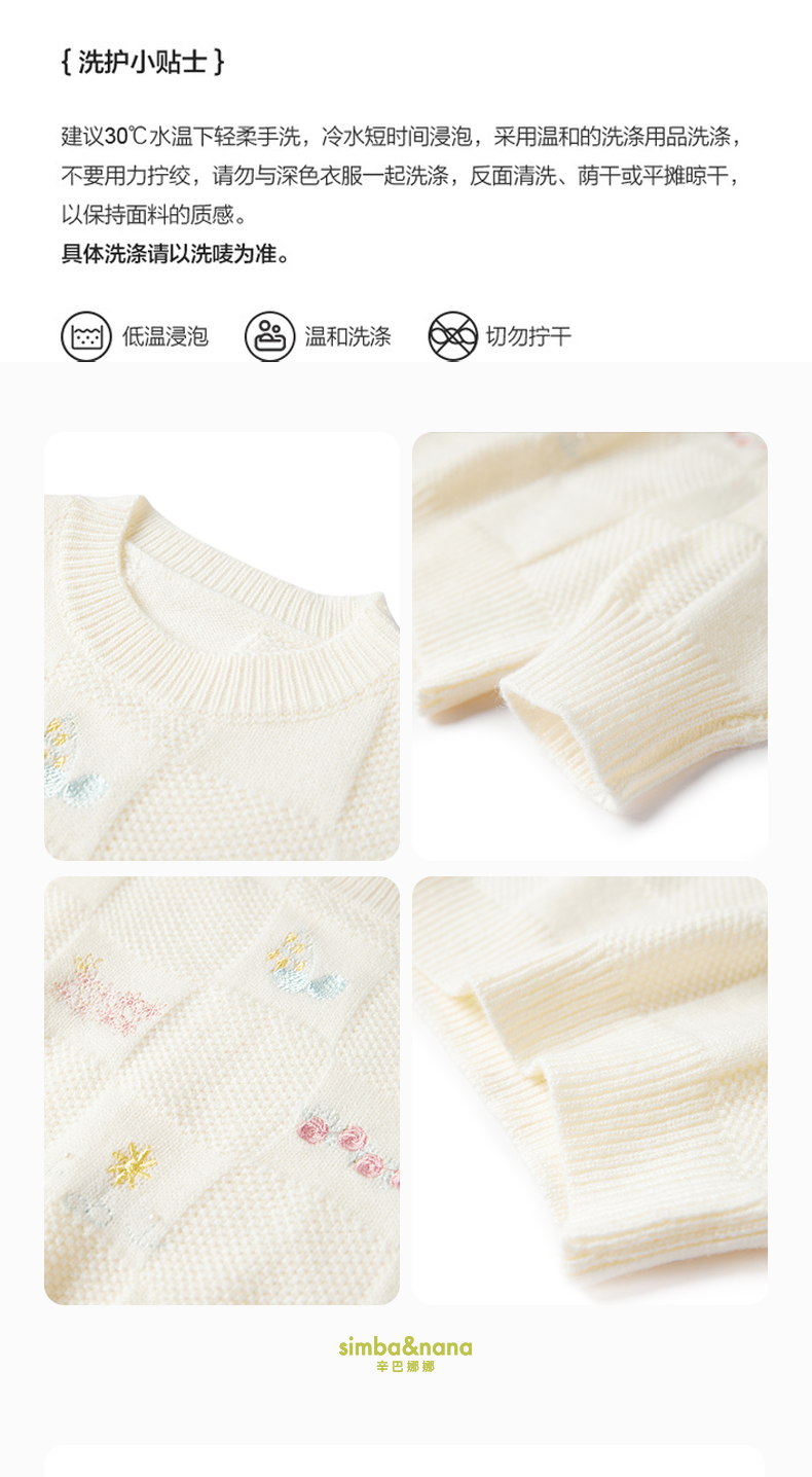 【辛巴娜娜】simbanana新款儿童毛衣女孩针织毛线衫小女童纯色保暖童装