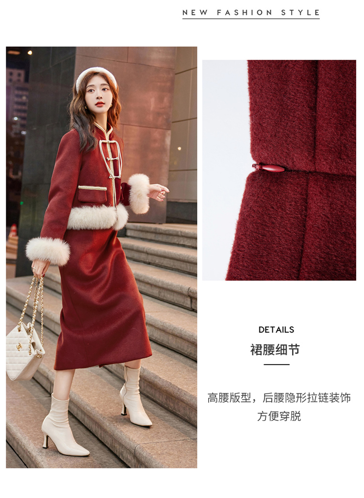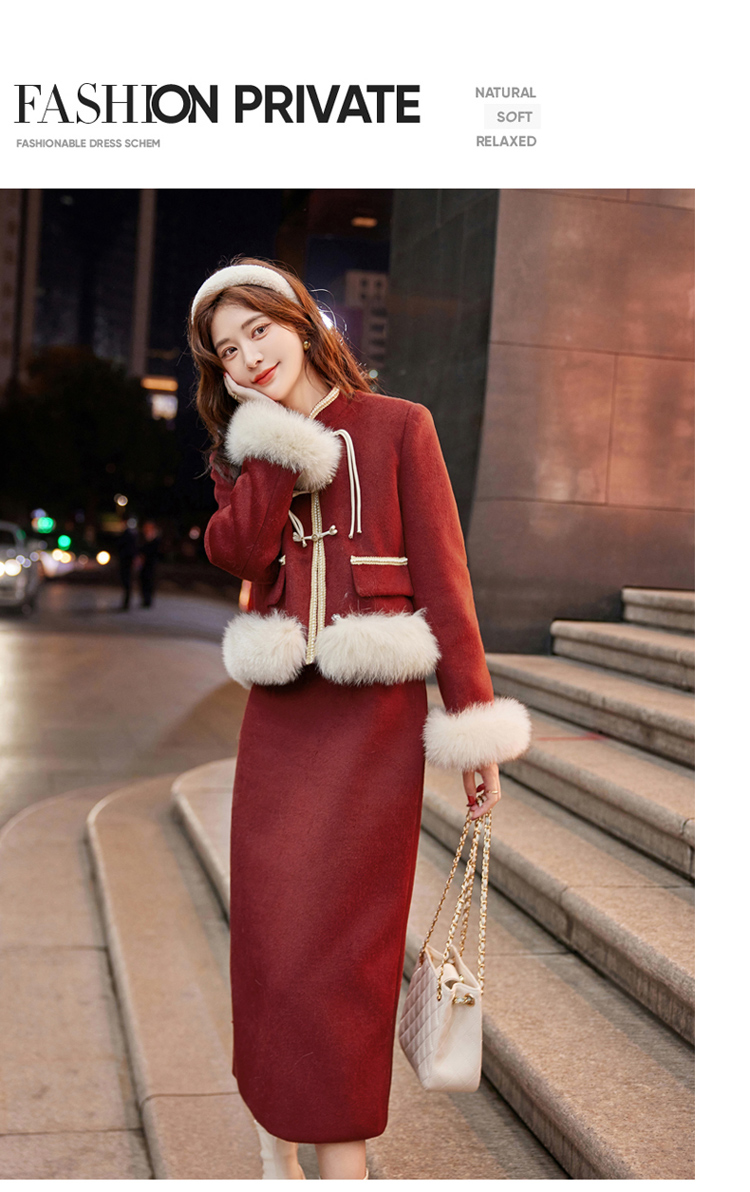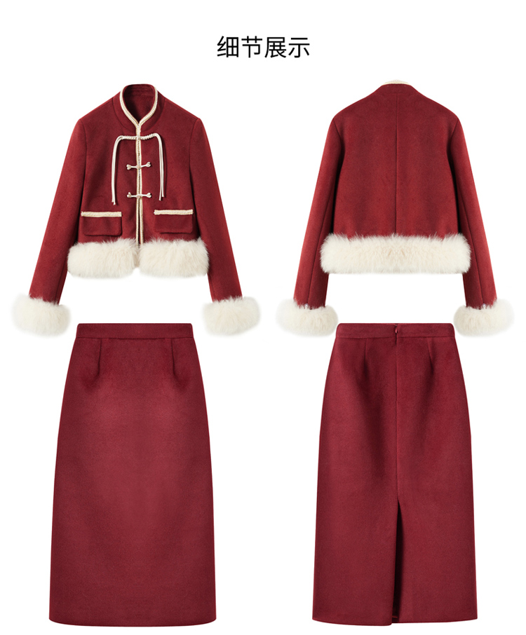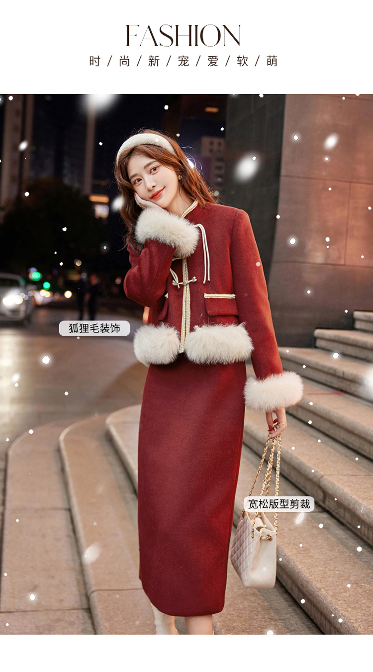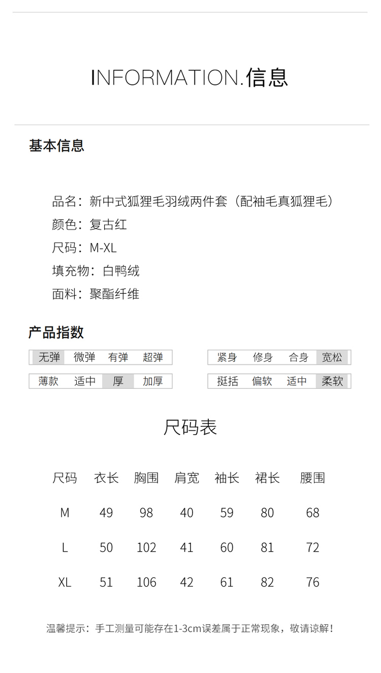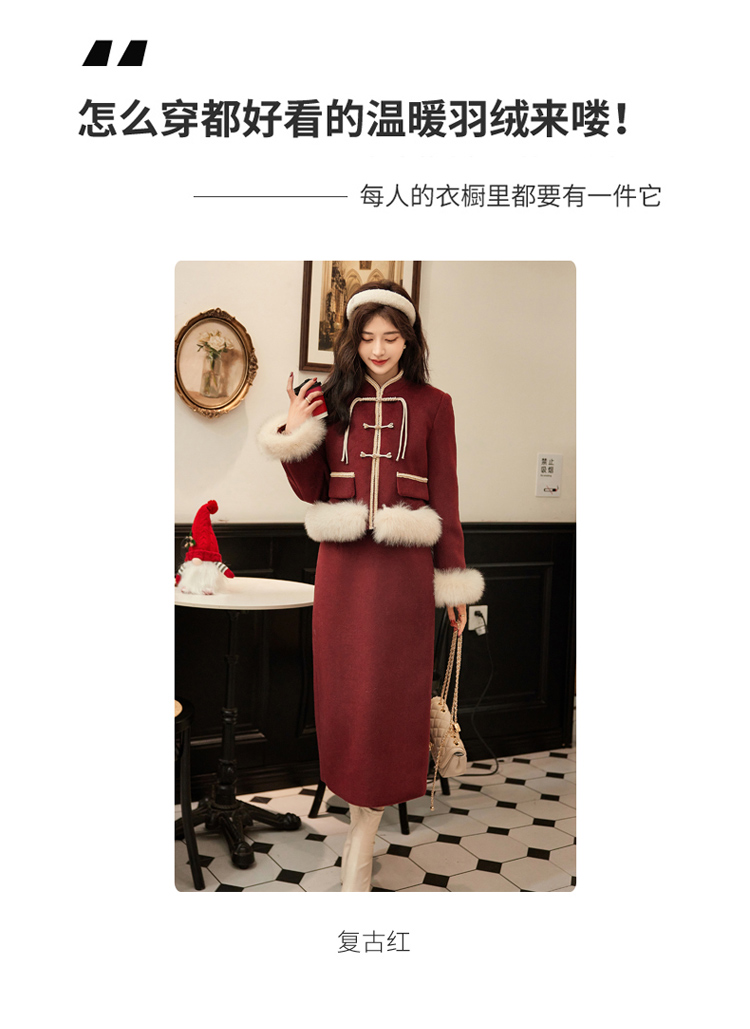 冬装新款,过年气质复古红羽绒套装白鸭绒真狐狸毛HR-YJLY9030