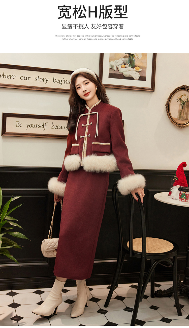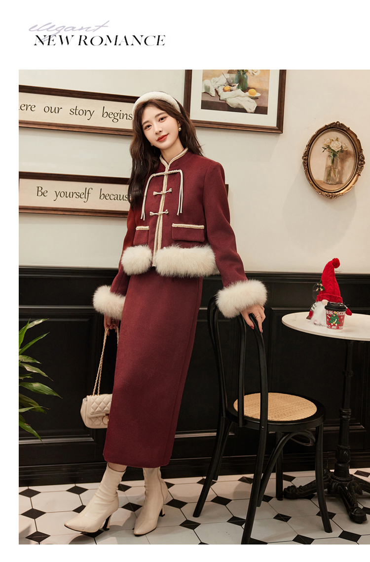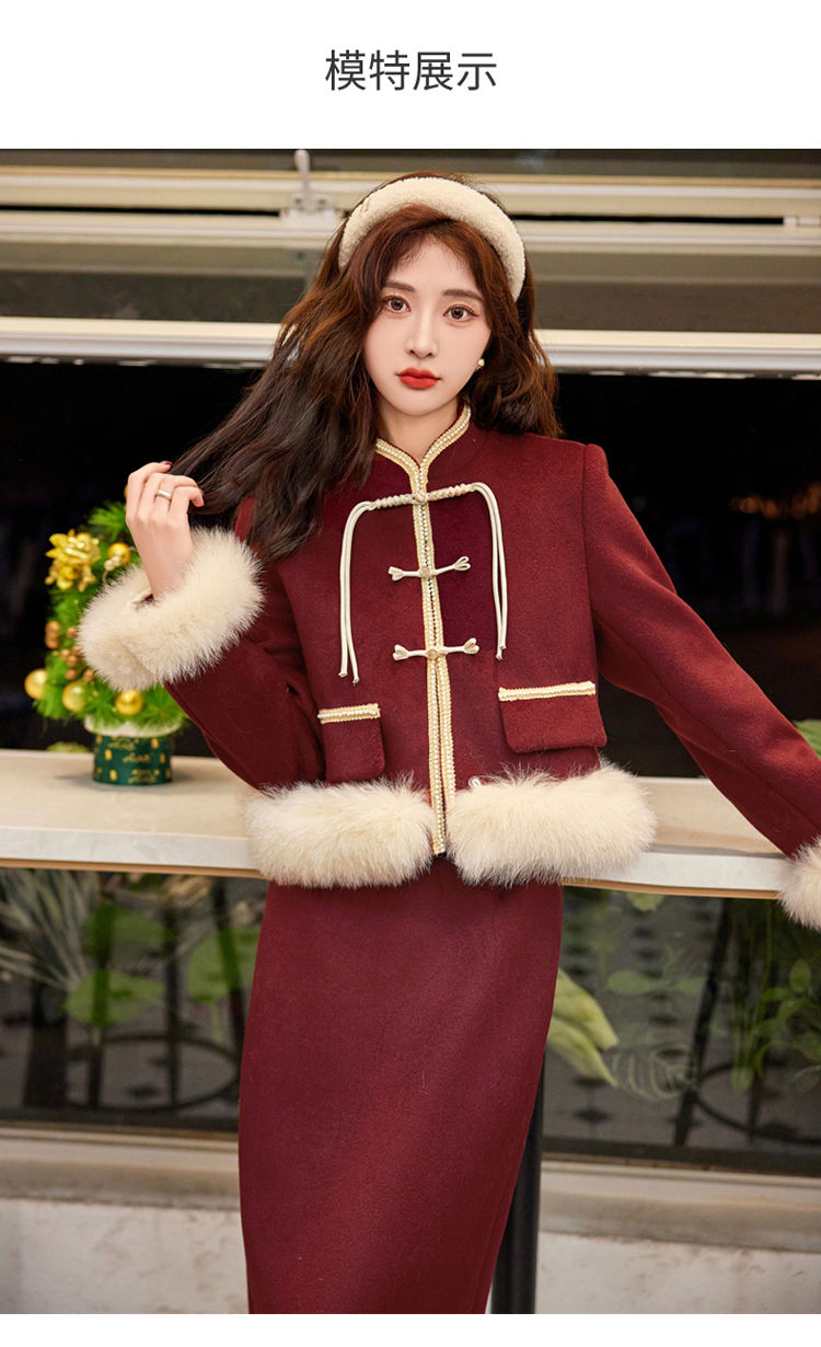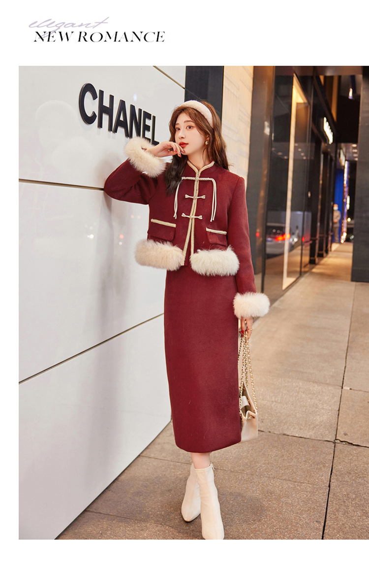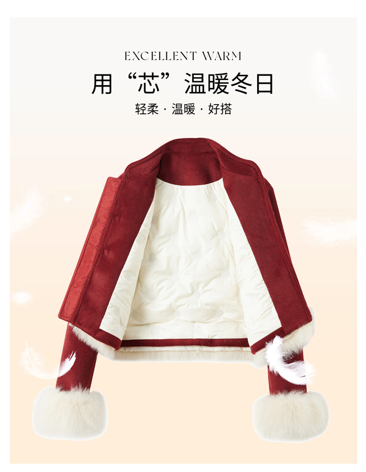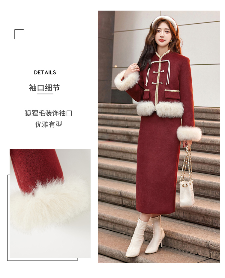 冬装新款,过年气质复古红羽绒套装白鸭绒真狐狸毛HR-YJLY9030
