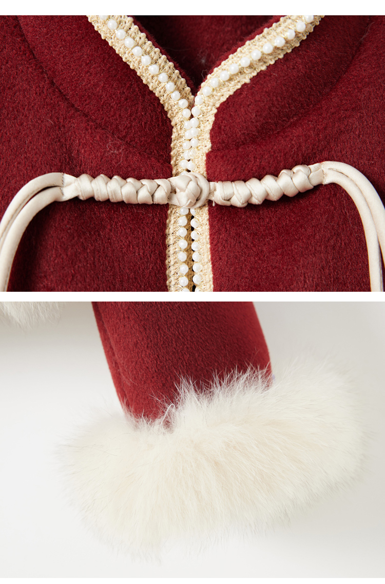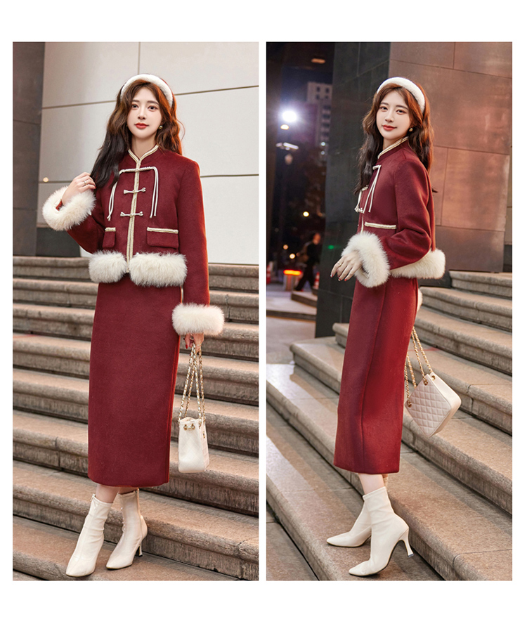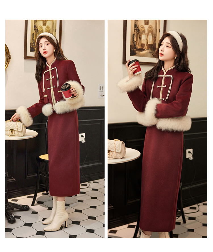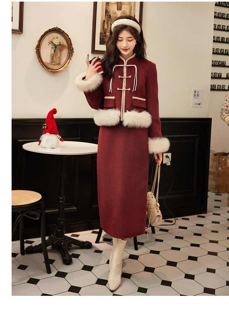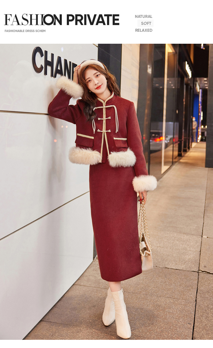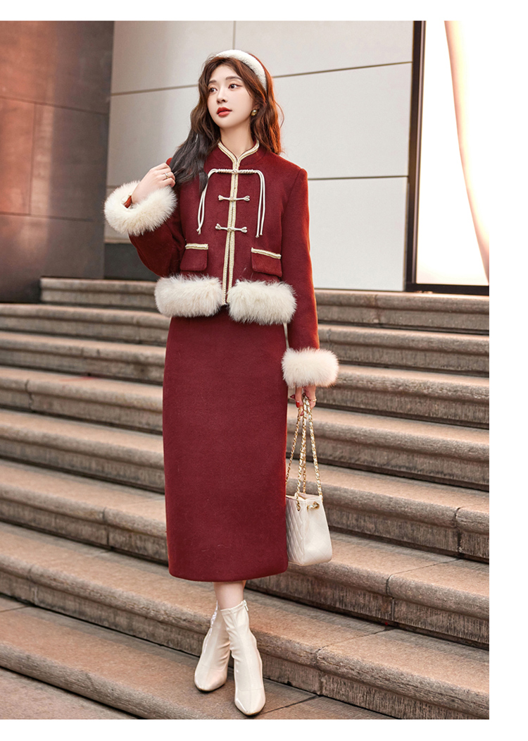 冬装新款,过年气质复古红羽绒套装白鸭绒真狐狸毛HR-YJLY9030