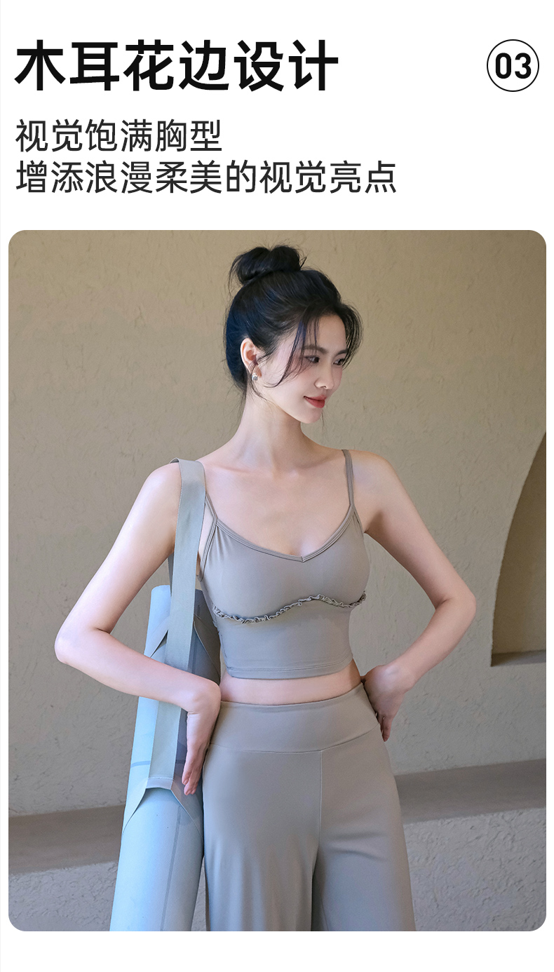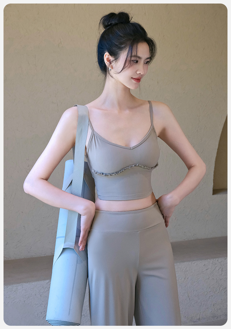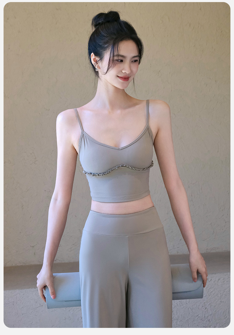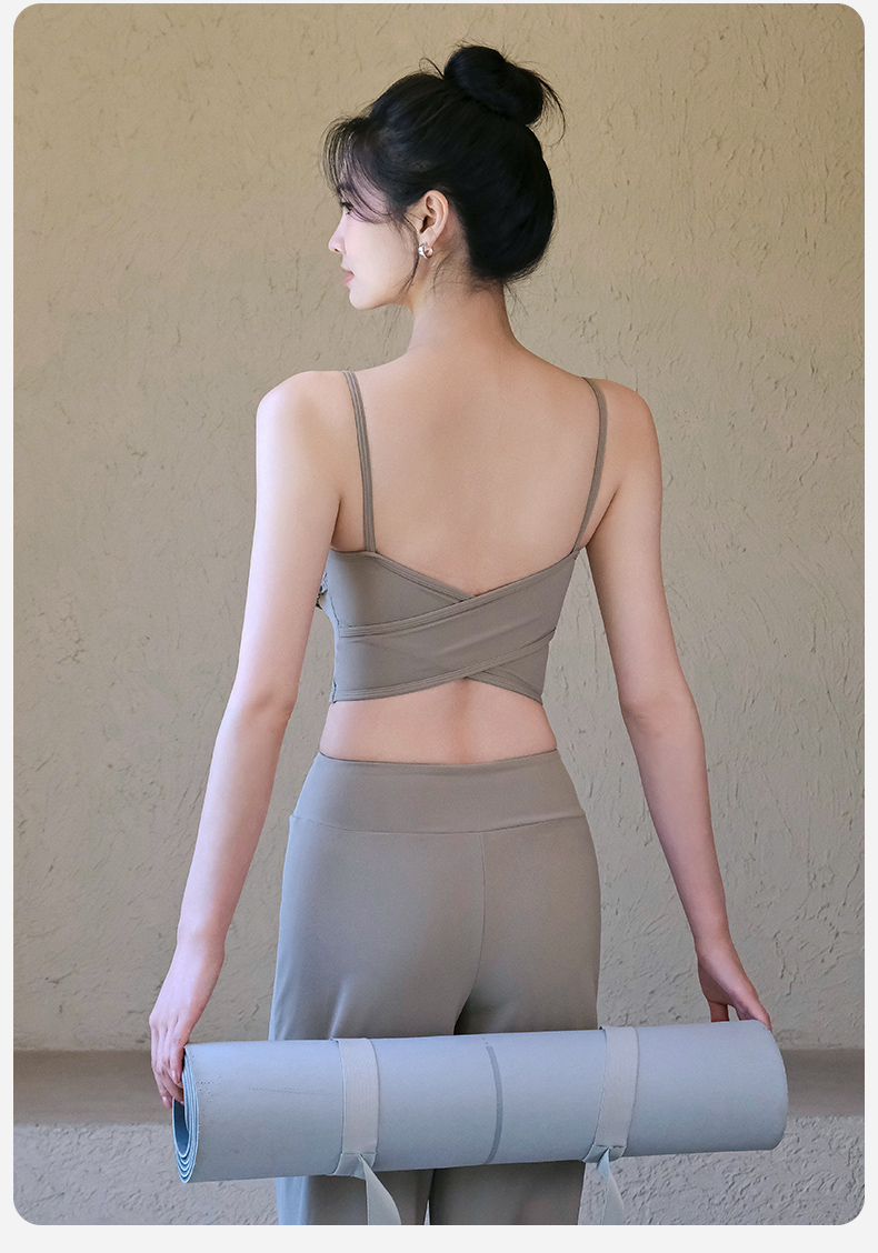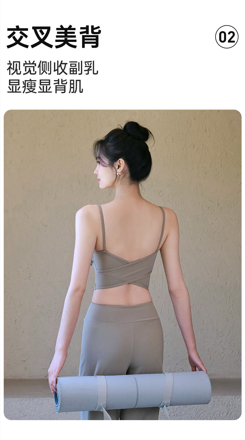 跃牌【禅语梵心】云感美背细肩带花边瑜伽背心带胸垫普拉提健身文胸运动内衣女WX5537