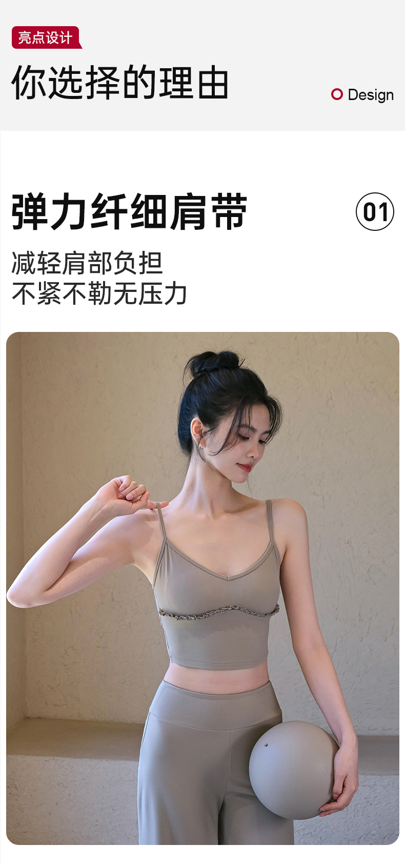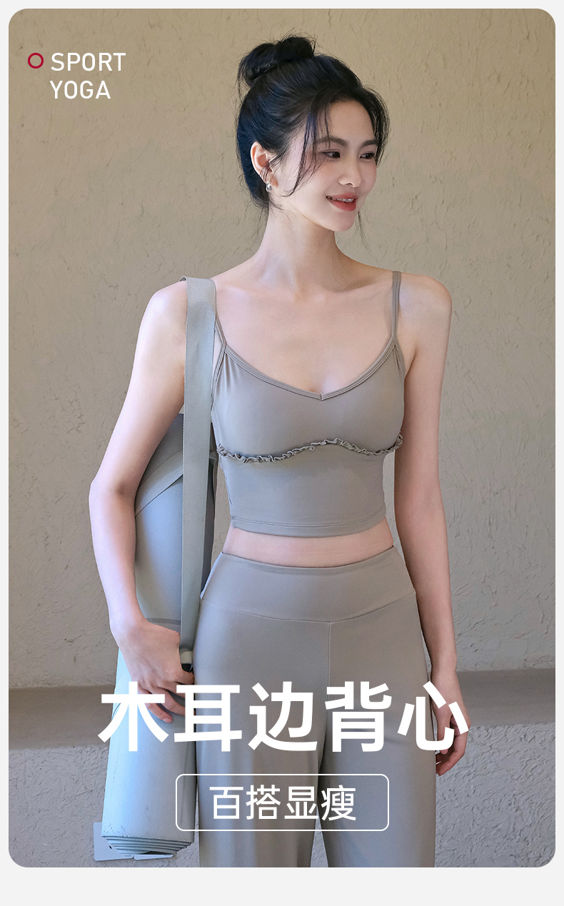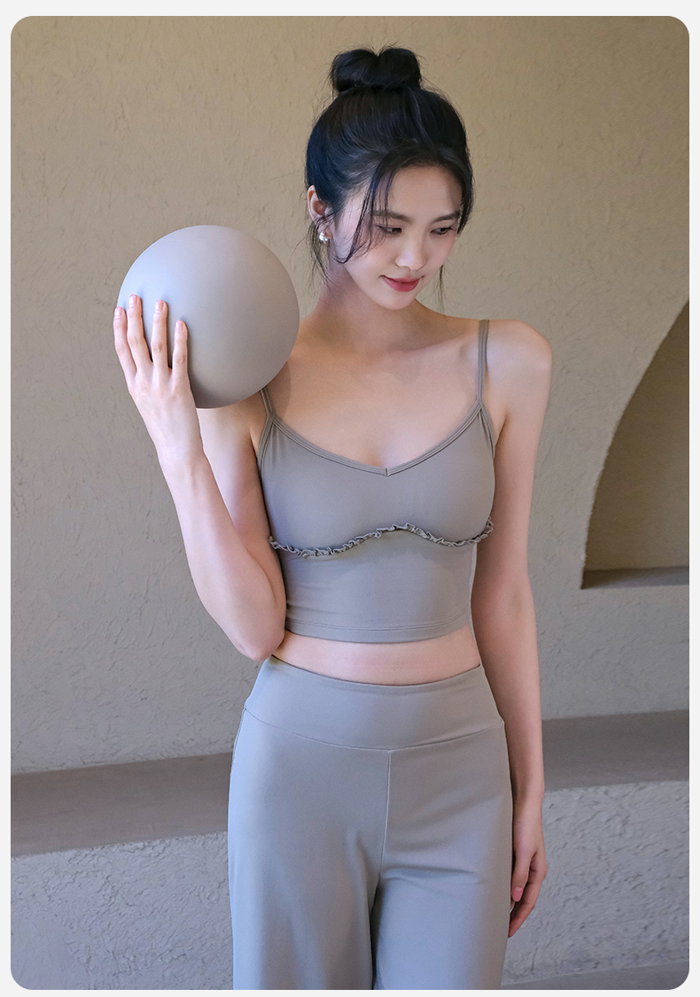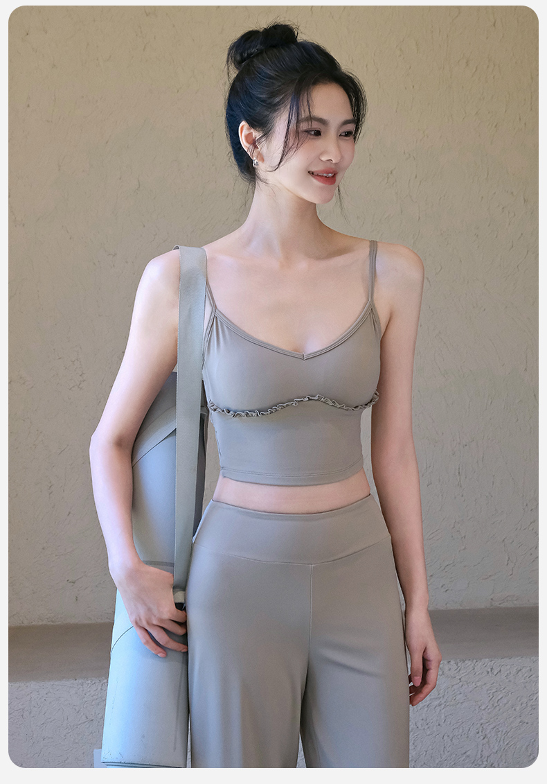 跃牌【禅语梵心】云感美背细肩带花边瑜伽背心带胸垫普拉提健身文胸运动内衣女WX5537