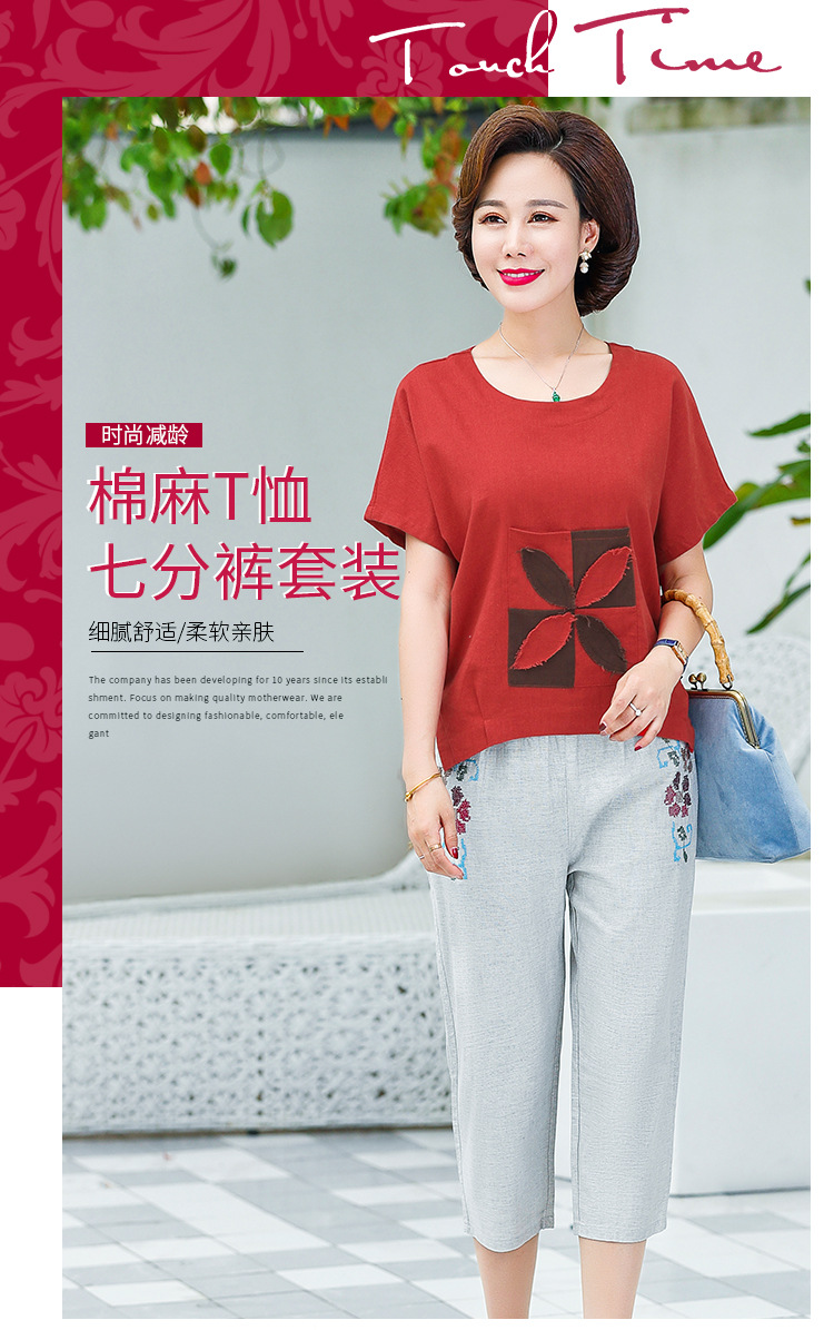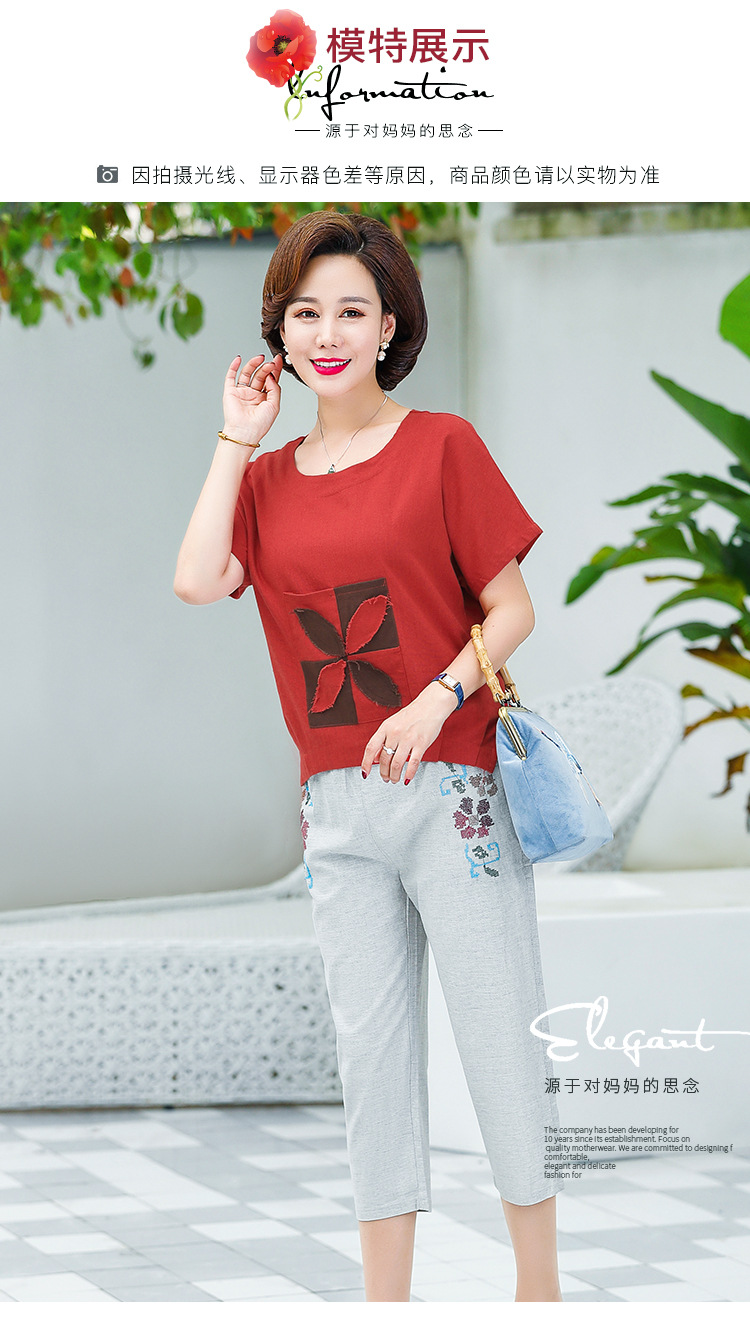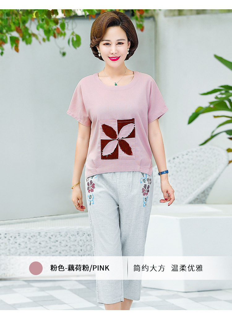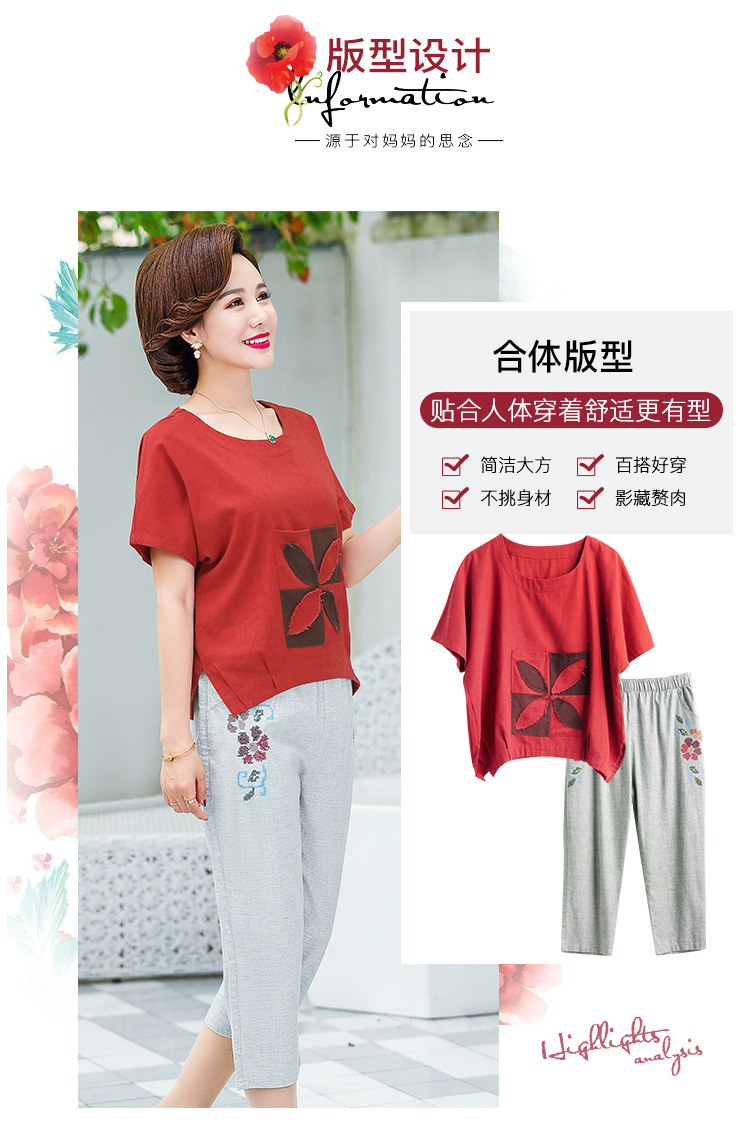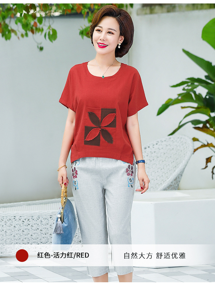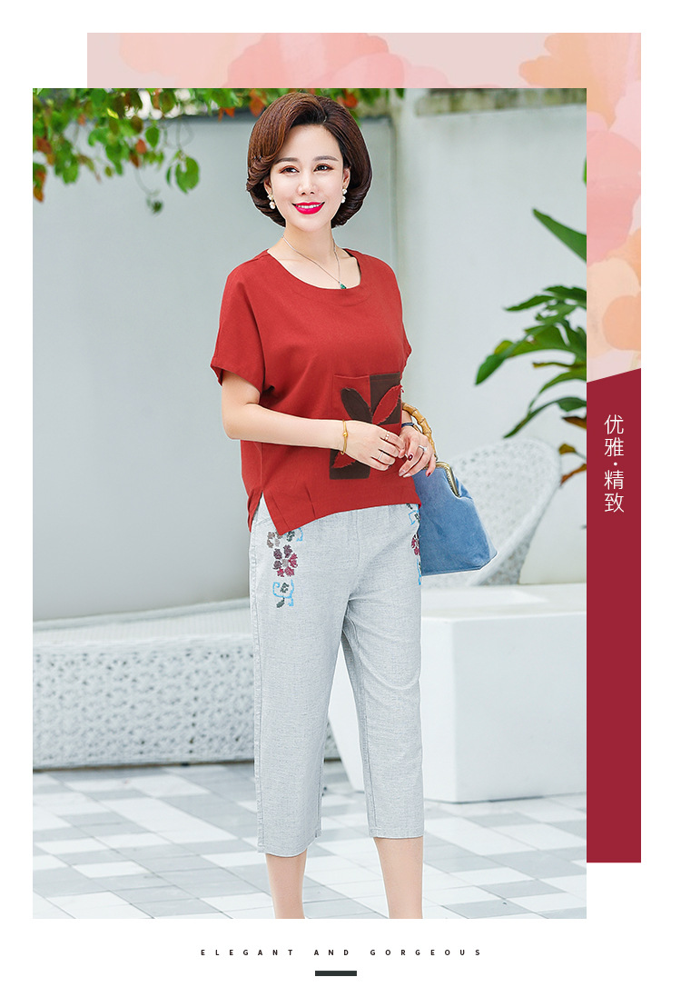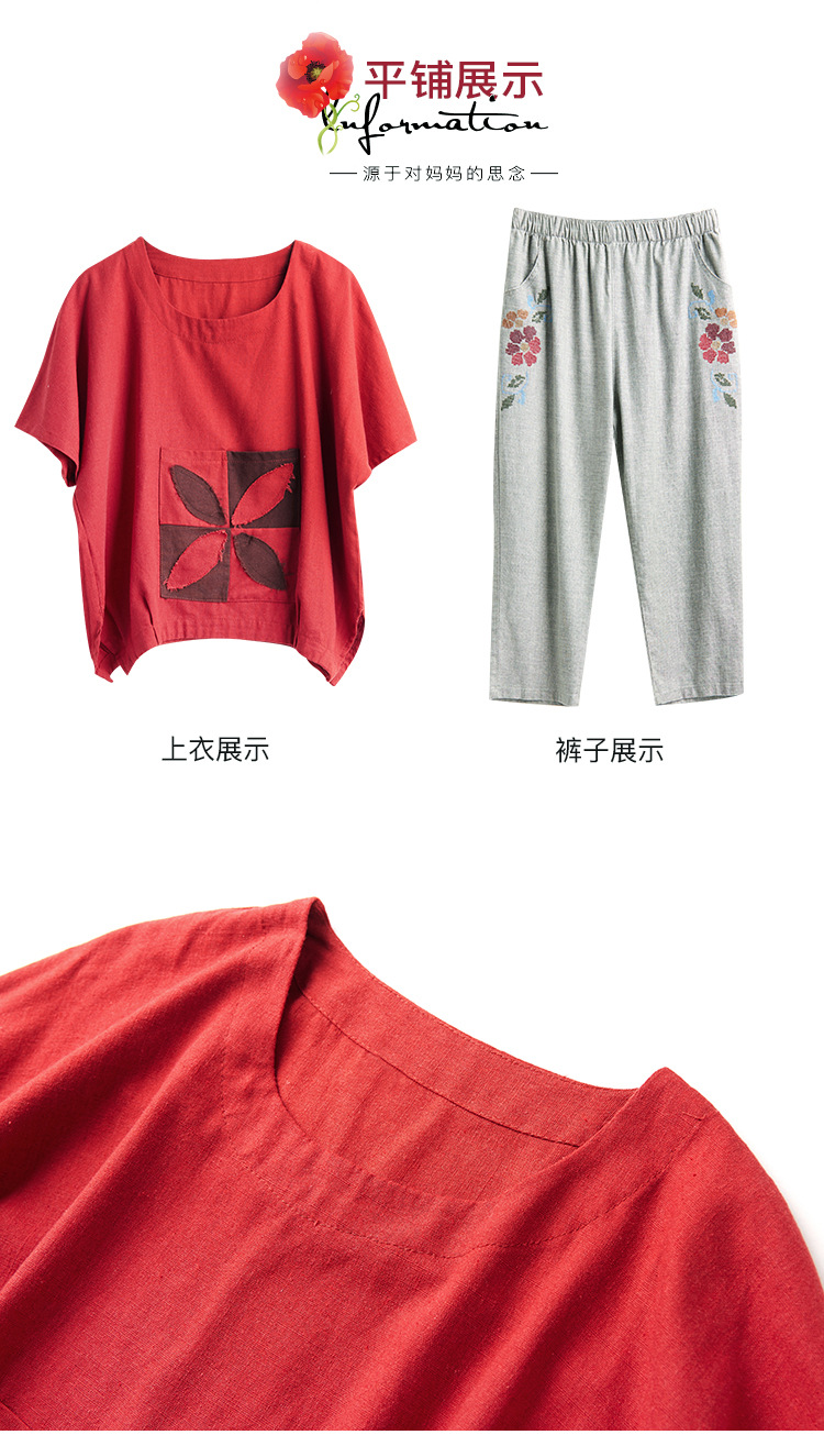 JR-Q8TA924CF休闲中老年女装夏装大码棉麻两件套