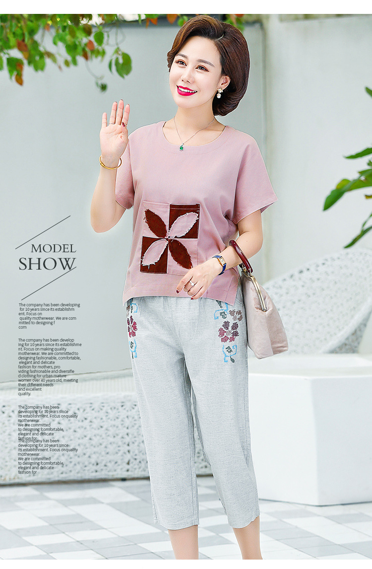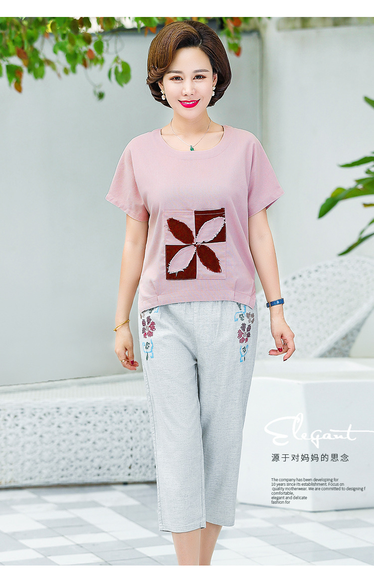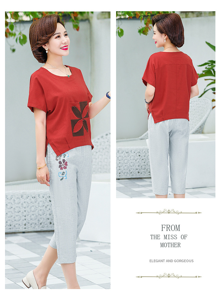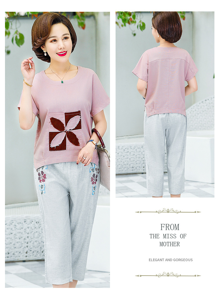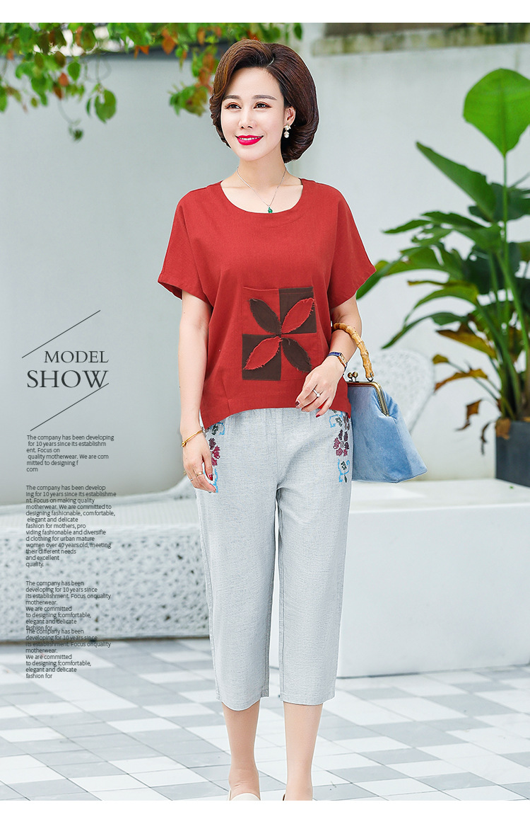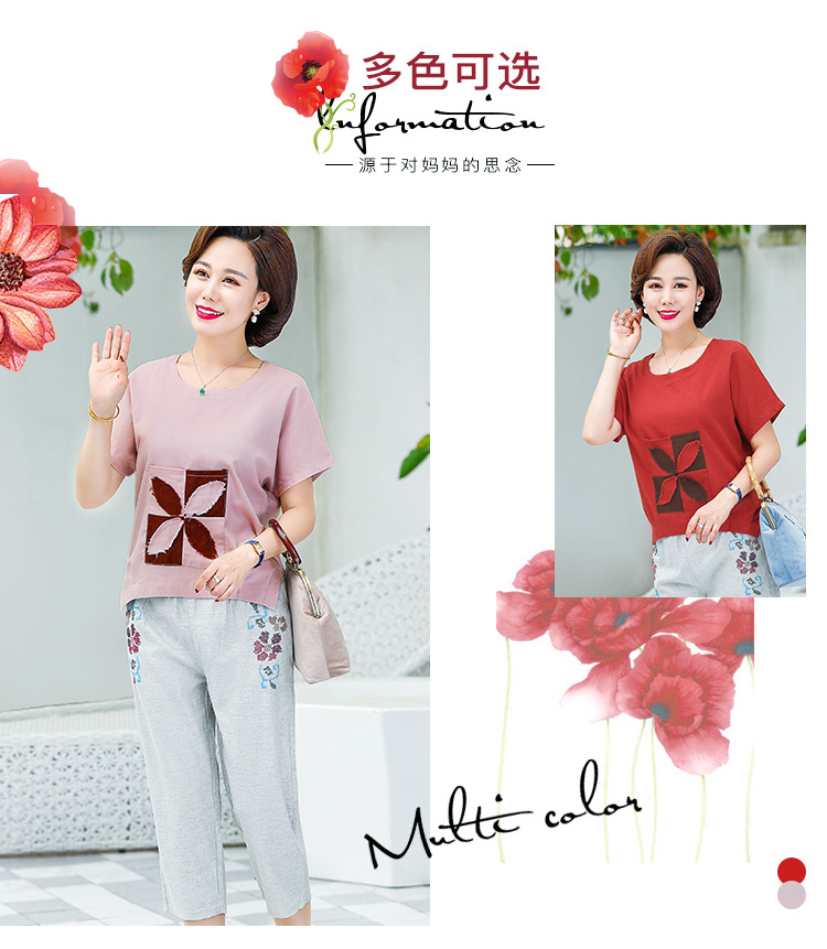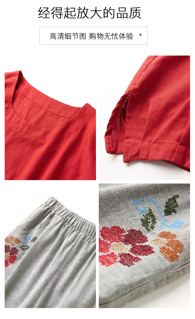 JR-Q8TA924CF休闲中老年女装夏装大码棉麻两件套