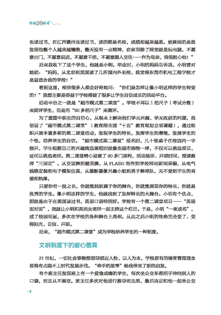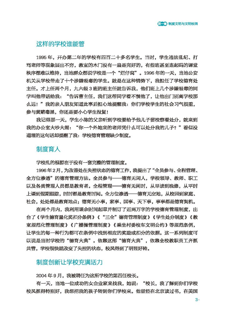 这本书以独特的视角为读者展现一所学校的现代行政管理制度、现代人事管理制度、现代财务管理制度、现代资产管理制度、现代教学管理制度、现代学生管理制度等制度出台的背景、过程、实施、修订及效果,全面呈现“制度治校”的管理理念,对其他学校构建现代学校制度有相当好的借鉴意义。