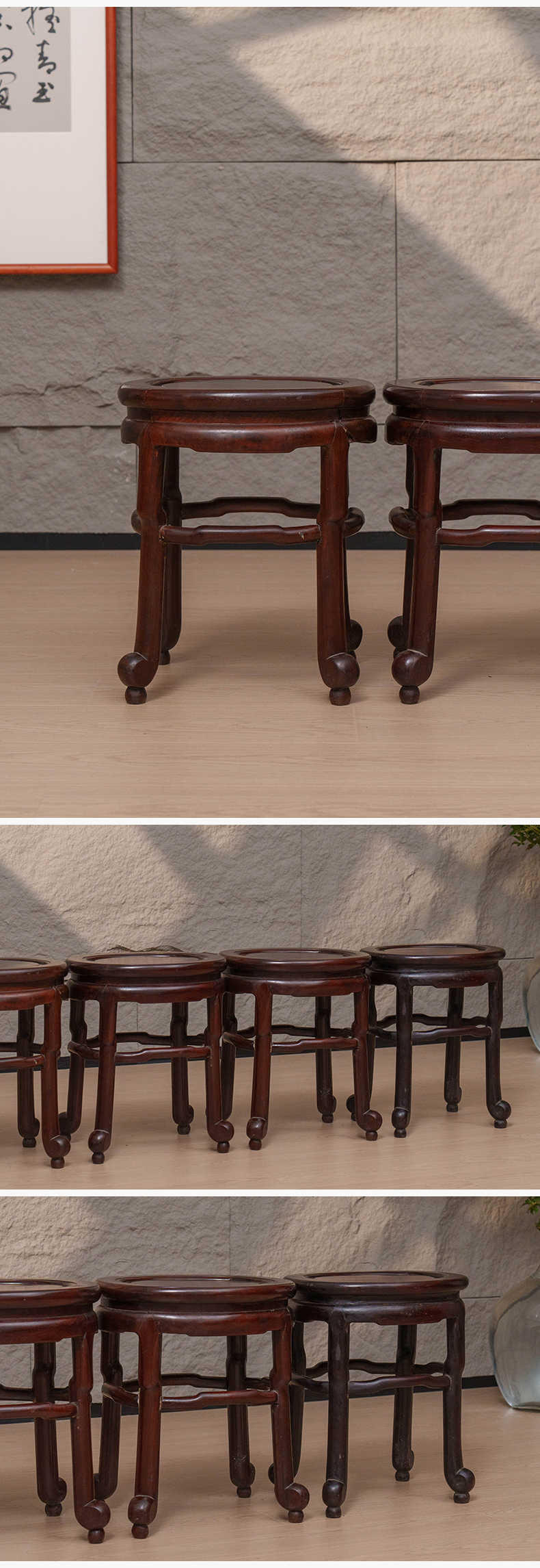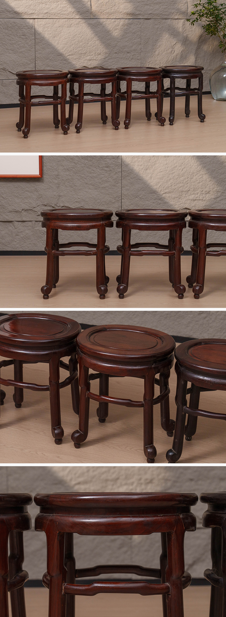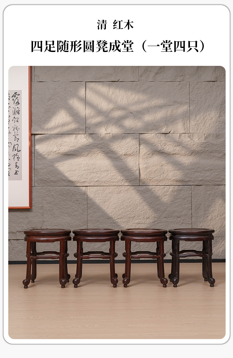 清 红木四足随形圆凳成堂(一堂四只)