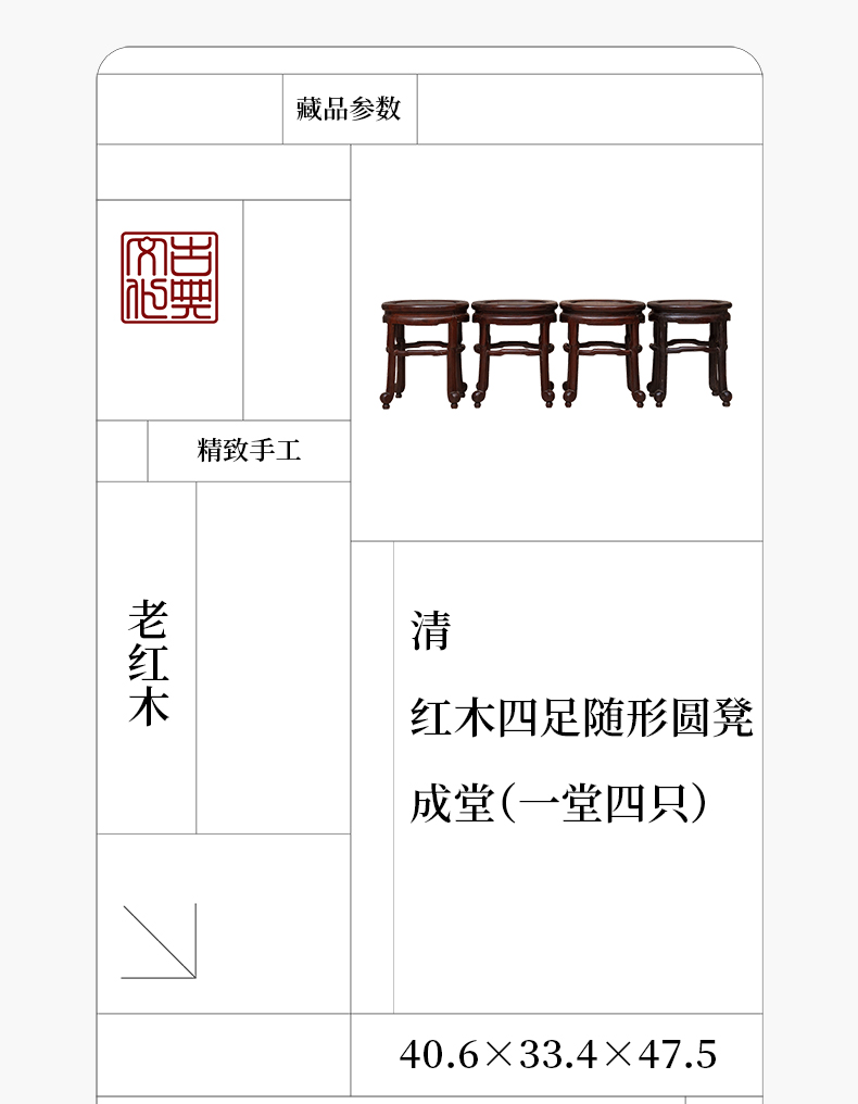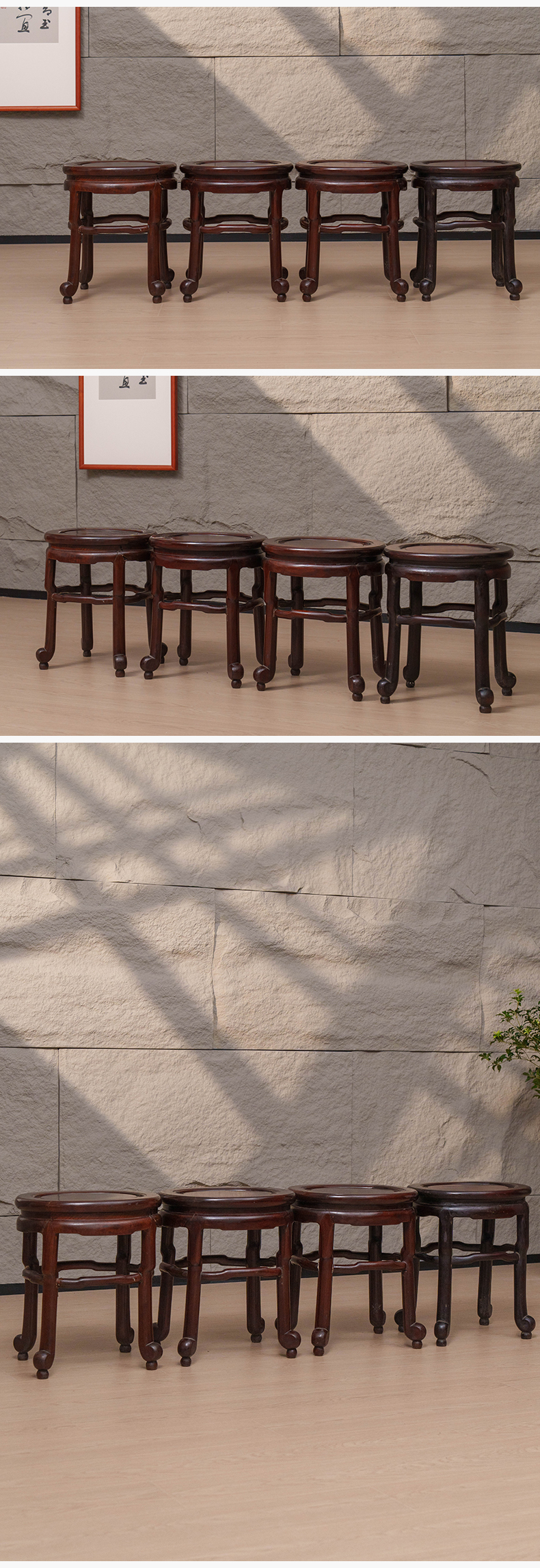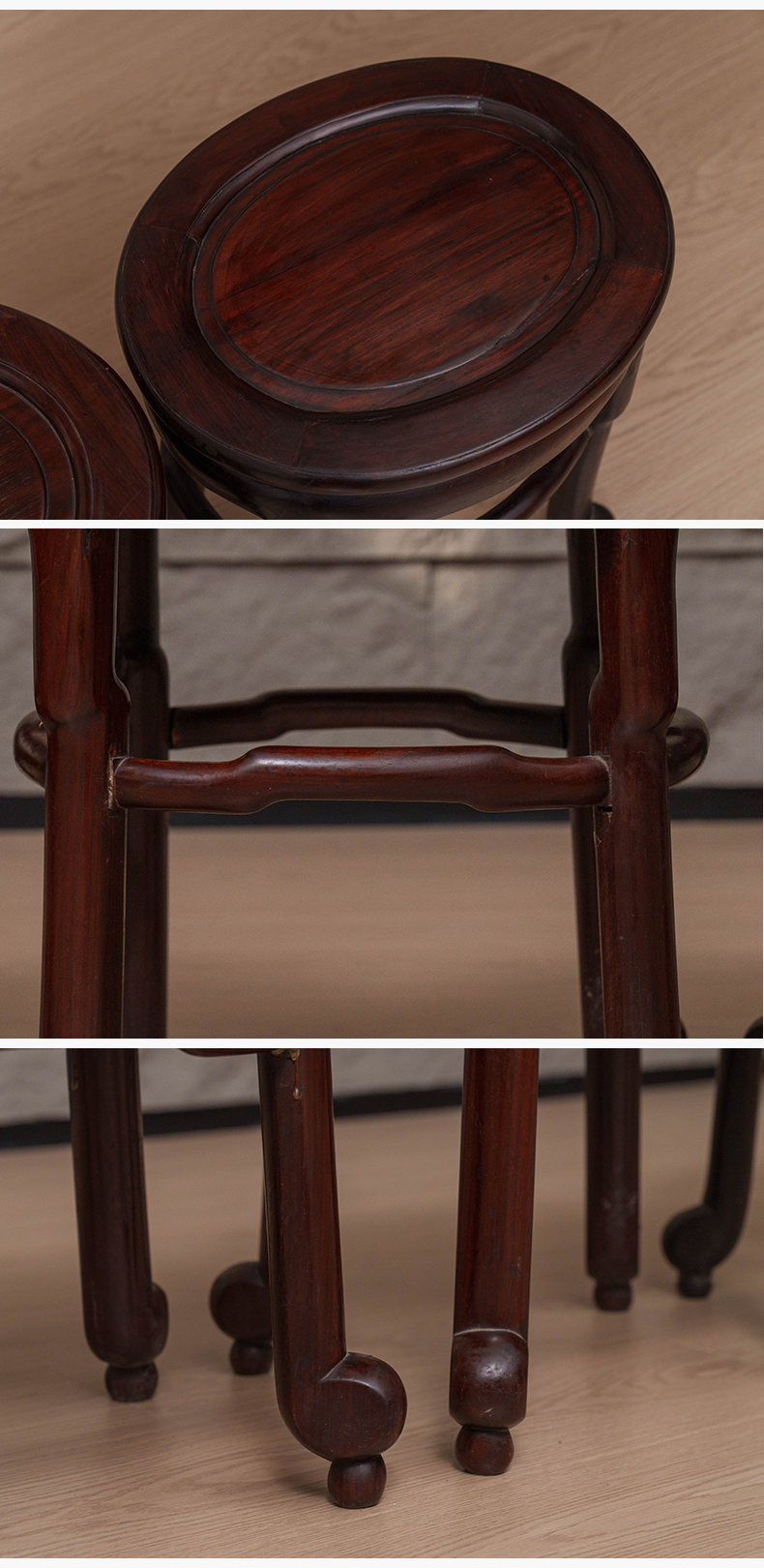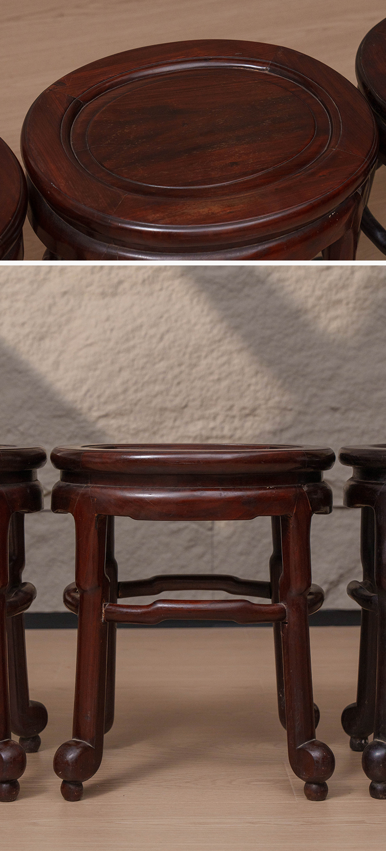 清 红木四足随形圆凳成堂(一堂四只)