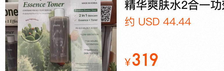 某宝300+ 现在折扣只要199元 Huxley 仙人掌精华水,超大一瓶300ml 美国代购,无中文标签,介意慎拍