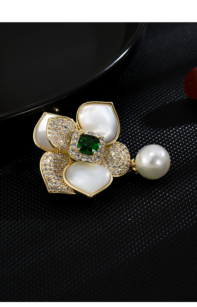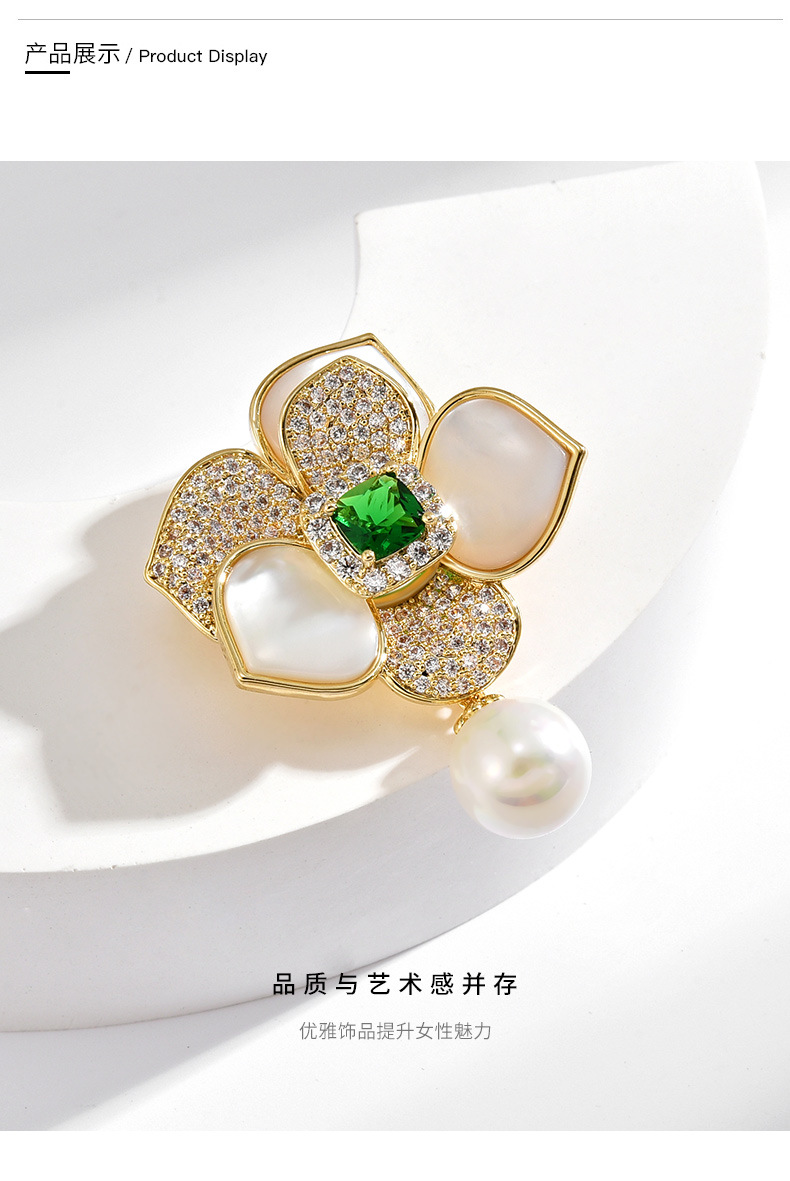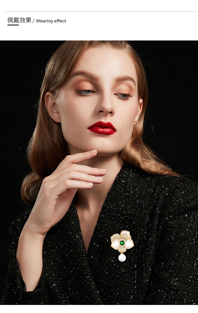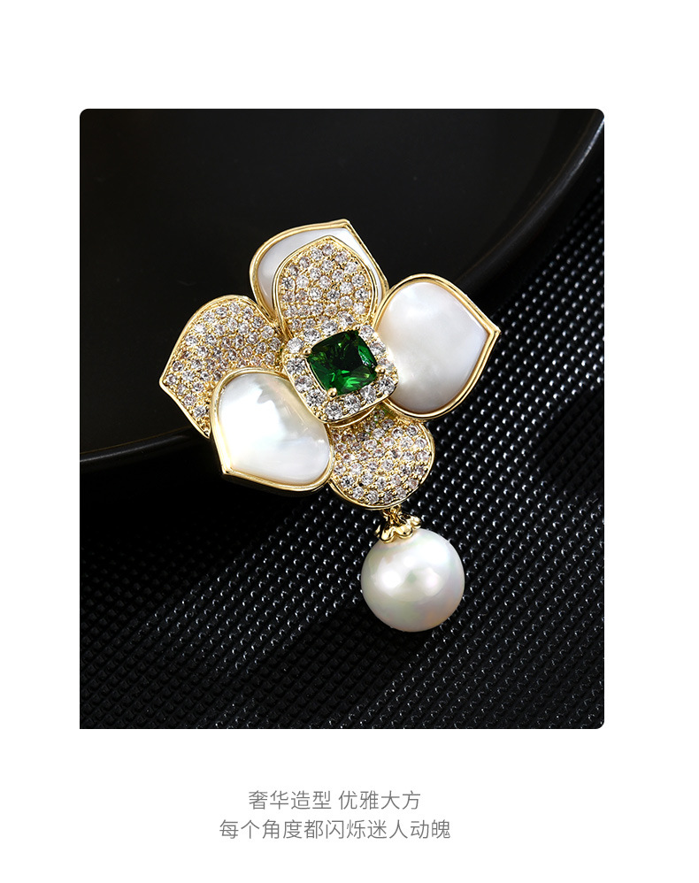 BYY-B5-11 韩版时尚气质贝母山茶花胸针