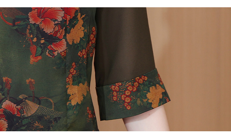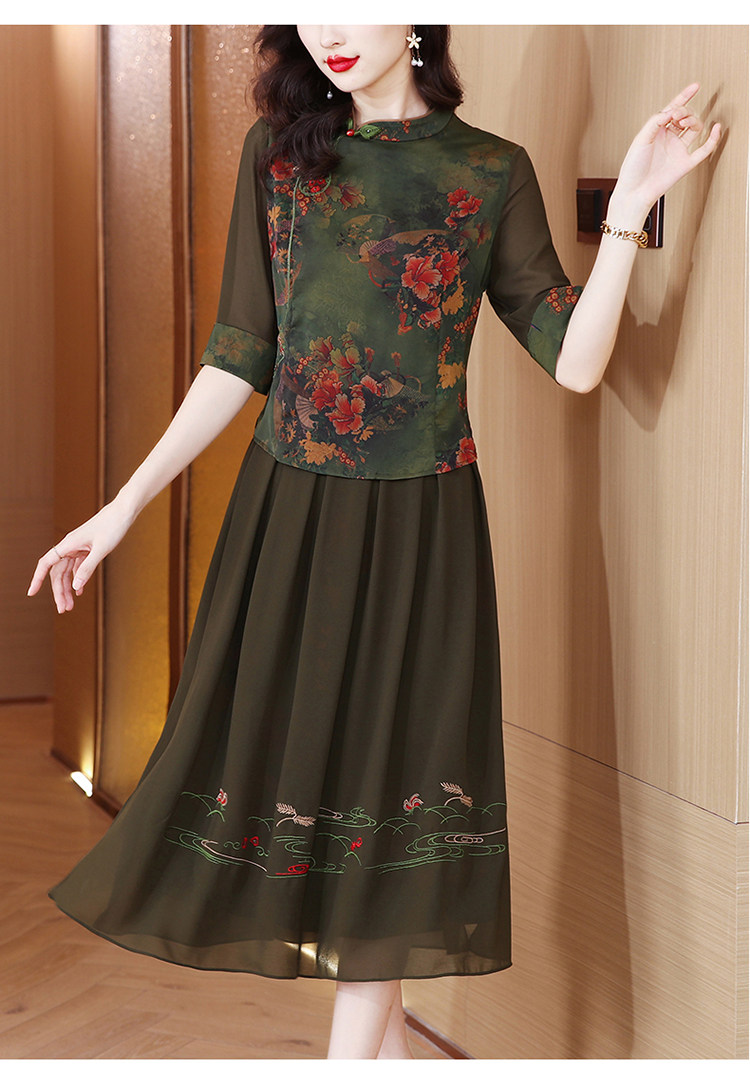 KLY1154 春夏新款气质两件套中腰修身印花七分袖连衣裙