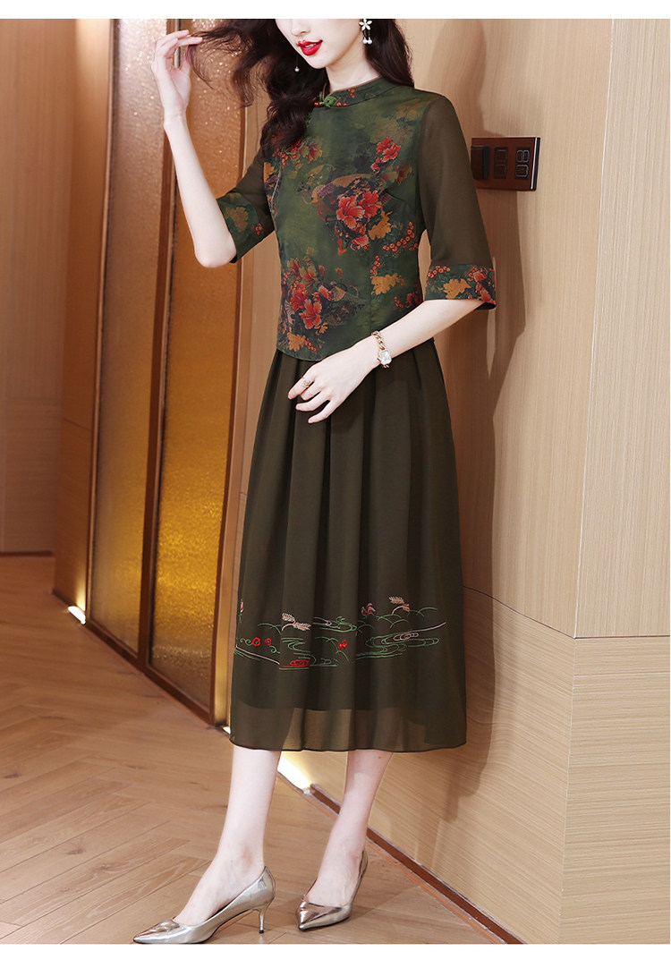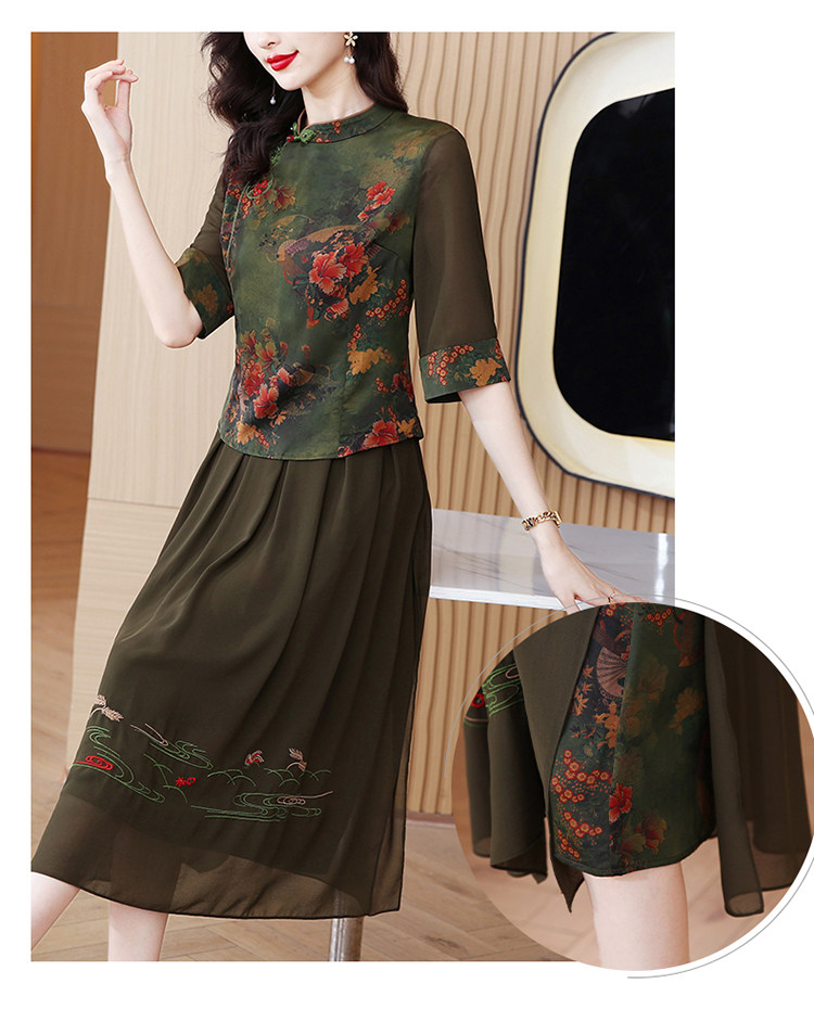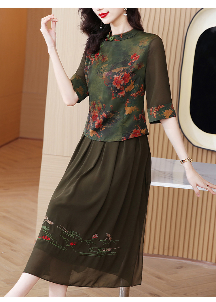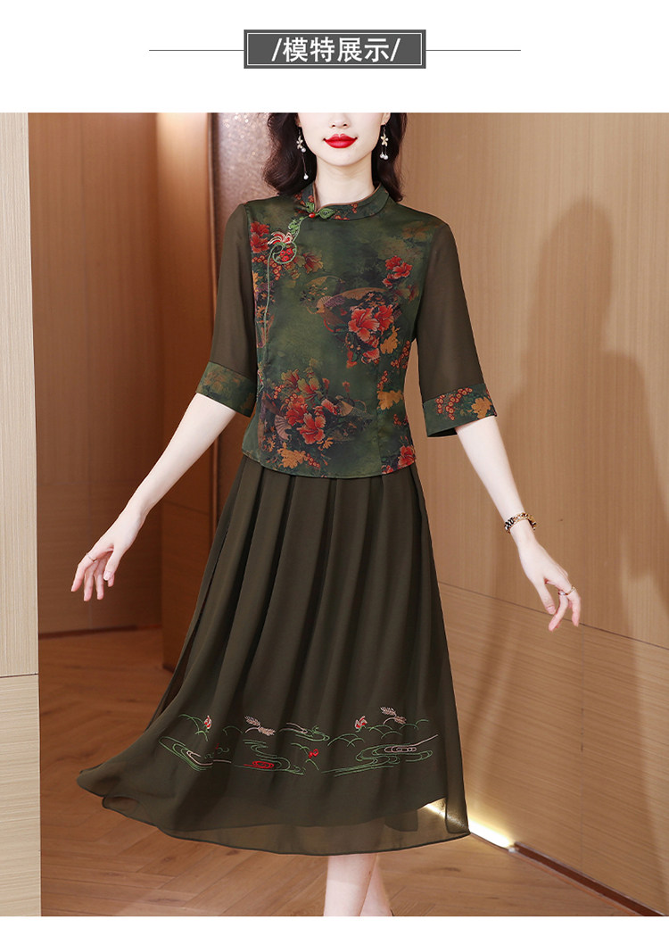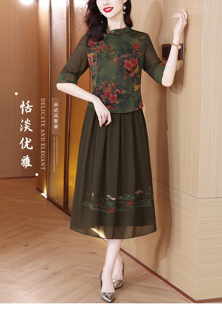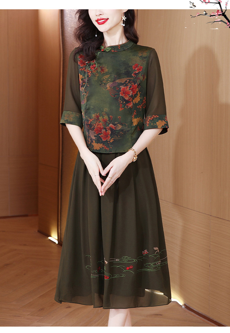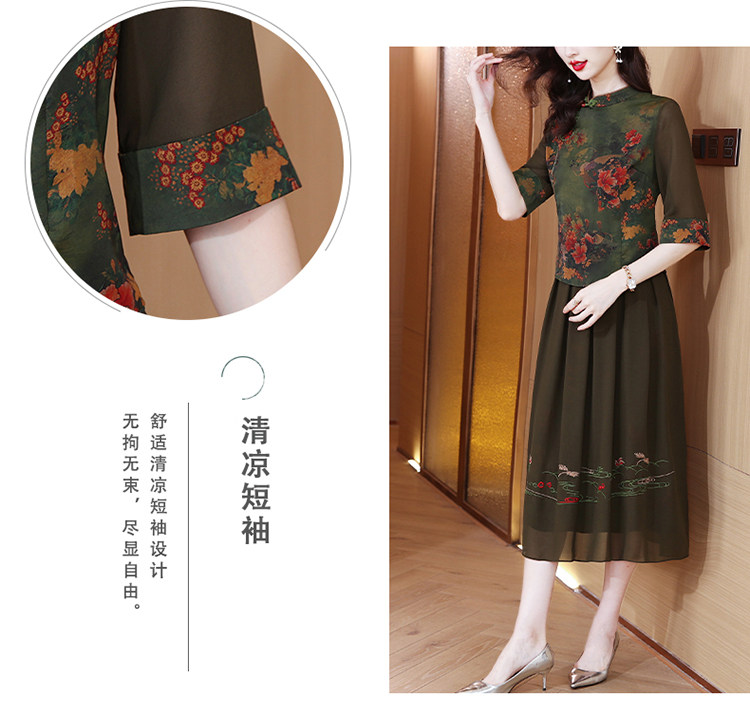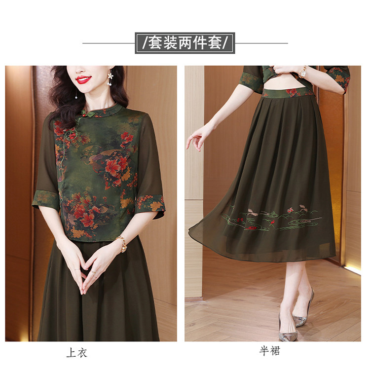 贵夫人品牌妈妈装夏季新款高端真丝香云纱中式旗袍上衣半身裙套装