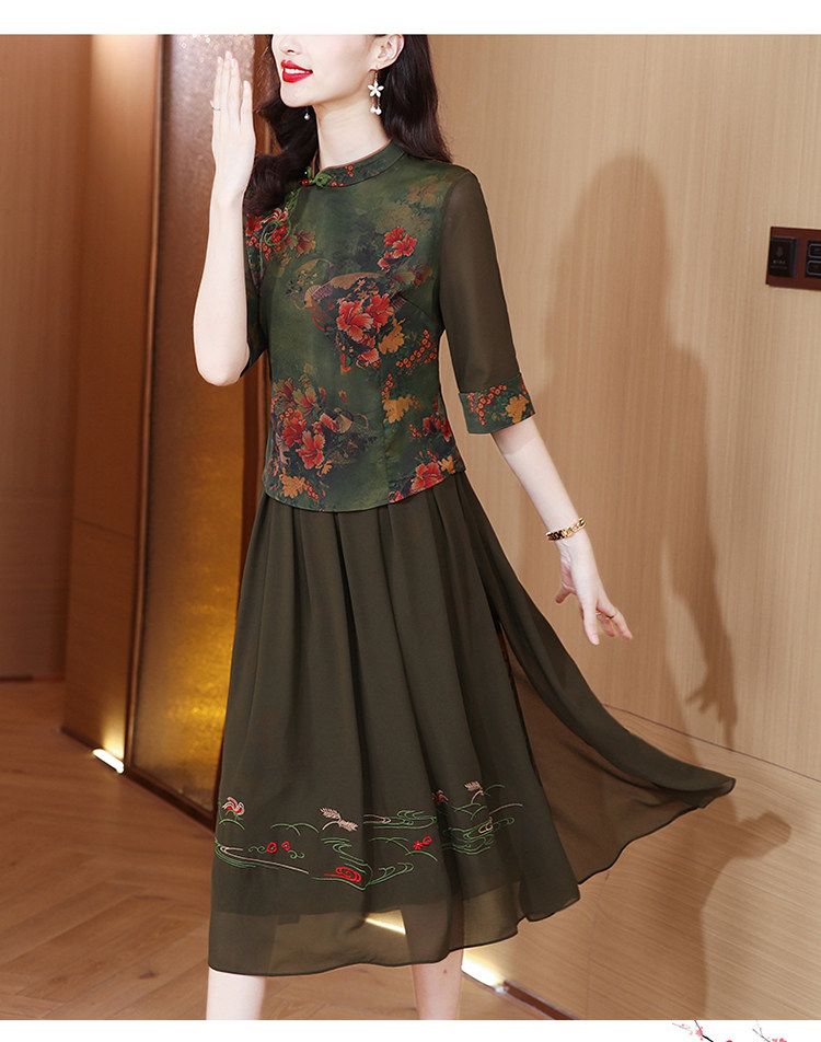 C9004春夏秋冬新款旗袍裙长款旗袍两件套表演礼服