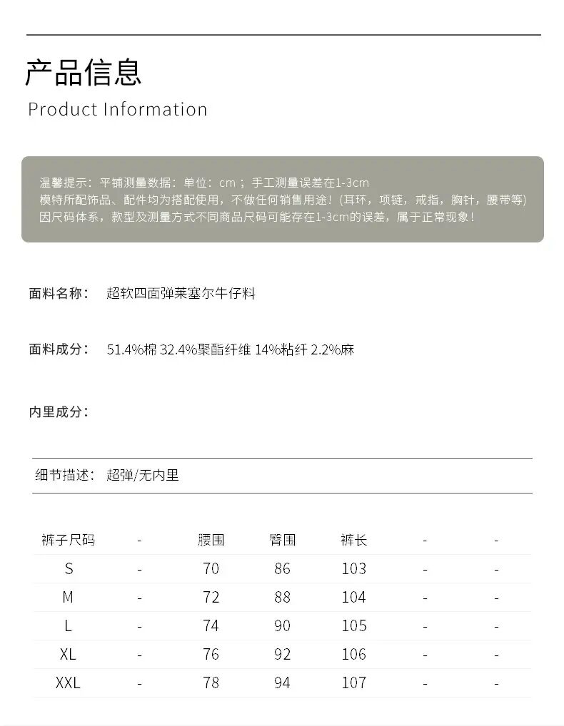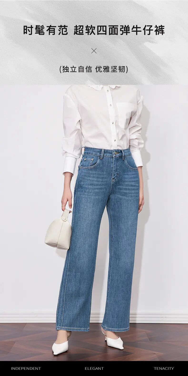 【高货wl】全新升级【铂金会员220/天猫289/差价69】(14732) 洛诗琳新款超软四面弹经典时尚水洗休闲鱼骨线阔腿牛仔裤