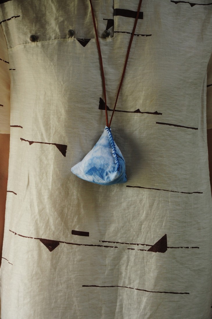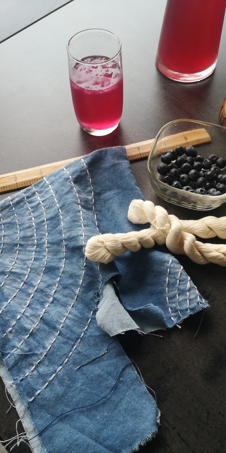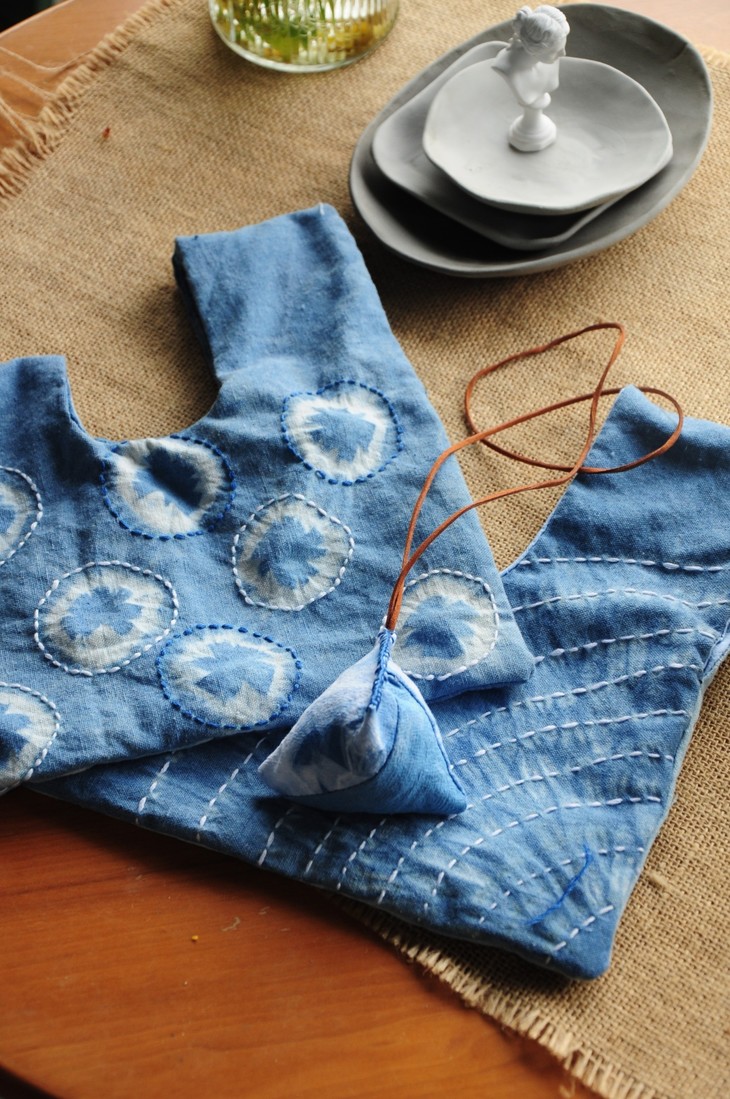 草木染是用天然的植物染料给纺织品上色的方法。从白布开始扎布,然后染色、上色、晾晒、烫平、缝制,最后完成一个属于自己的第一无二的成品,这个过程充满了欣喜。草木染是一种不确定性艺术品类,每一个步骤都有惊喜,你永远不知道你今天染出来的颜色是浓还是淡,今次的图纹是怎样的变化,只要一个因素变了,出来的结果就会有巧妙的变化,那就是艺术生活的有趣之处,每一次都是全新的创作,每一次都有意外的惊喜(即使染成素色,也很美)。