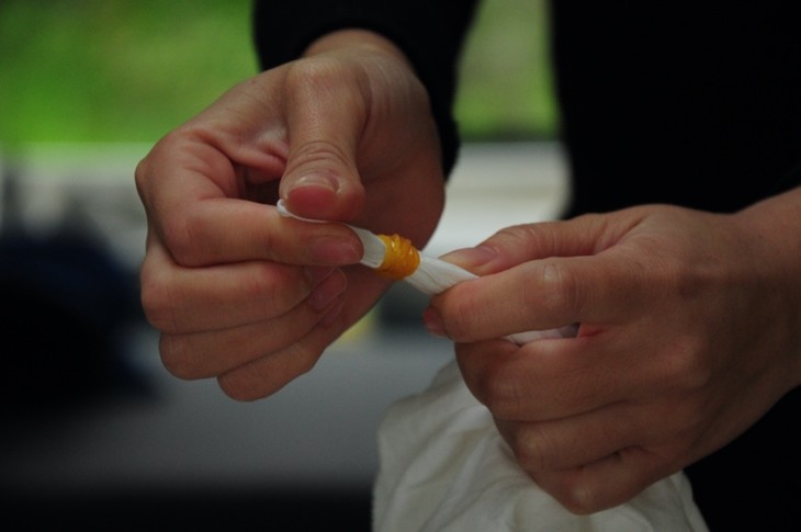 这次草木染活动,我们用生活中常见的苏木、黄洋葱皮、虎杖、桂皮、栀子等天然的材料,媒染液需时间较长,活动会提前制作好,然后现场加热再放至常温再进行染色、晾晒、缝制等步骤,最后做成餐桌上常需的餐垫/杯垫。