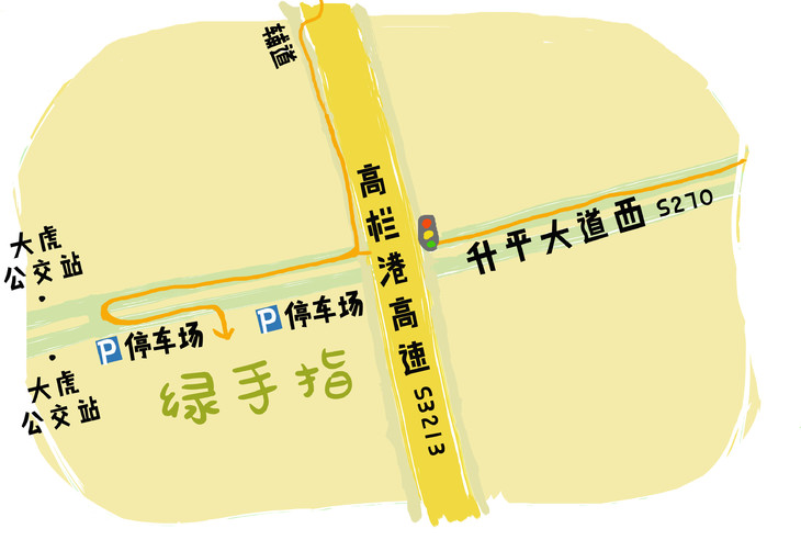 导航搜索“绿手指有机农园”即可,农场位于升平大道西的路边。