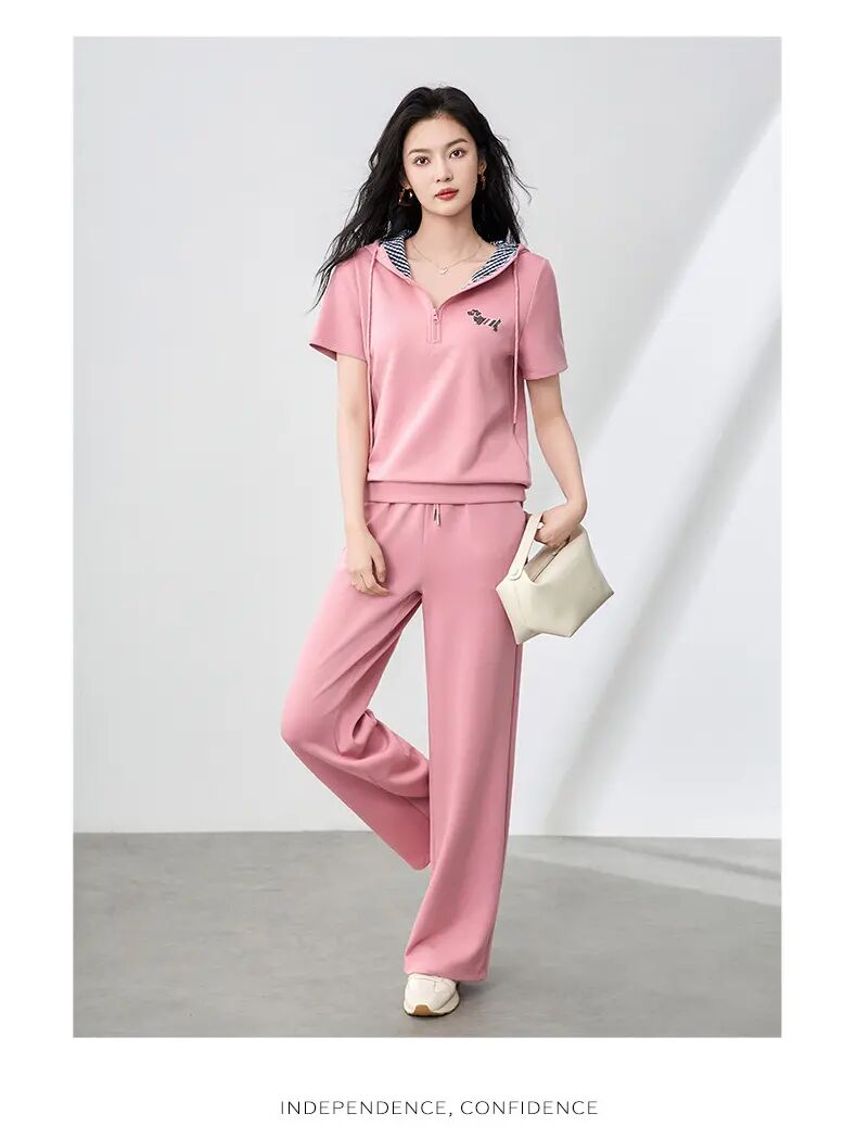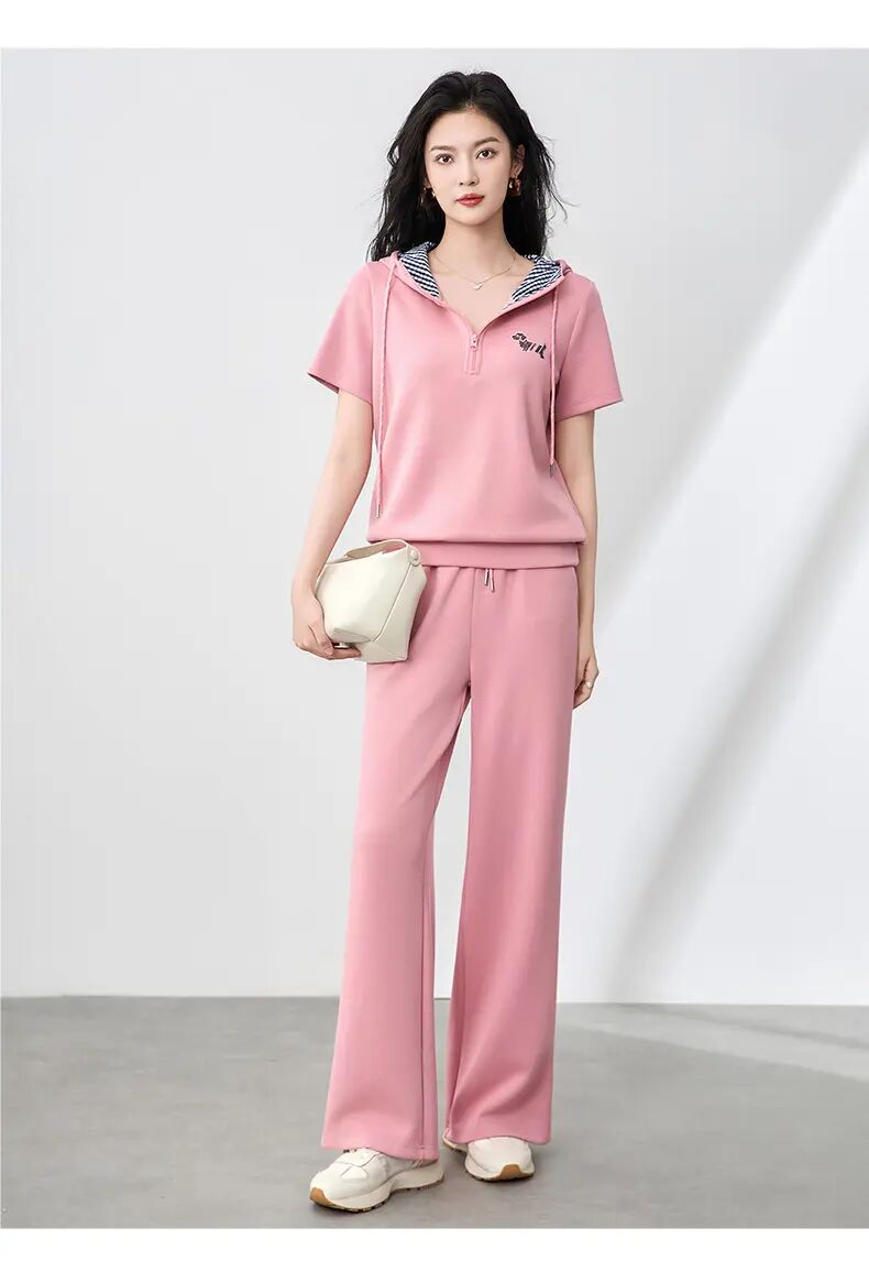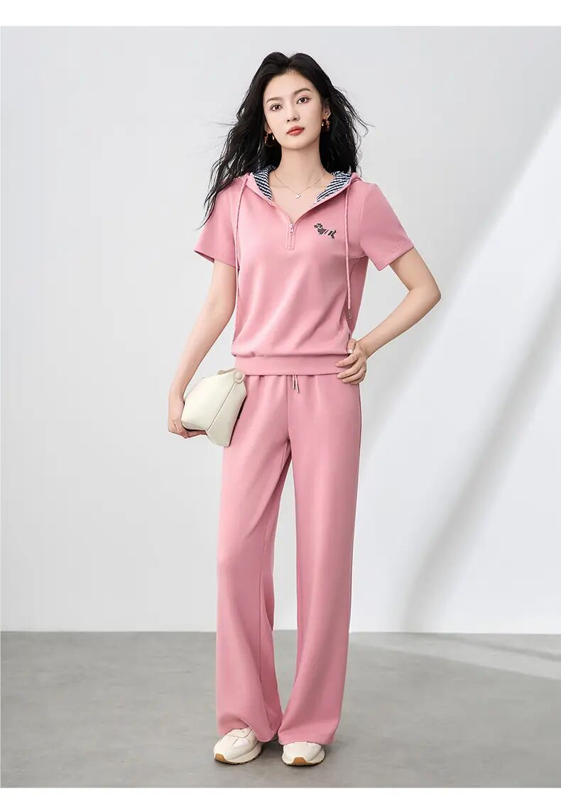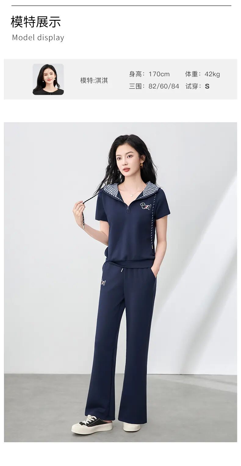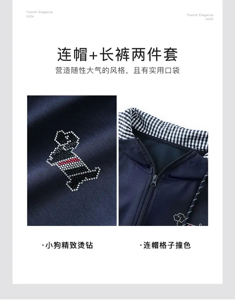 【高货wl】全新升级【铂金会员293/天猫399/差价106】(99231) 洛诗琳洋气镶钻小狗连帽上衣休闲运动松紧腰阔腿裤套装
