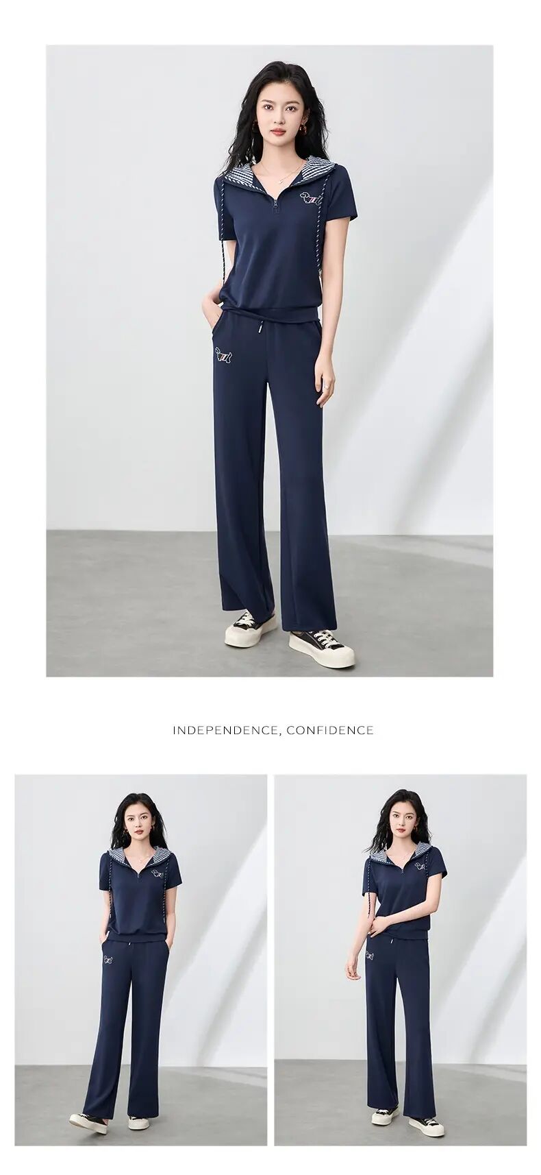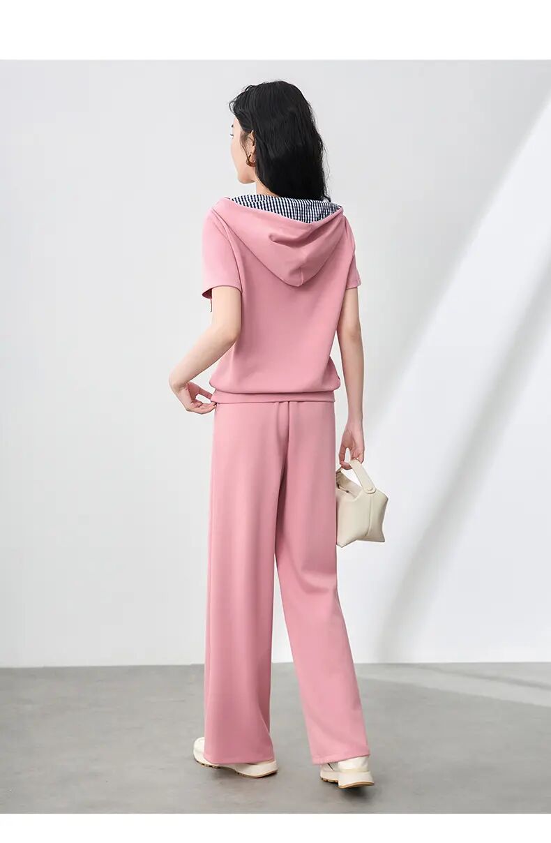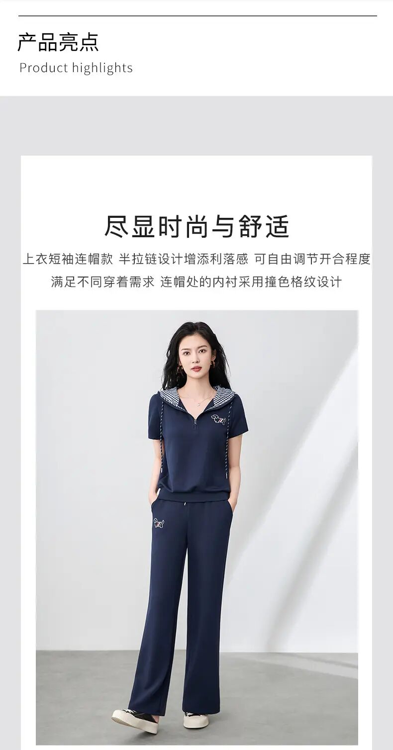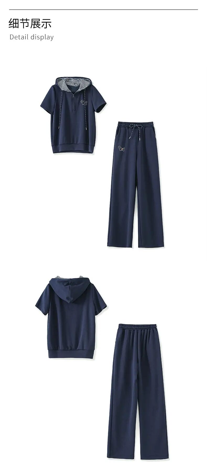 【高货wl】全新升级【铂金会员293/天猫399/差价106】(99231) 洛诗琳洋气镶钻小狗连帽上衣休闲运动松紧腰阔腿裤套装