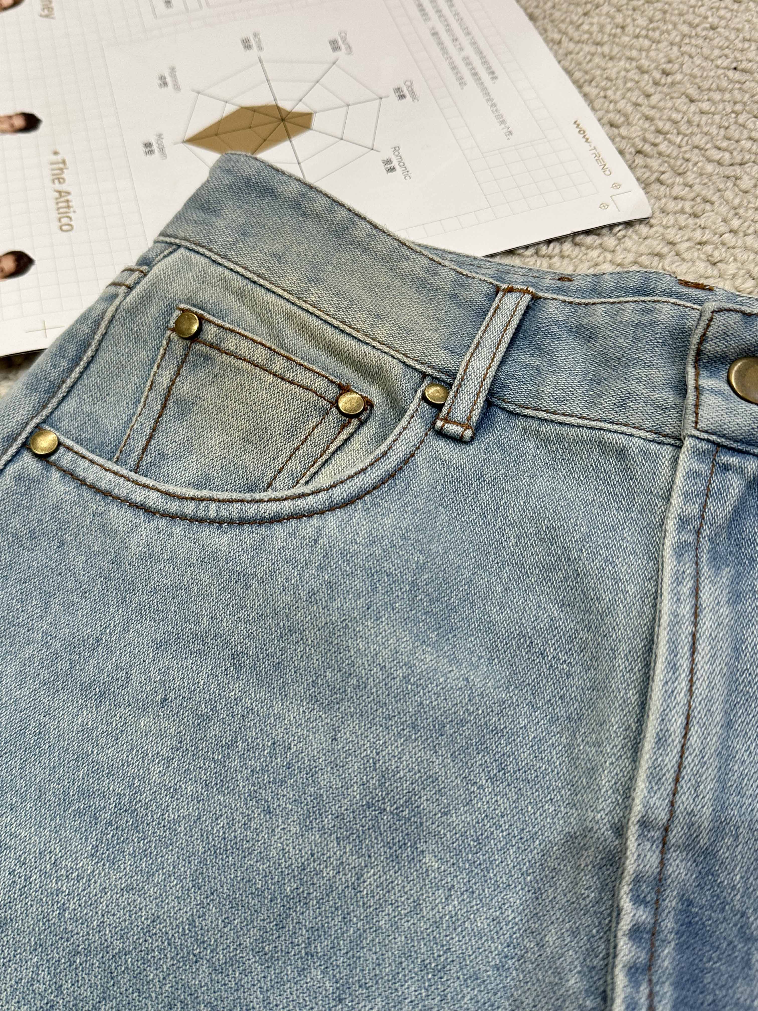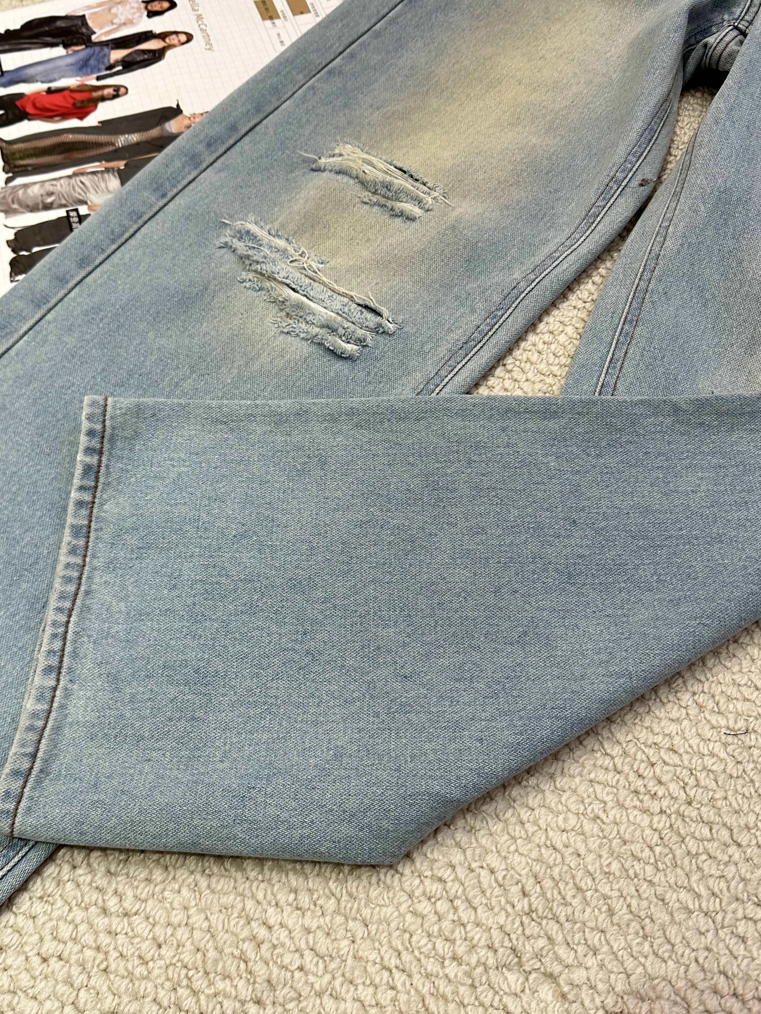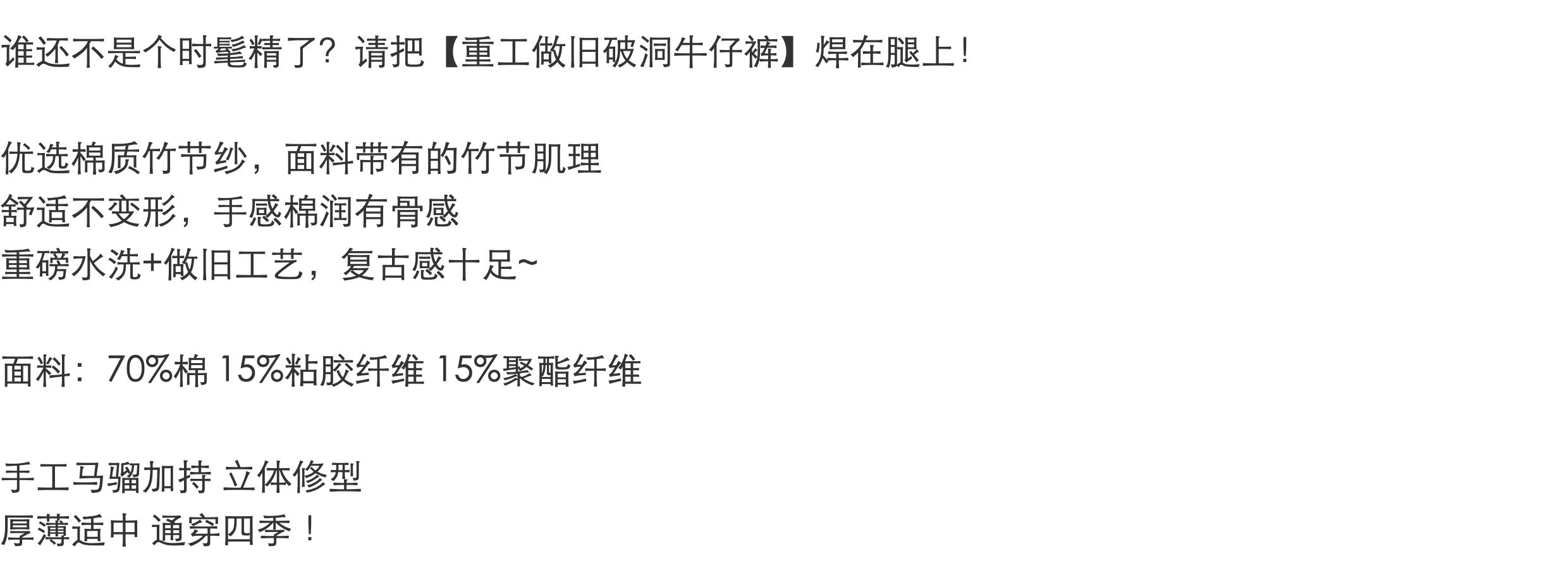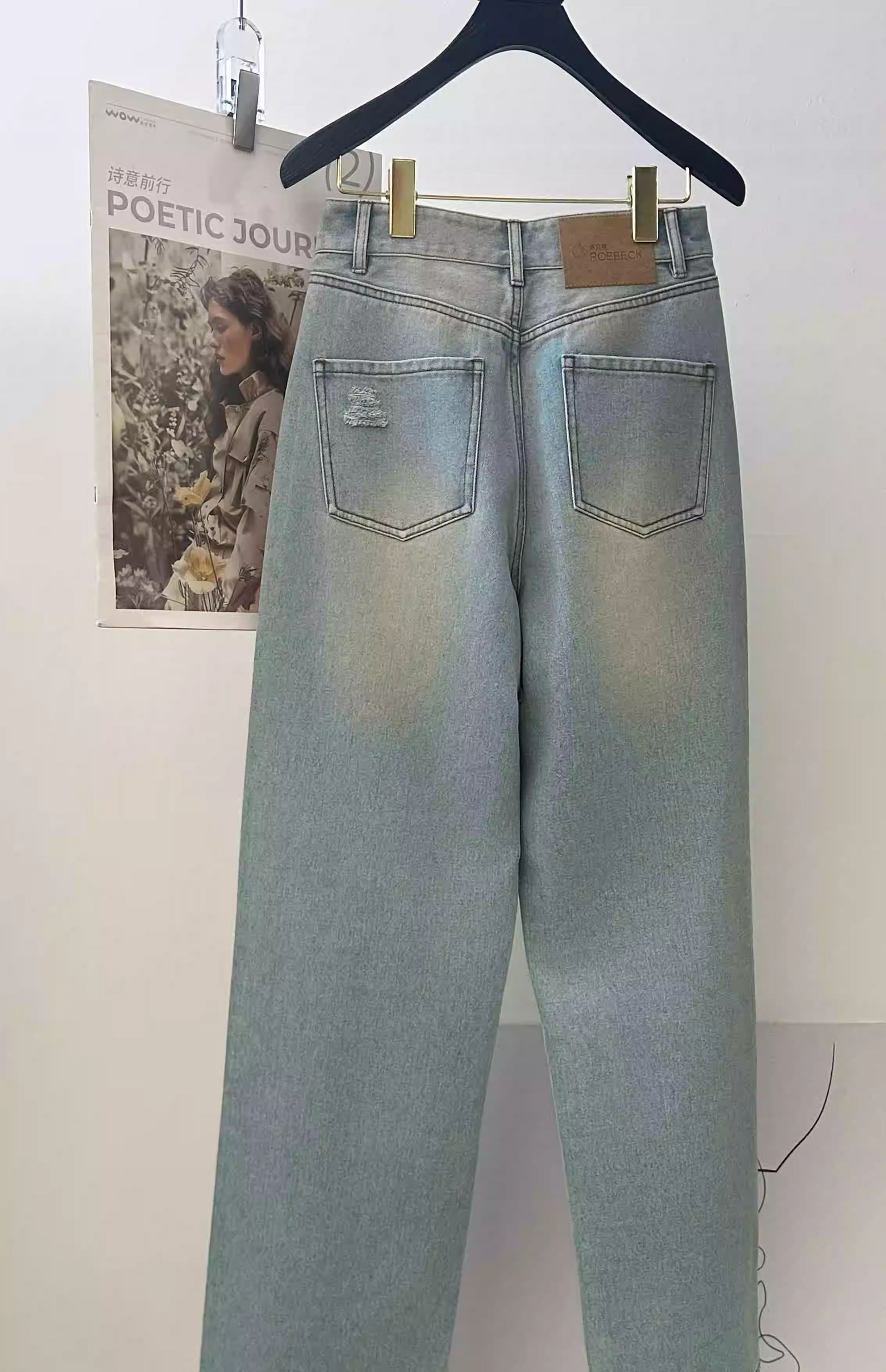 顺丰包邮15432洛诗琳2025新款重工做旧高腰直筒破洞牛仔裤女838