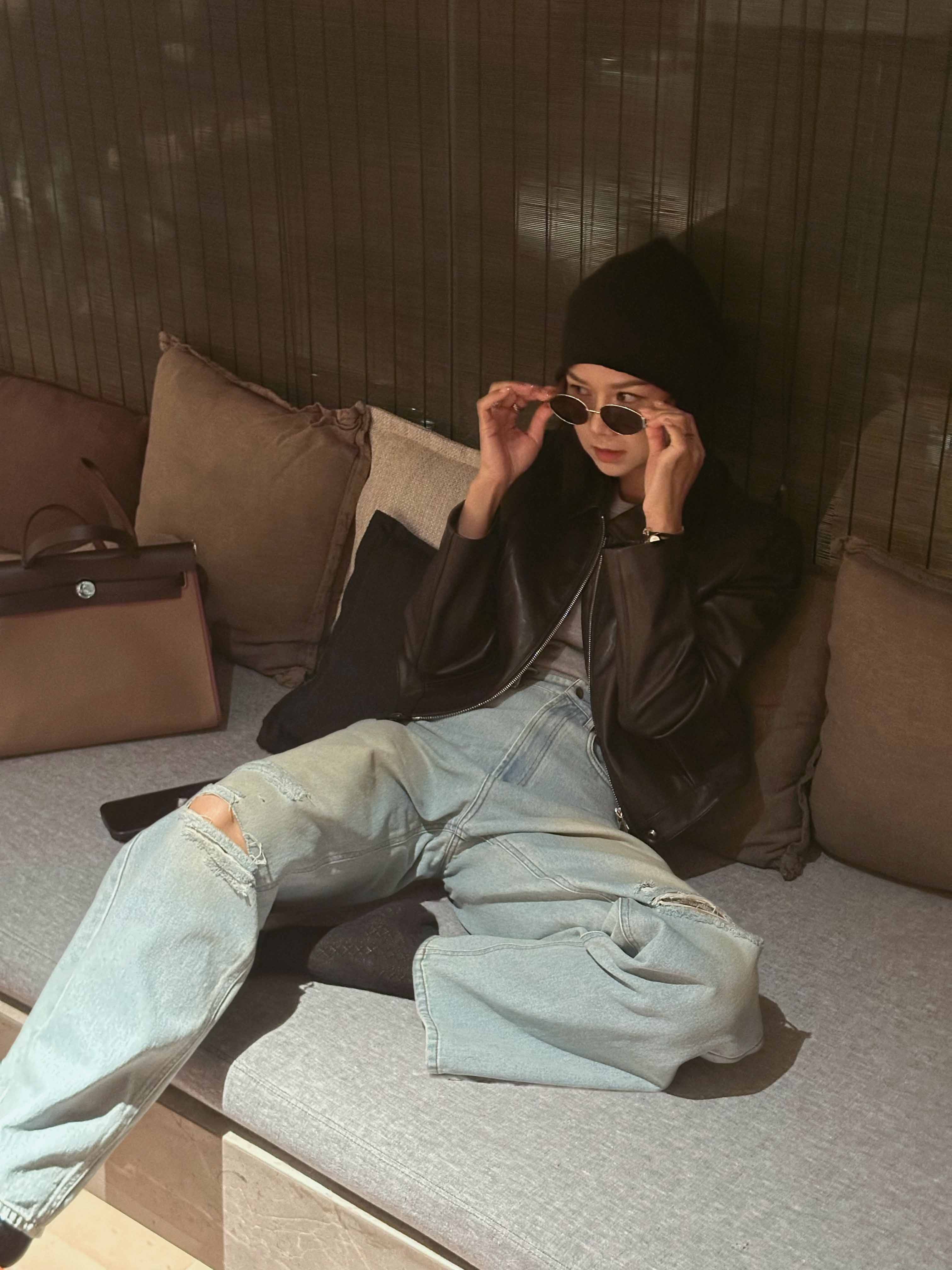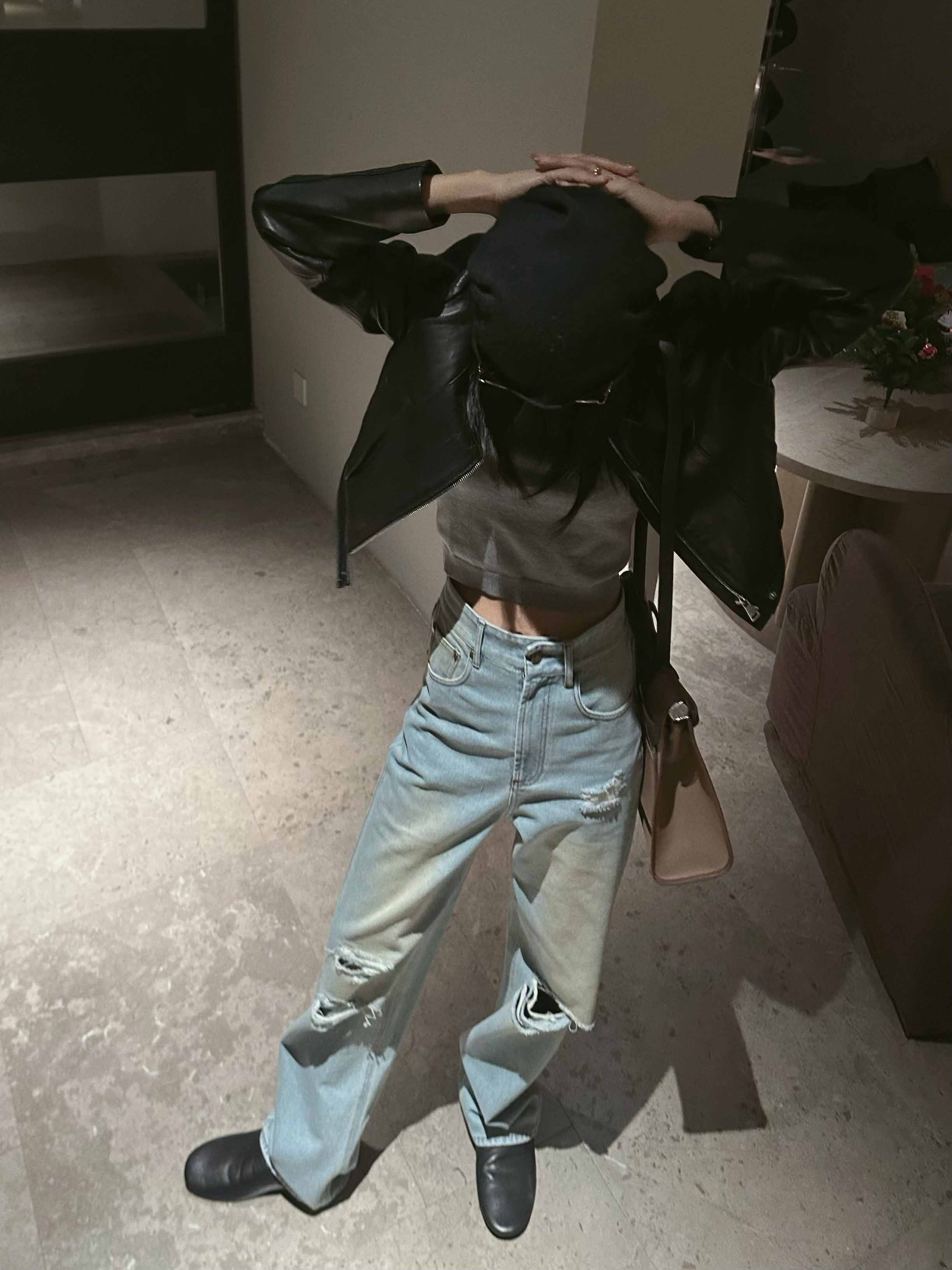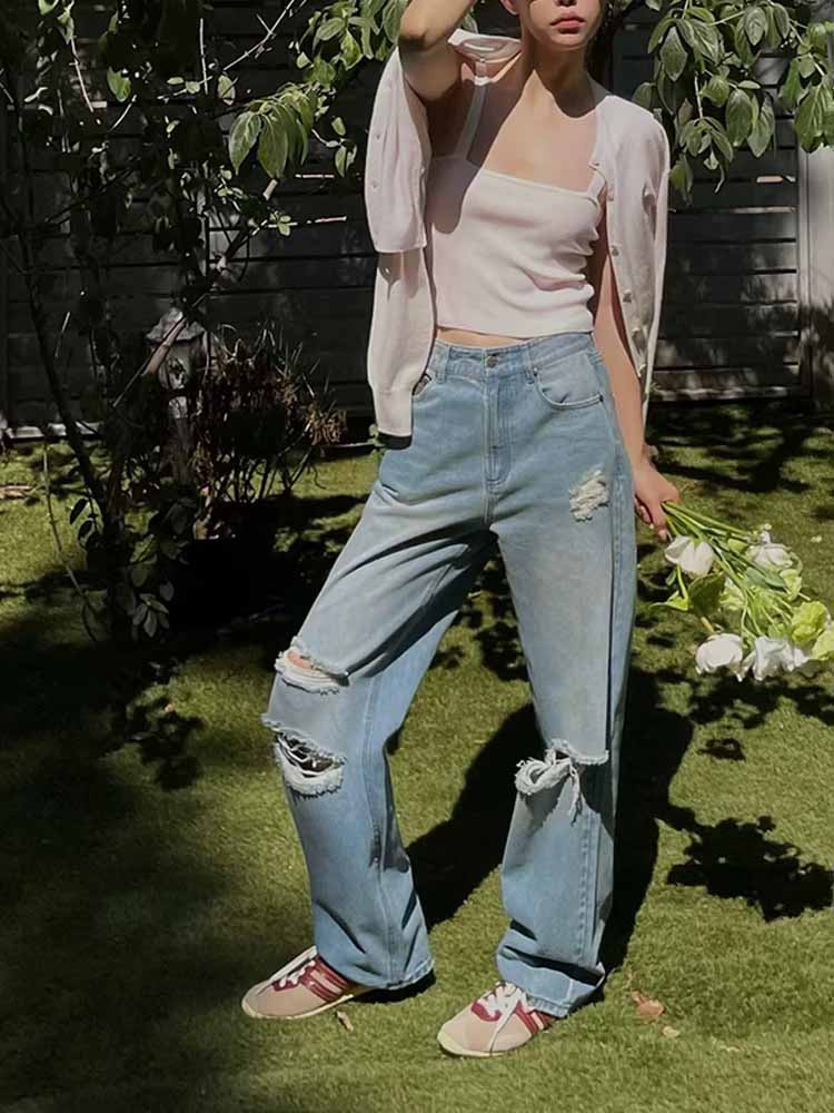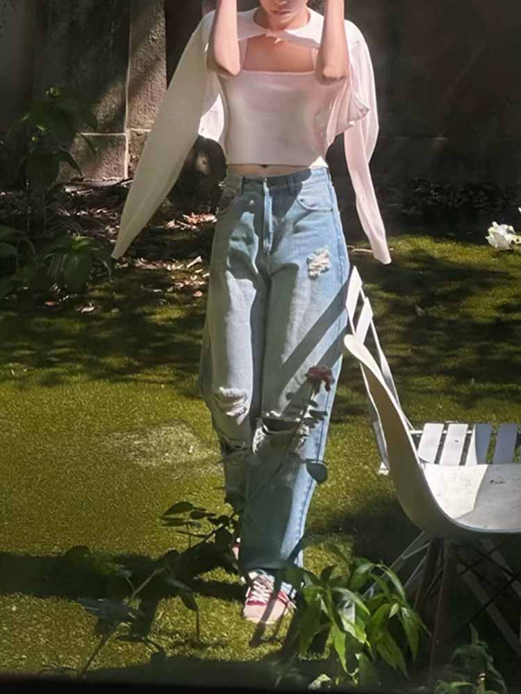 顺丰包邮15432洛诗琳2025新款重工做旧高腰直筒破洞牛仔裤女838