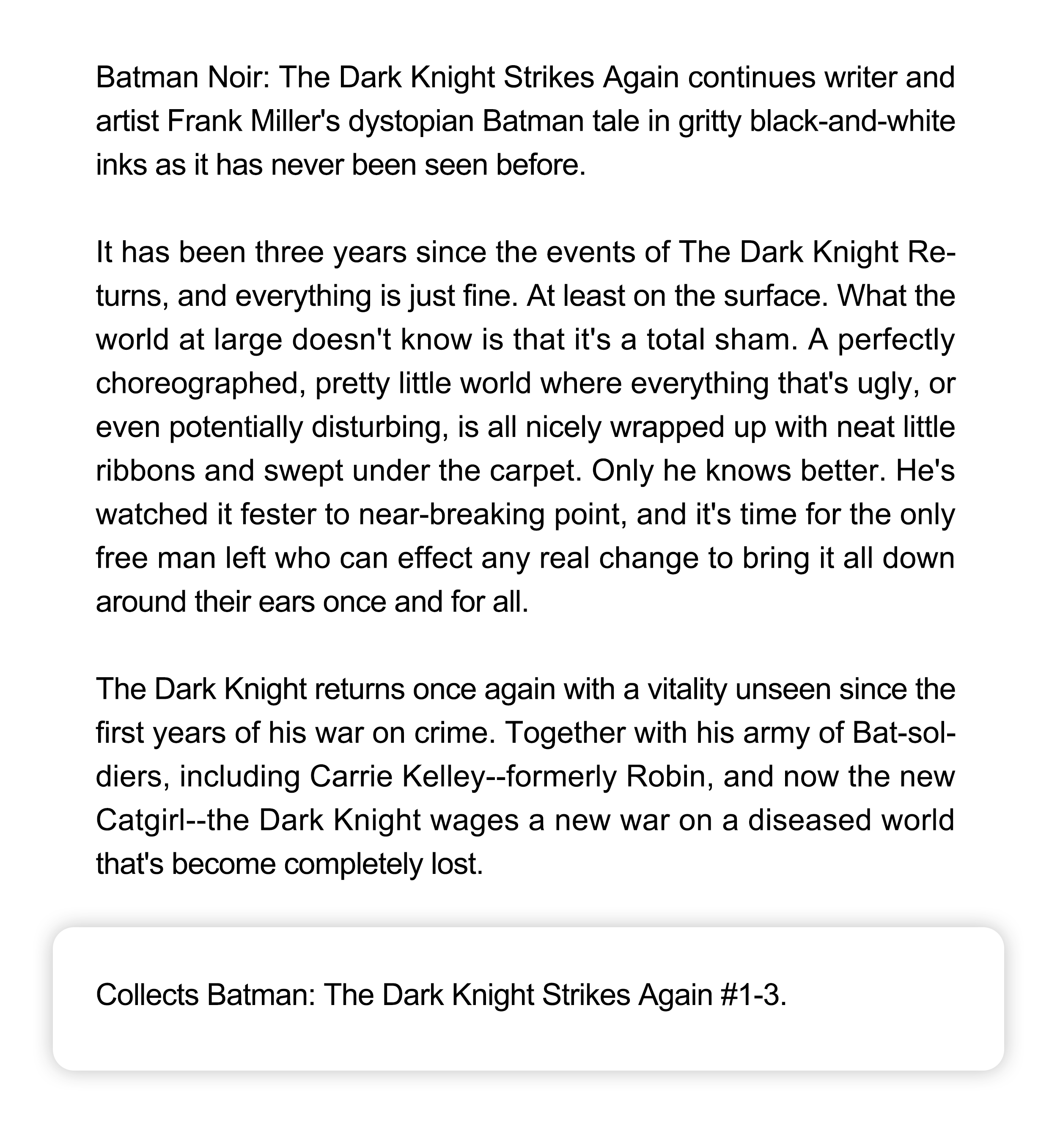 合集 蝙蝠侠 黑白版 黑暗骑士再临 精装 Batman Noir The Dark Knight Strikes Again