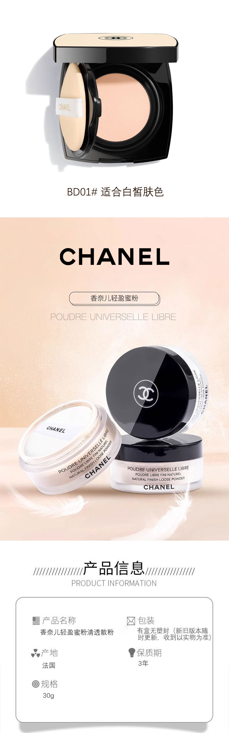 【品牌】 Chanel香奈儿【商品名称】 【送礼袋】Chanel香奈儿彩妆三件套组 新版果冻气垫15g+轻盈蜜粉散粉30g +双头唇釉小样2ml+1.5ml 香港直邮 【规格】:BD01#+散粉#12号 +双头唇釉小样#69 【产地】:法国(实际收到为准) 【批次/限用日期】:有效期2027-1 【注!!!】批次更新较快,具体以实收批次日期为准 【版本】:免税版 【包装方式】:单独 【快递】:韵达快递 【发货地】:香港 【运费模板】: 新疆,宁夏,内蒙古,甘肃+5,其他地区包邮 【不发货地区】:港澳台 西藏 【发货时效】:72小时 【售后政策】:支持七天无理由退换(不影响二次销售的基础上) |