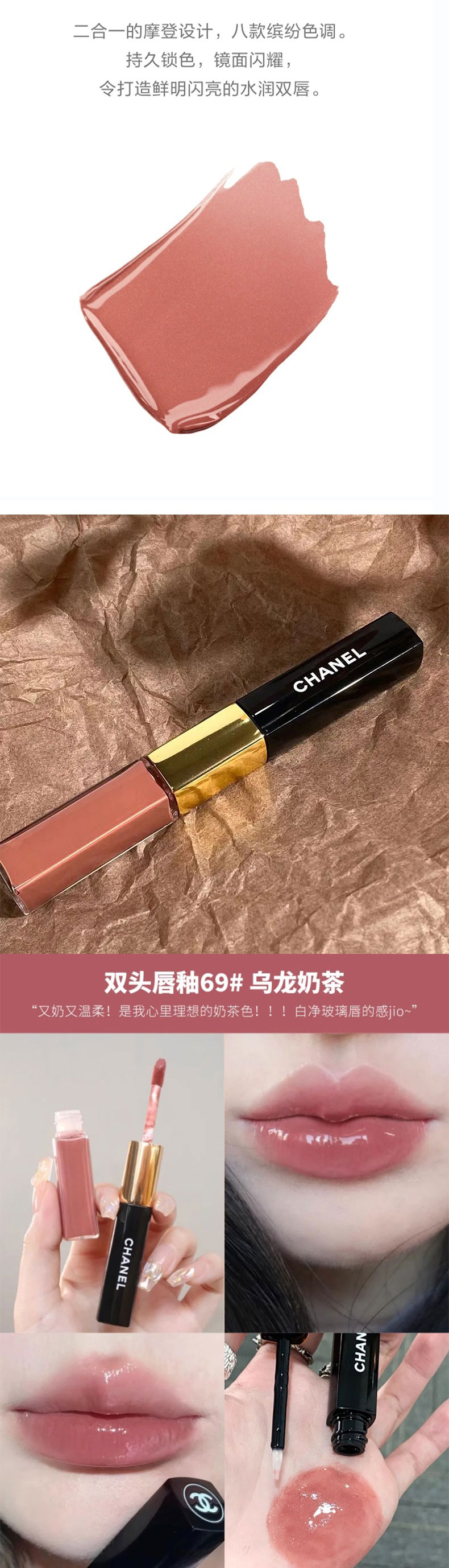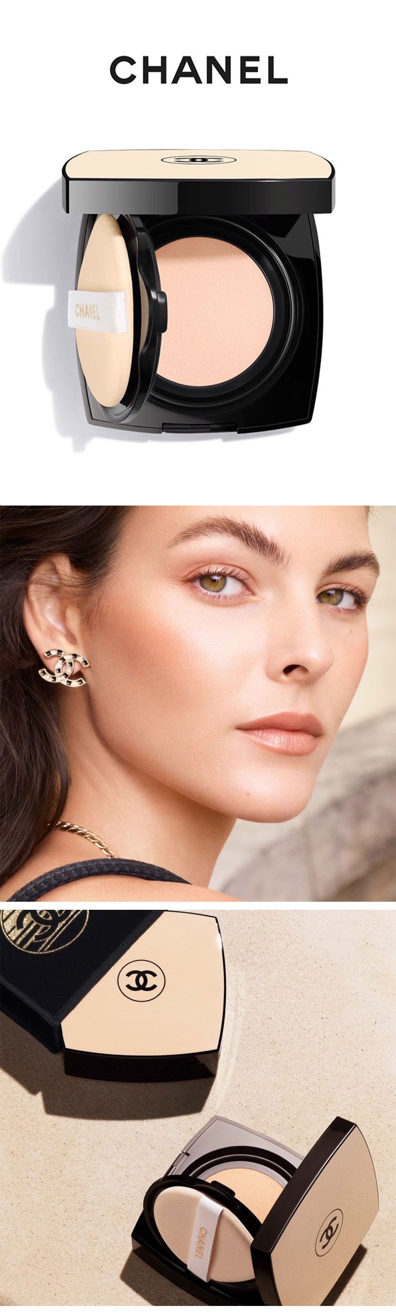 【送礼袋】Chanel香奈儿彩妆三件套组 新版果冻气垫15g+轻盈蜜粉散粉30g +双头唇釉小样2ml+1.5ml 香港直邮