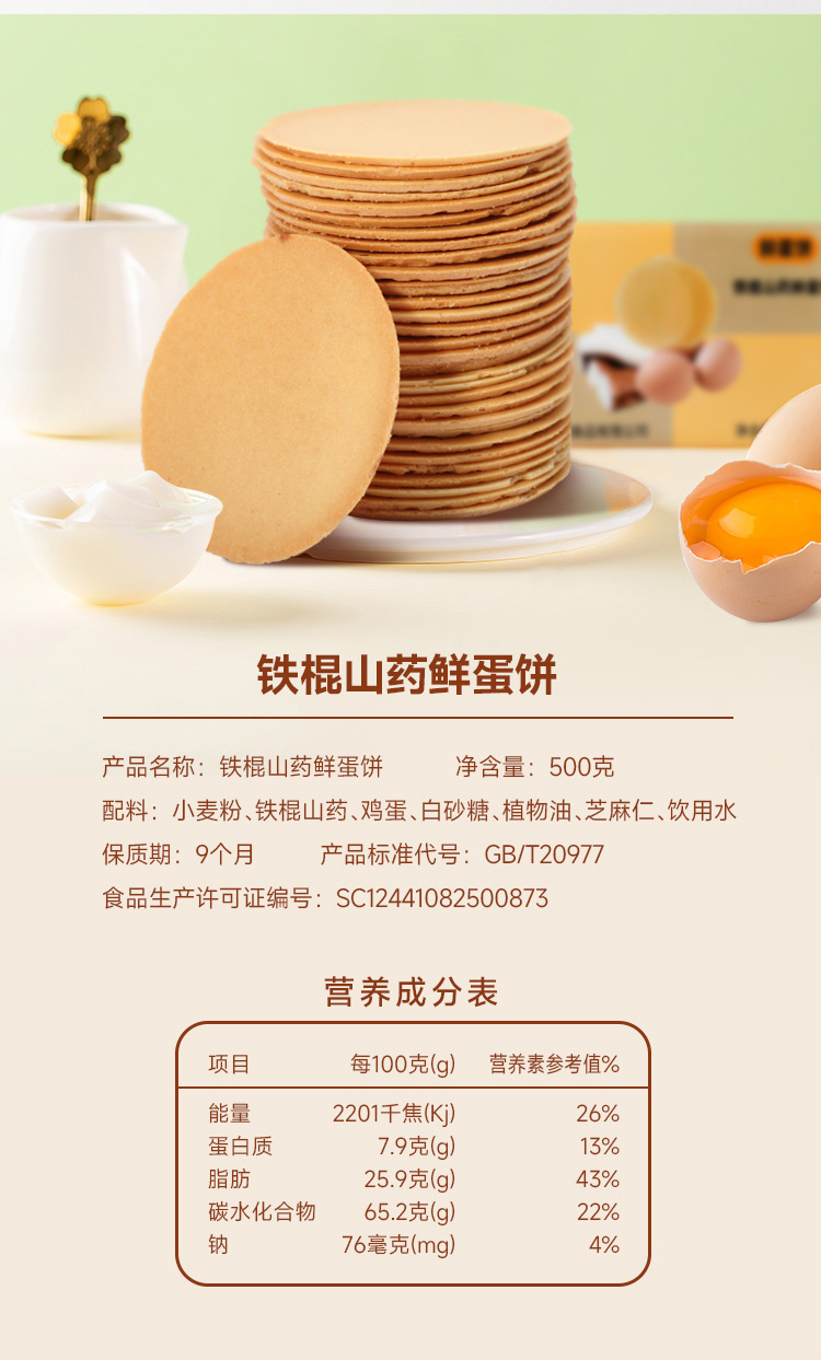 铁棍山药鲜蛋饼60% 非油炸健康零食