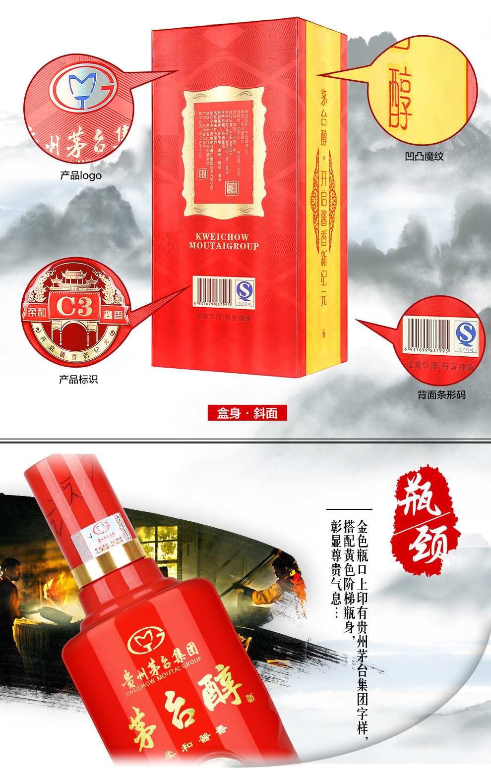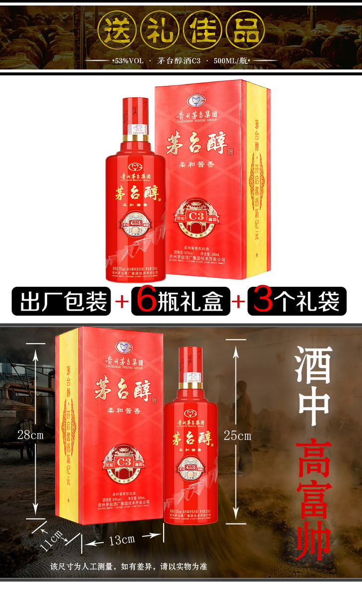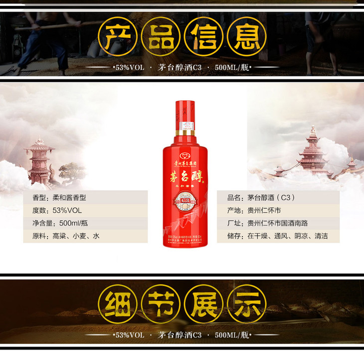 【推荐】【2016年老酒 库存有限】茅台醇 柔和酱香 C3 53度 500ml*2